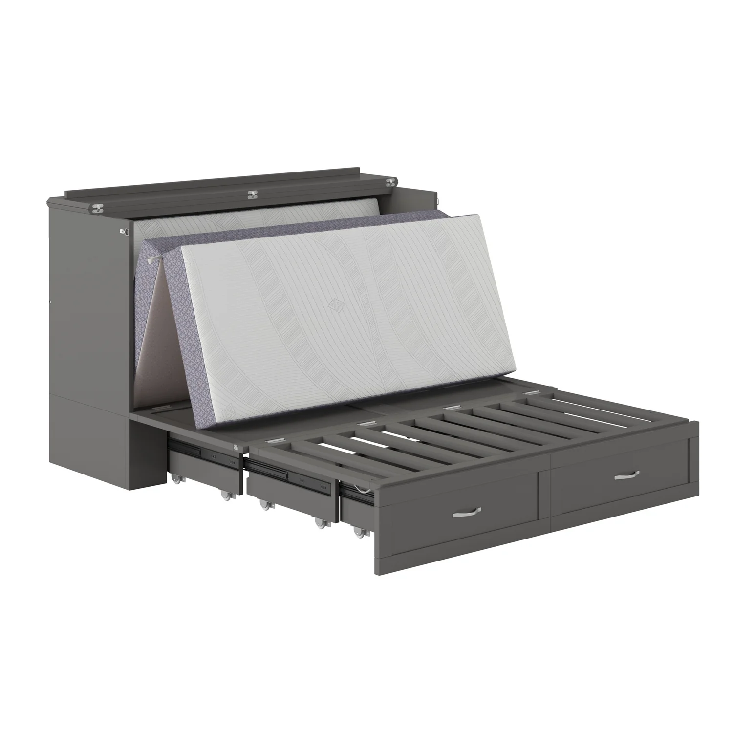 AFI Raleigh Modern Queen Solid Wood Murphy Bed Chest with Mattress in Gray