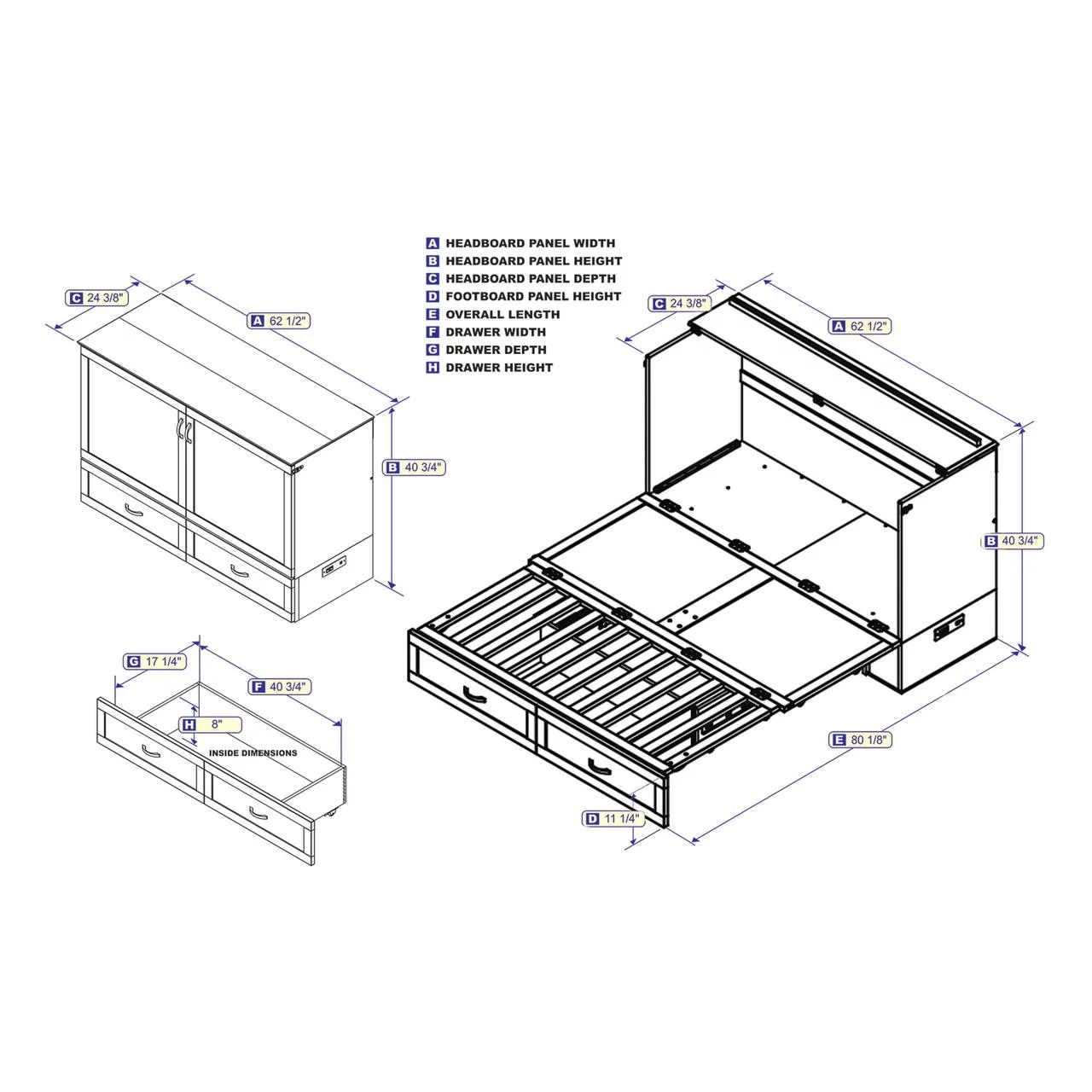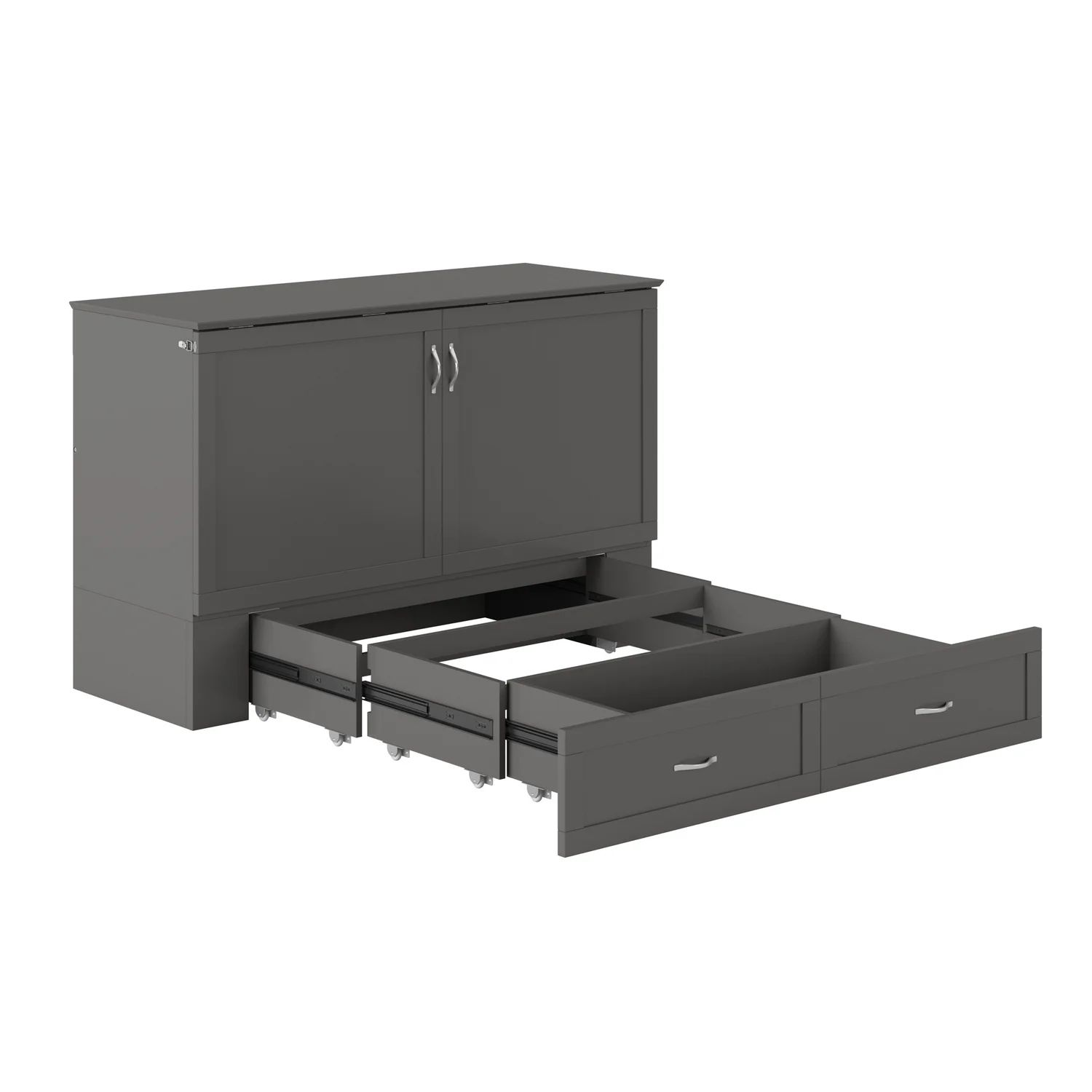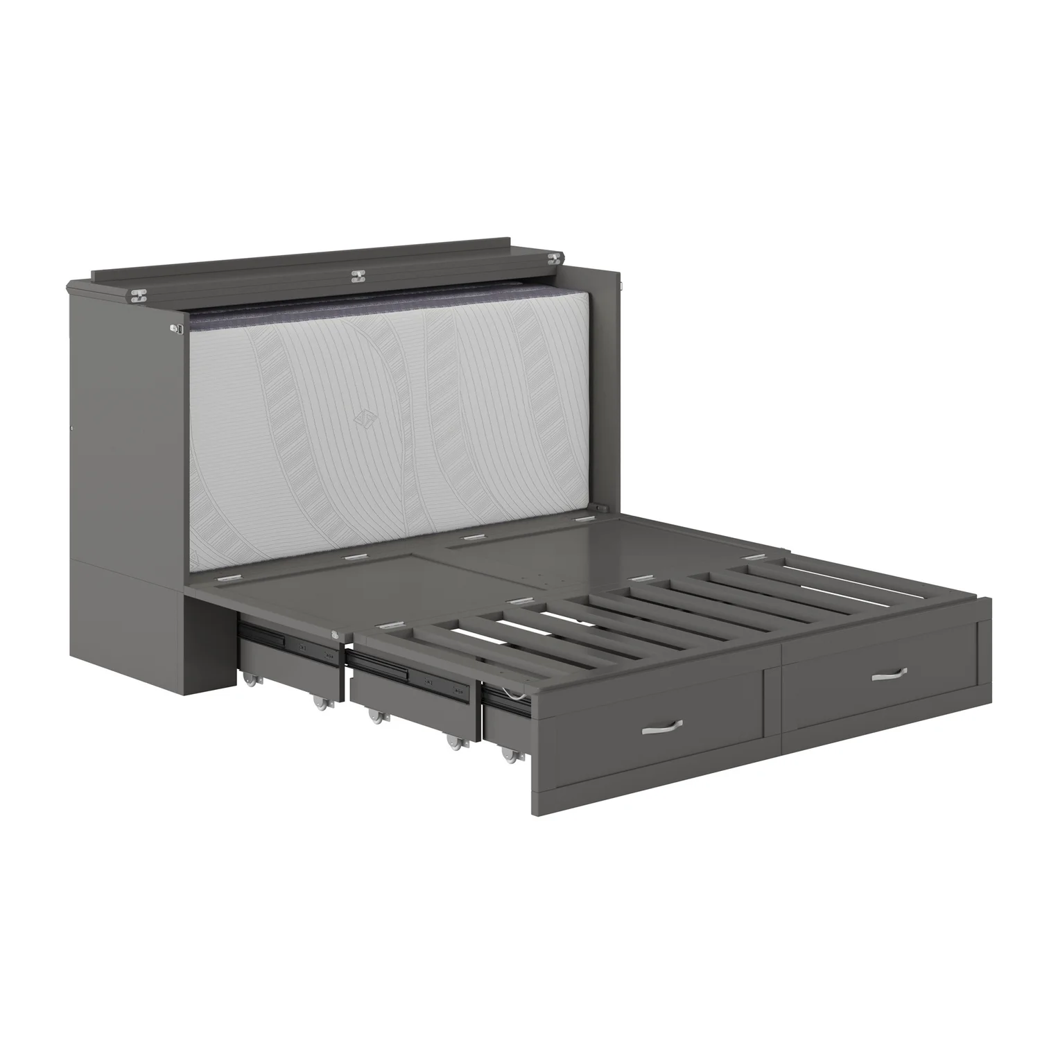 Atlin Designs Wood Full Murphy Bed with Nightstand in Bark Gray/White