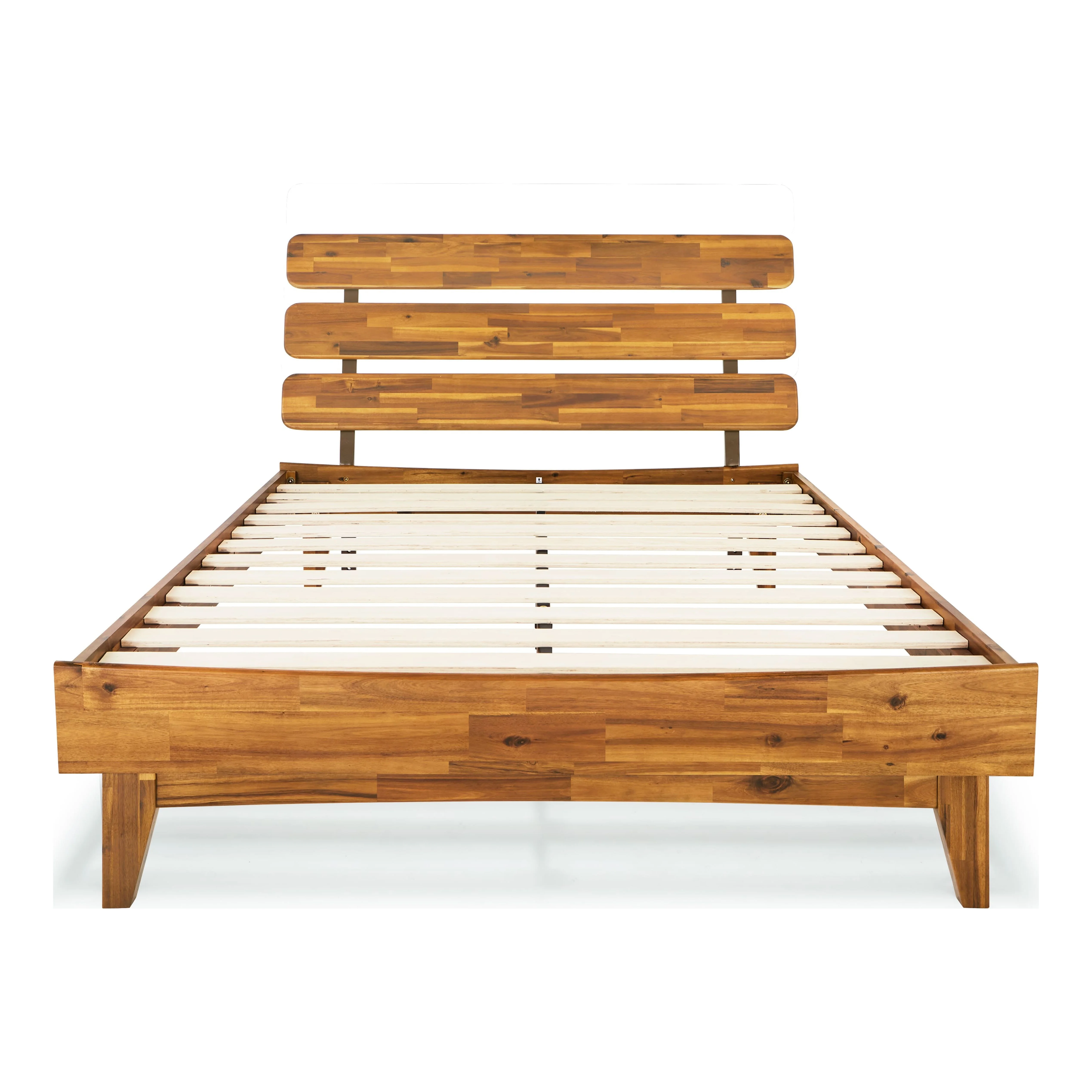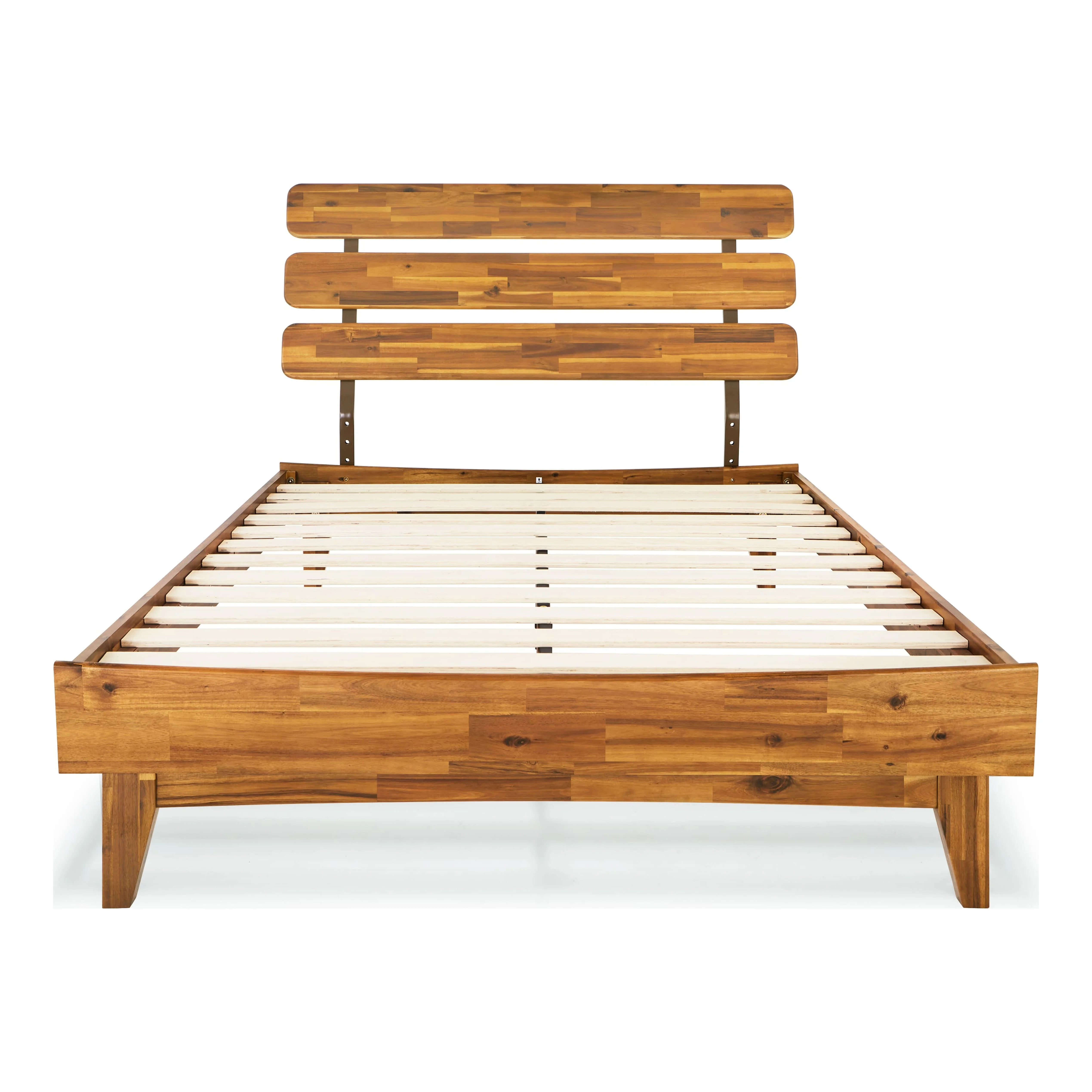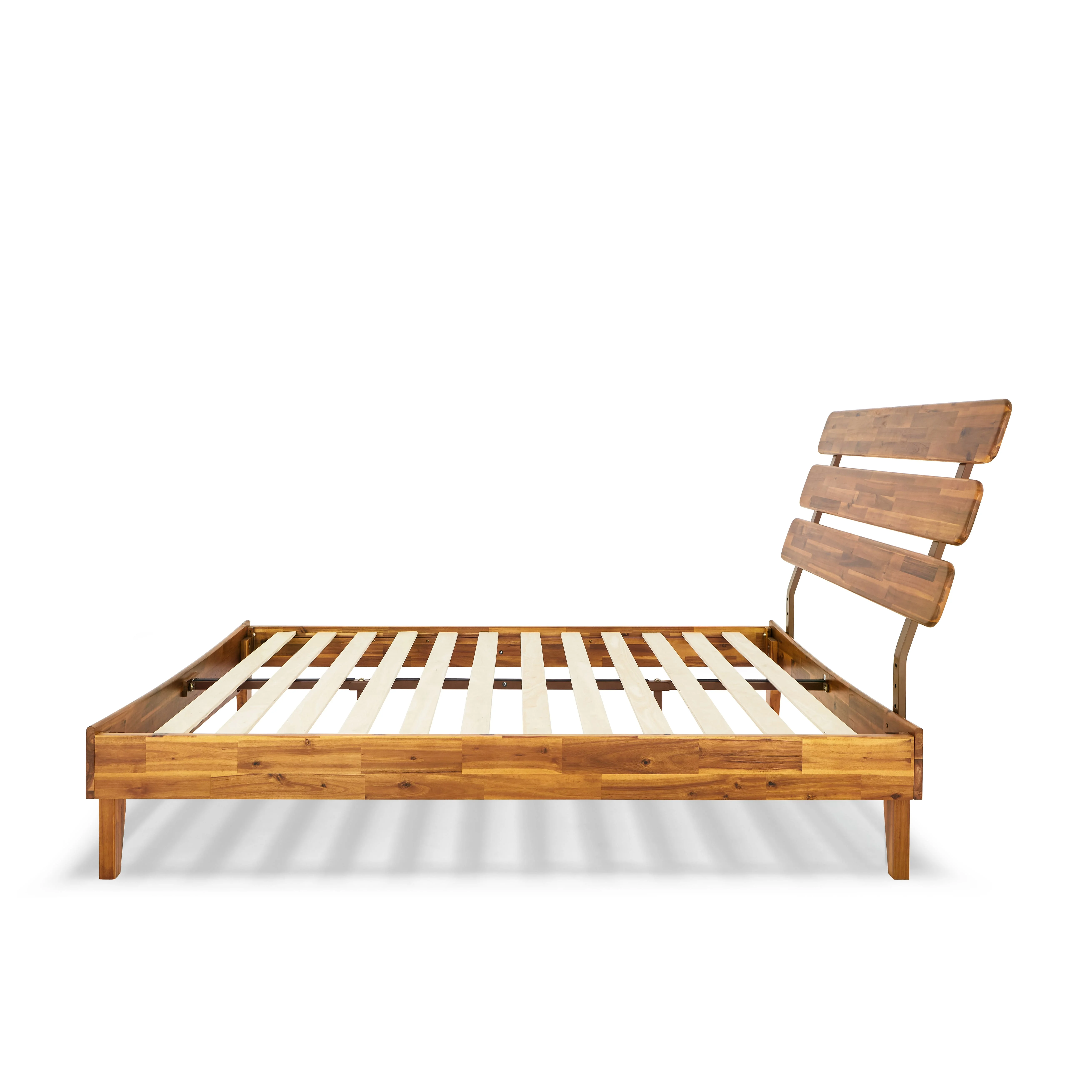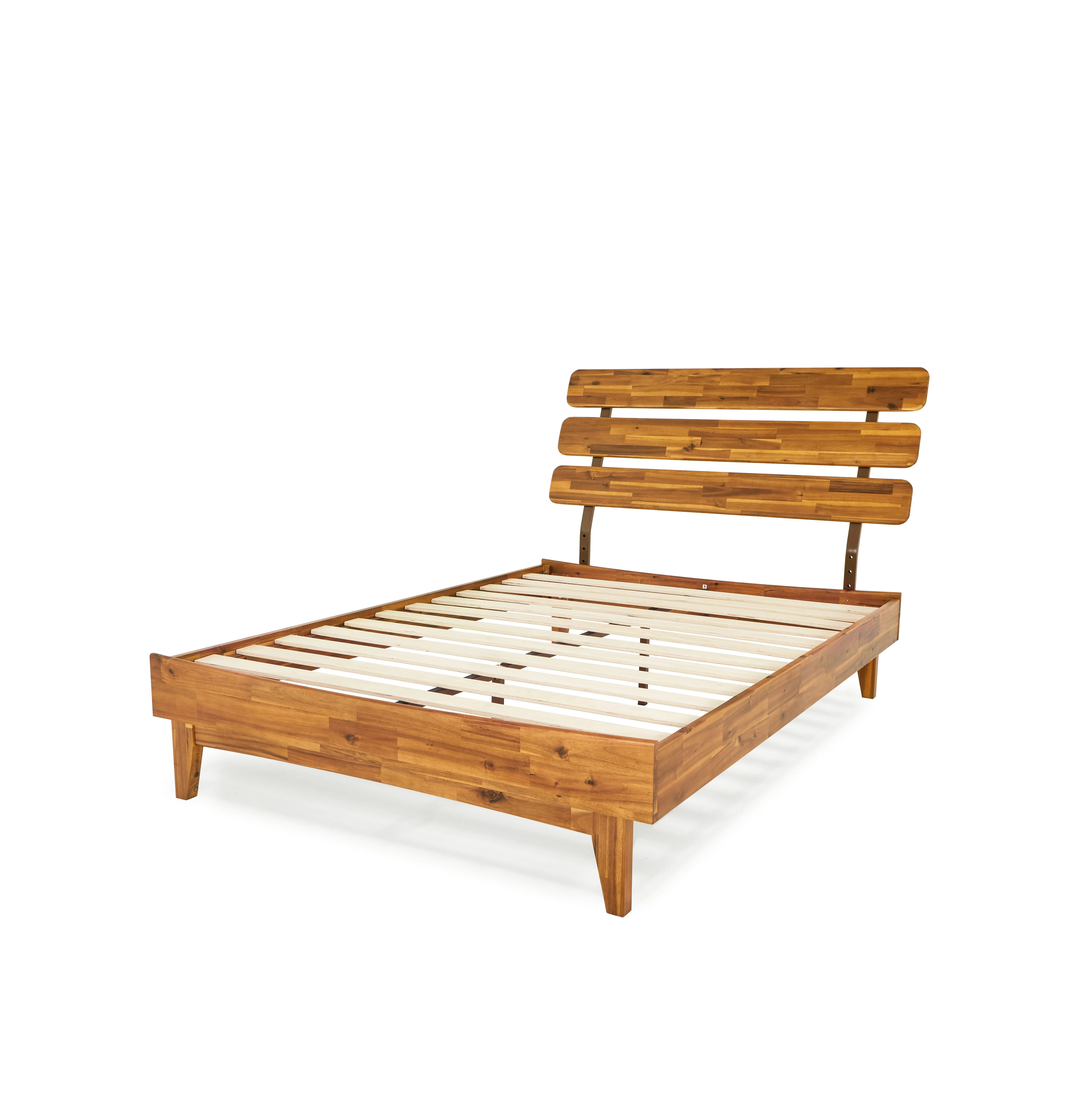 BME Dalen 45" Full Bed Frame, Adjustable Headboard, Mid-Century, Solid Wood, Caramel