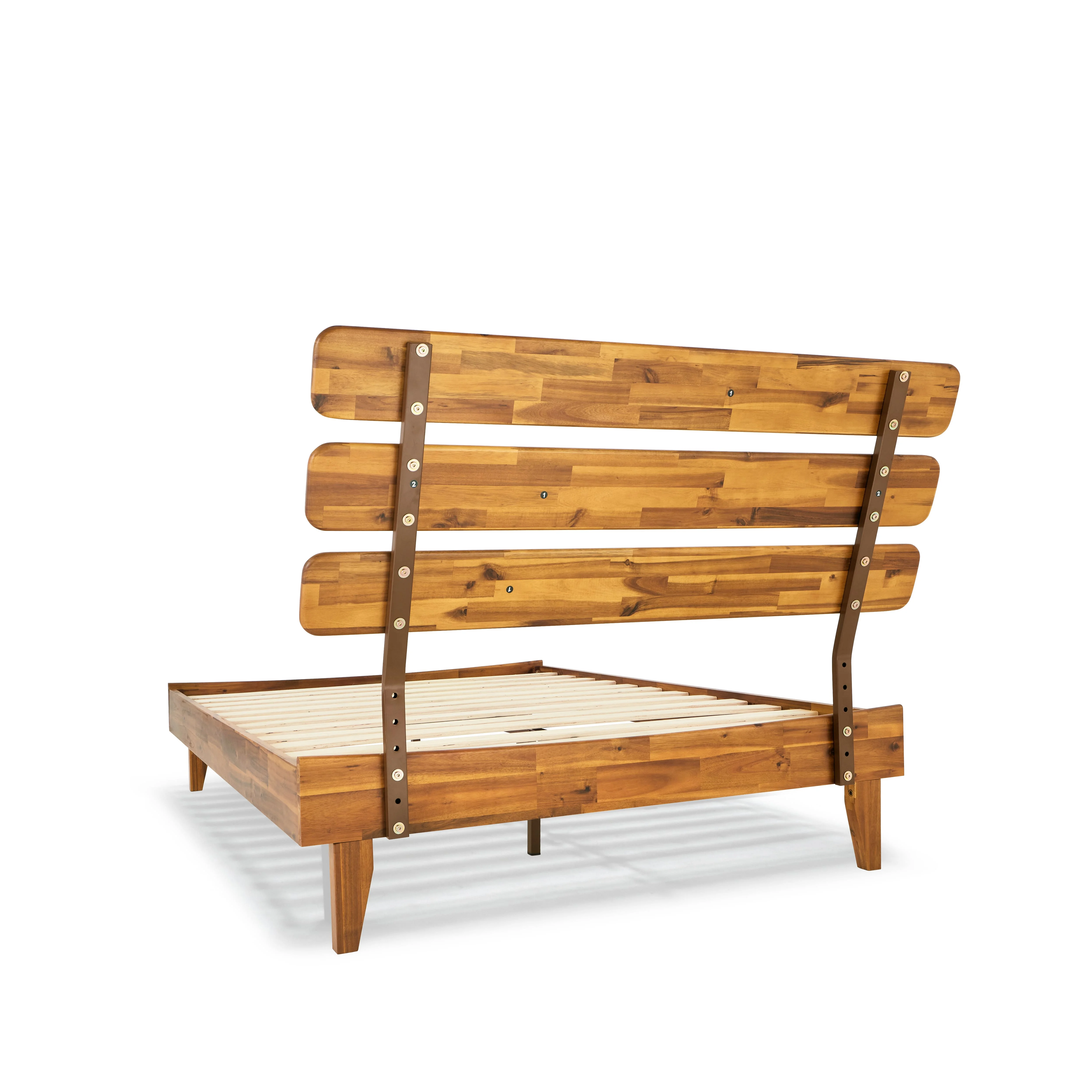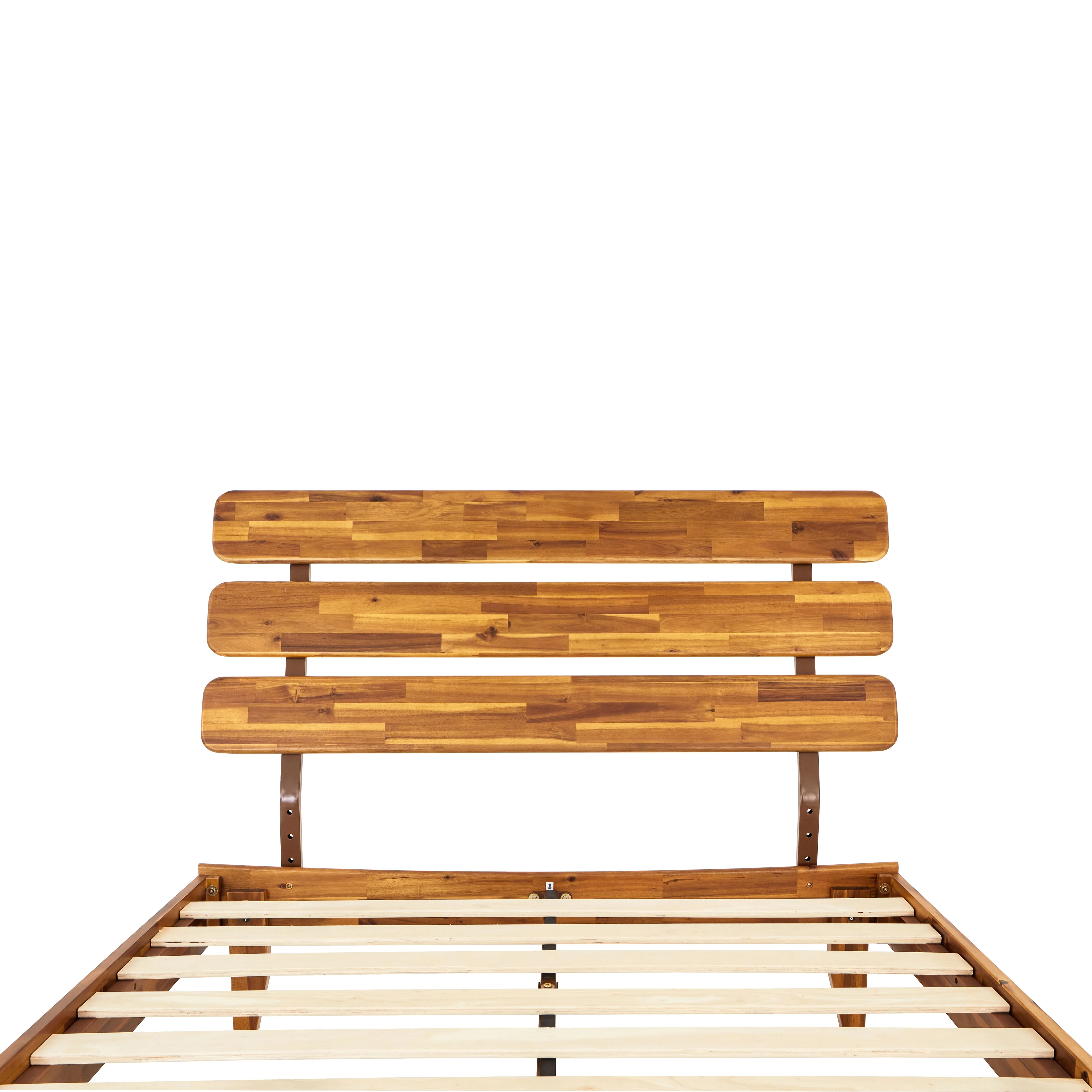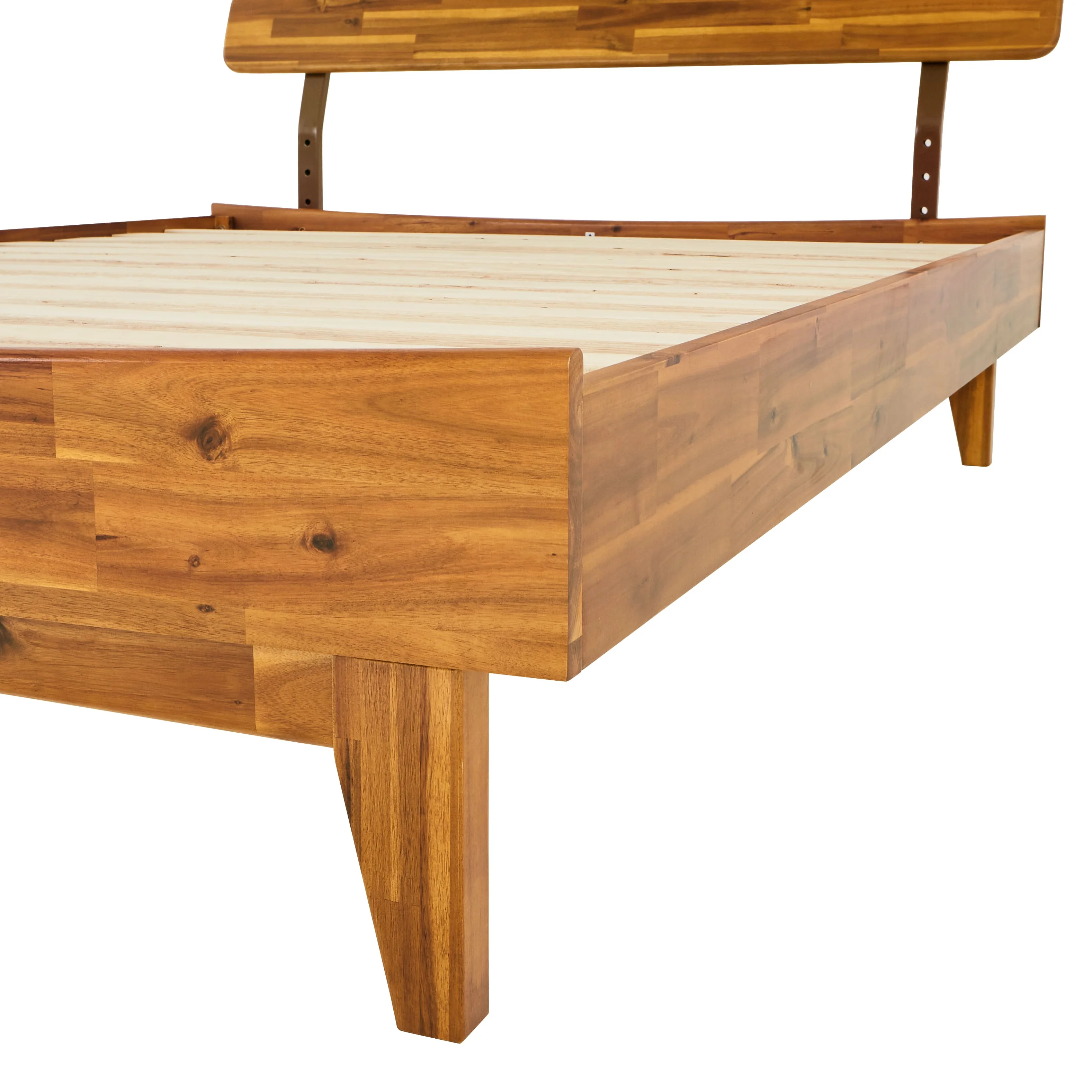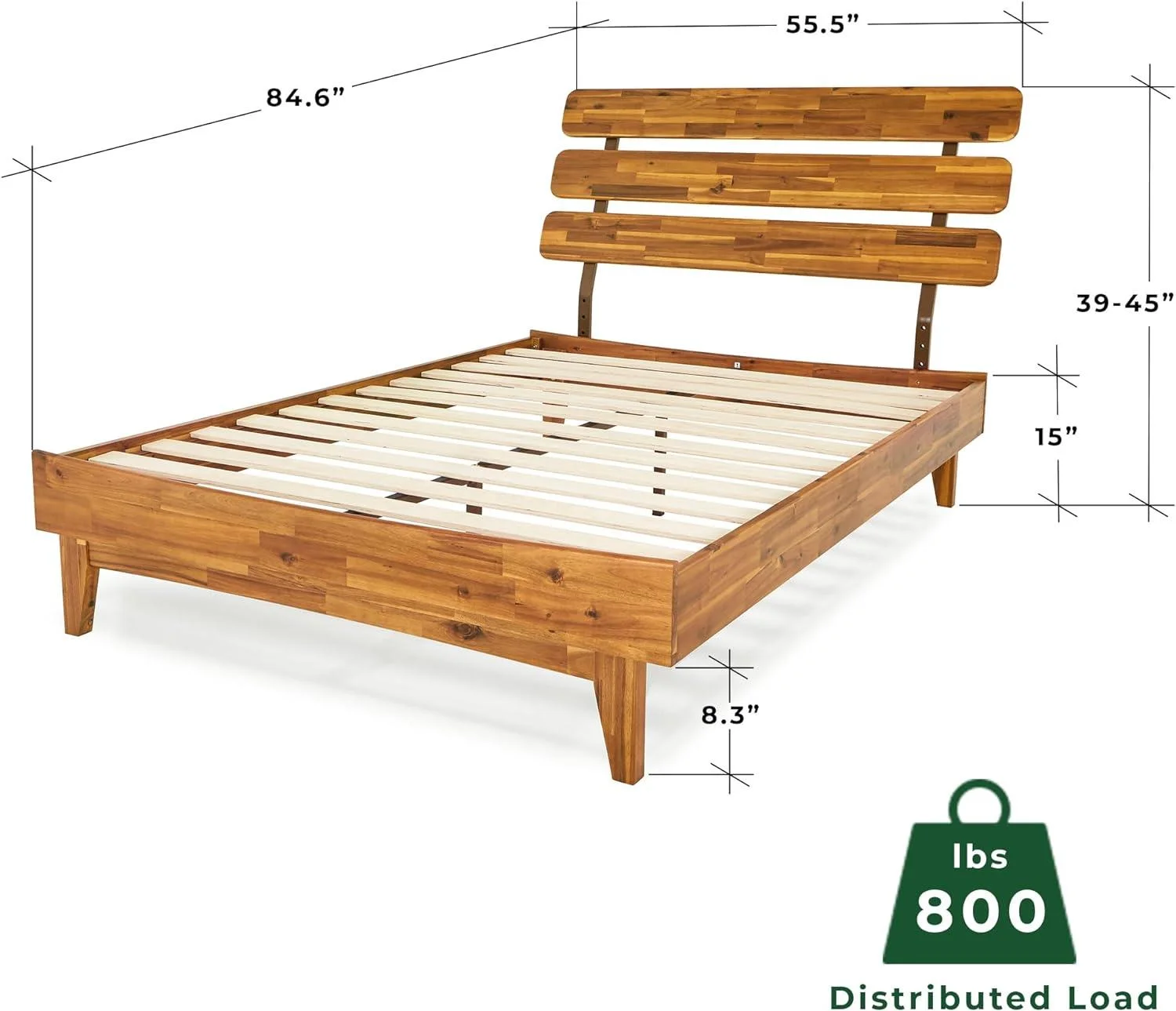 BME Dalen 45" Full Bed Frame, Adjustable Headboard, Mid-Century, Solid Wood, Caramel