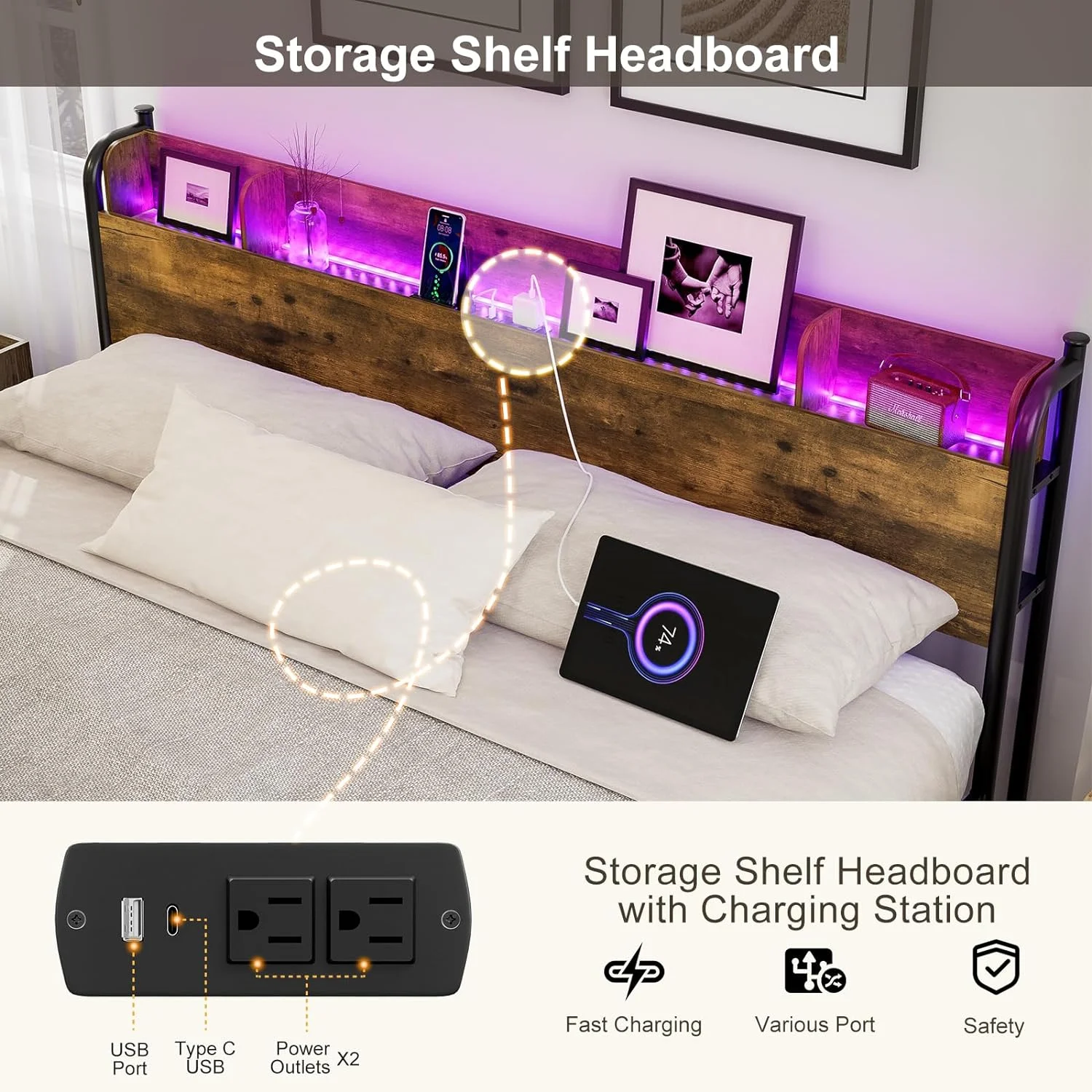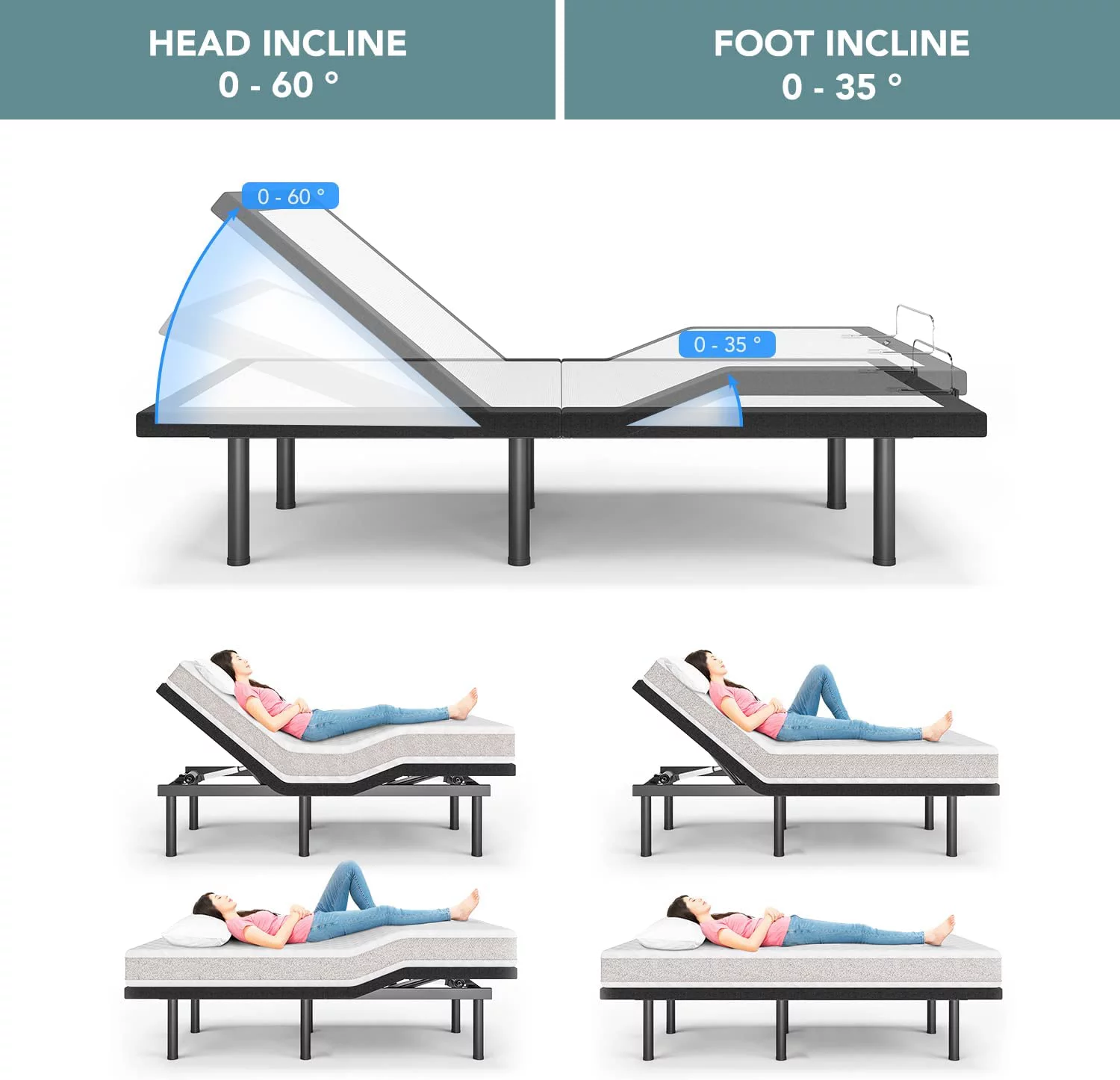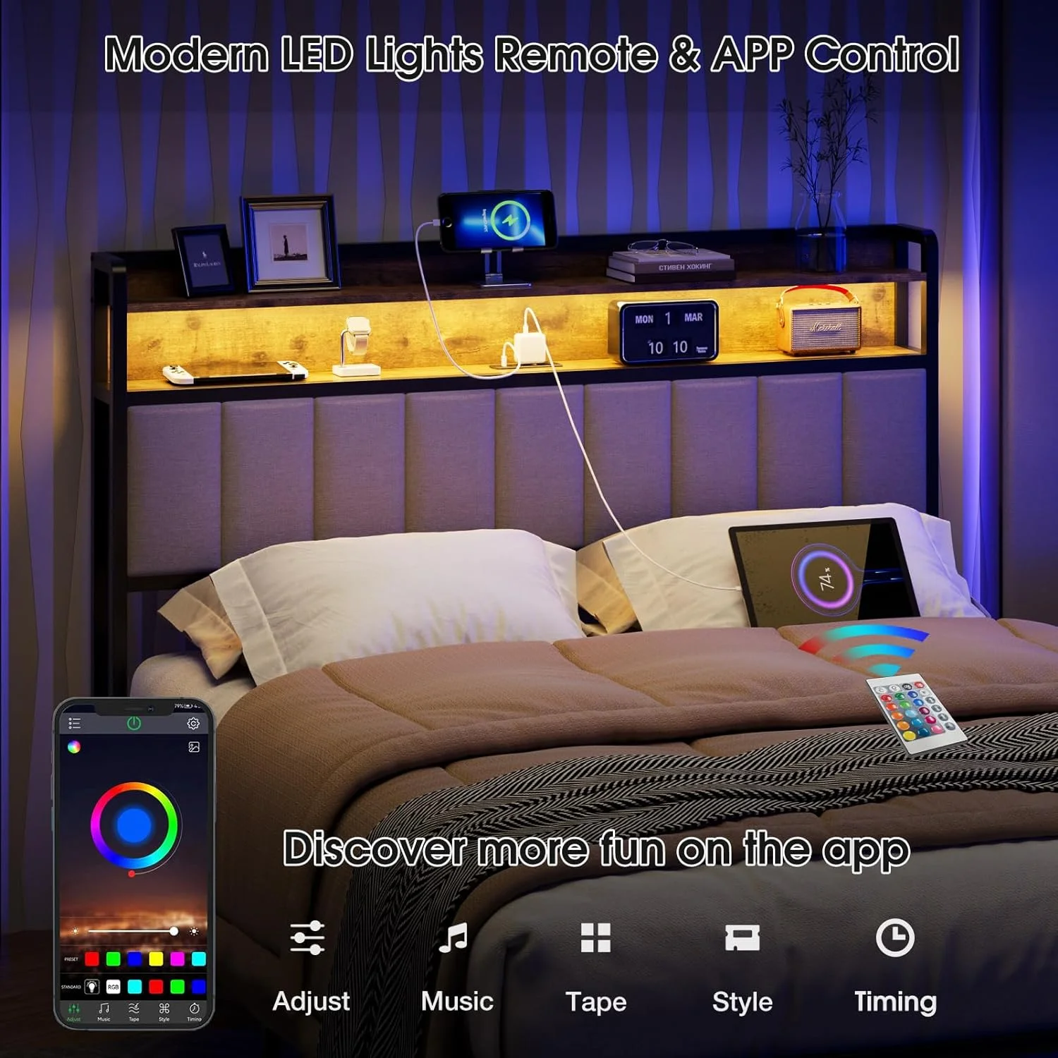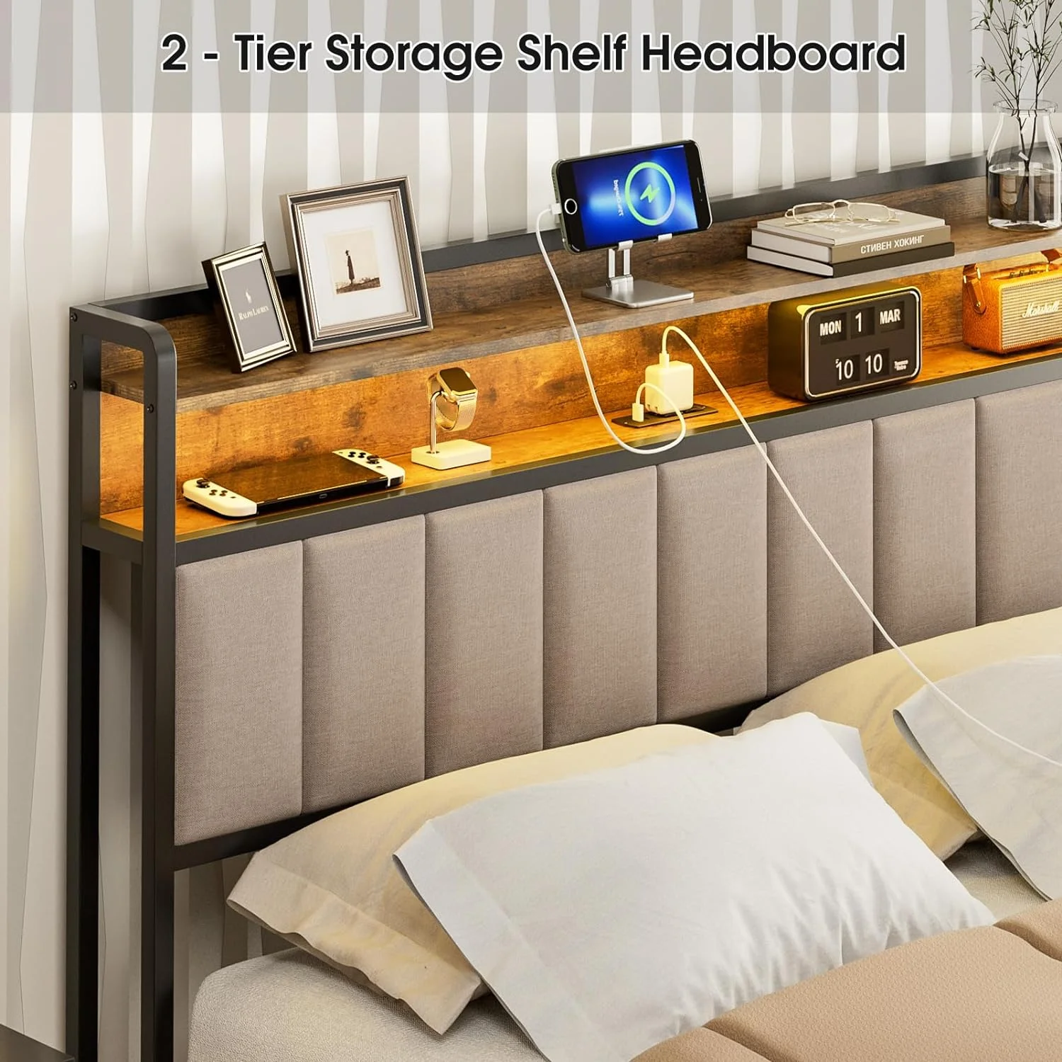 BME Dalen 45" Full Bed Frame, Adjustable Headboard, Mid-Century, Solid Wood, Caramel