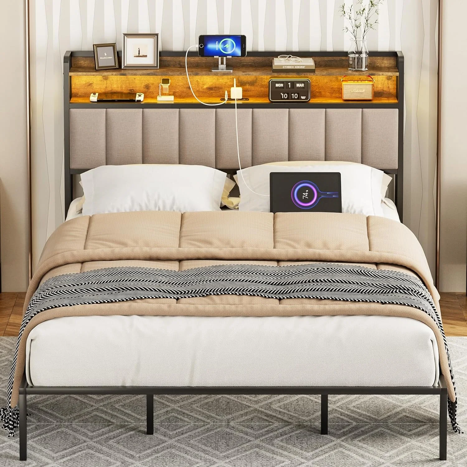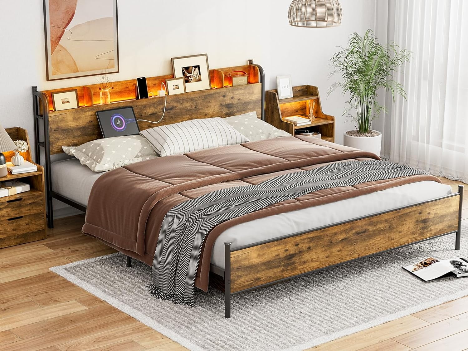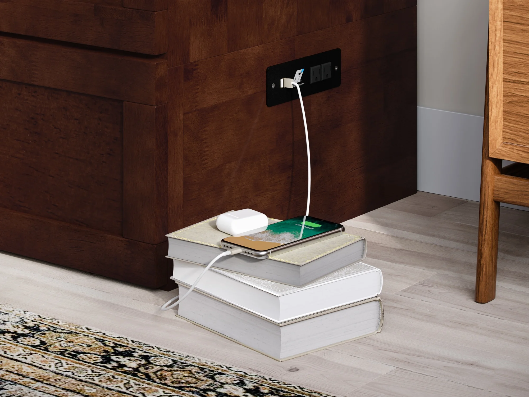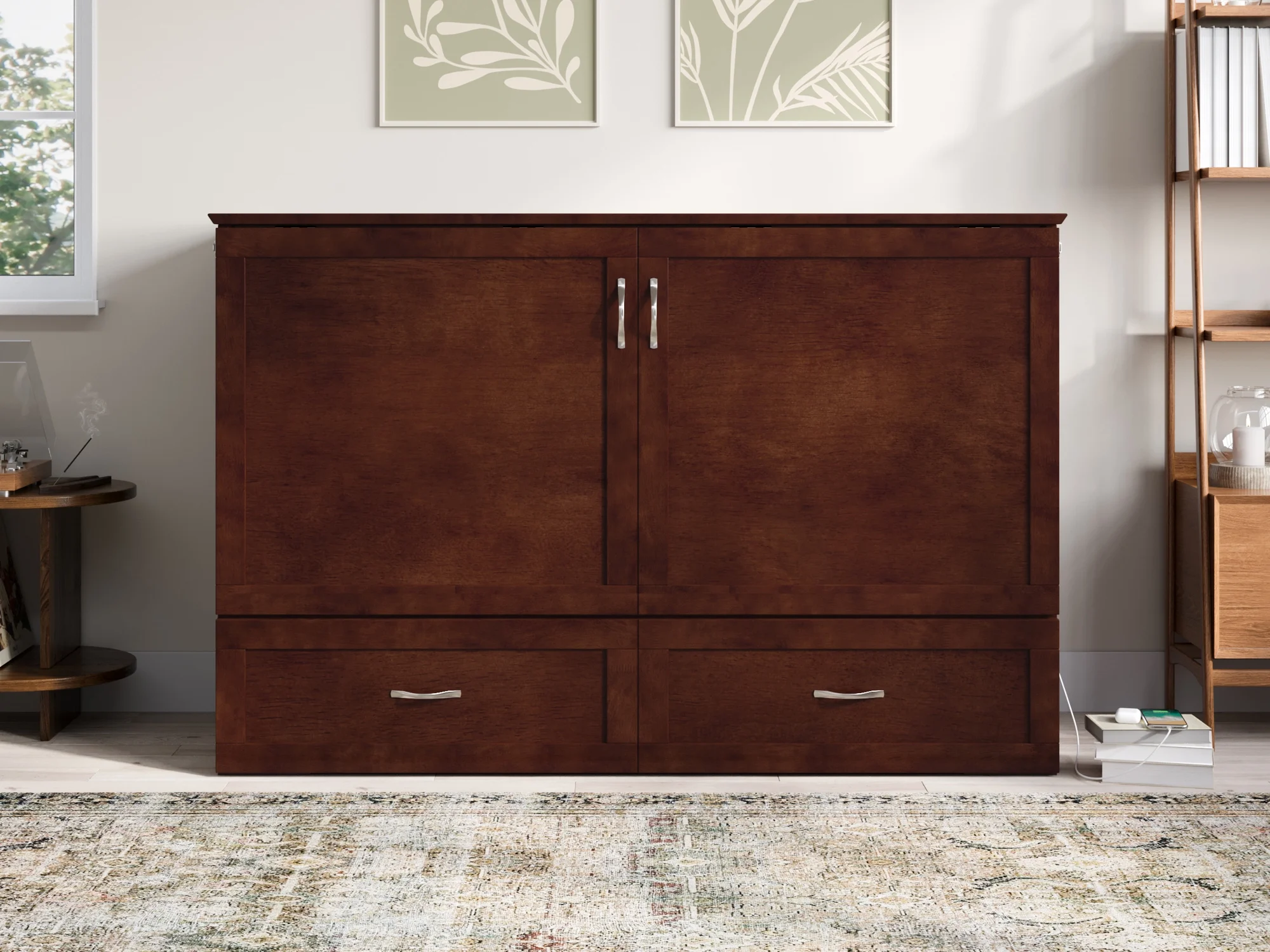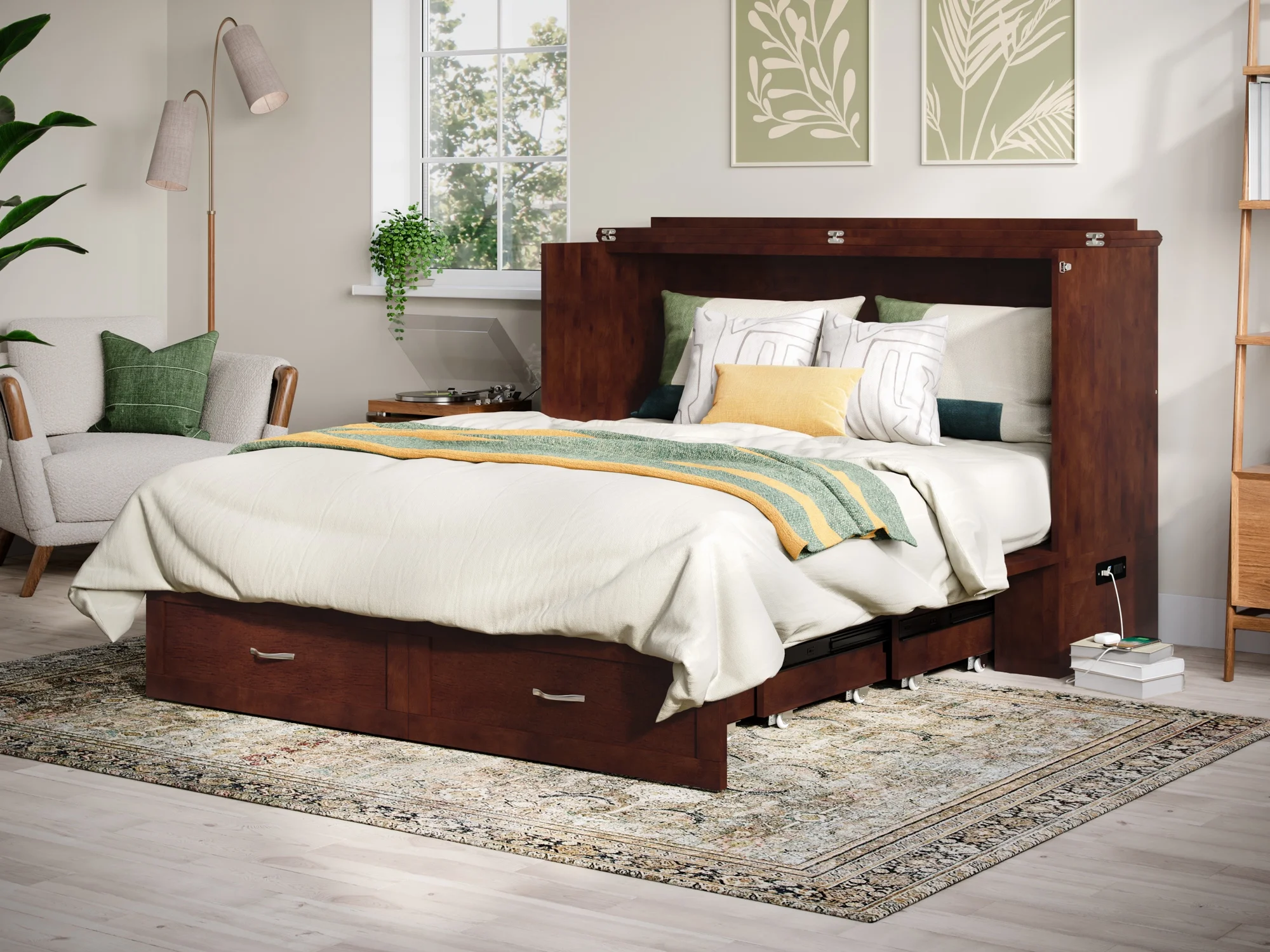 AFI Raleigh Queen Murphy Bed Chest with Mattress, Storage & Built-in Charging, Walnut