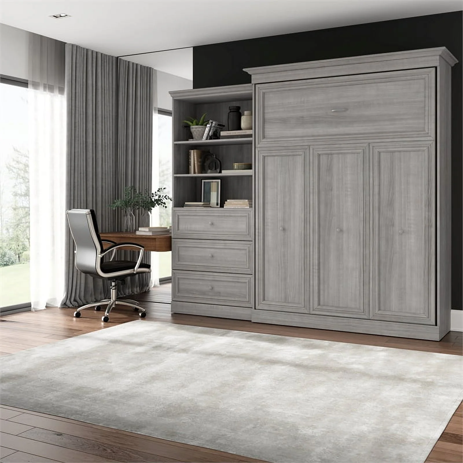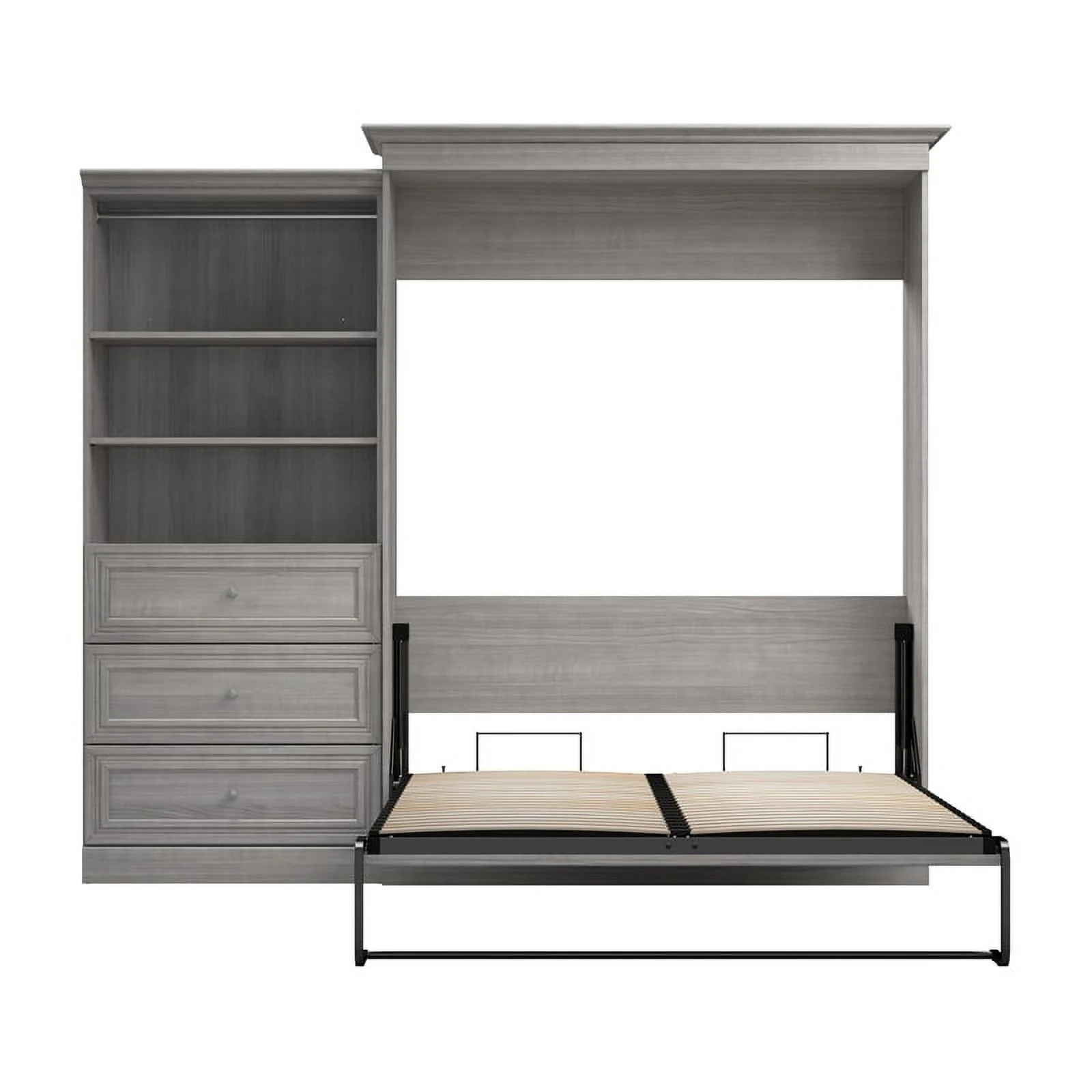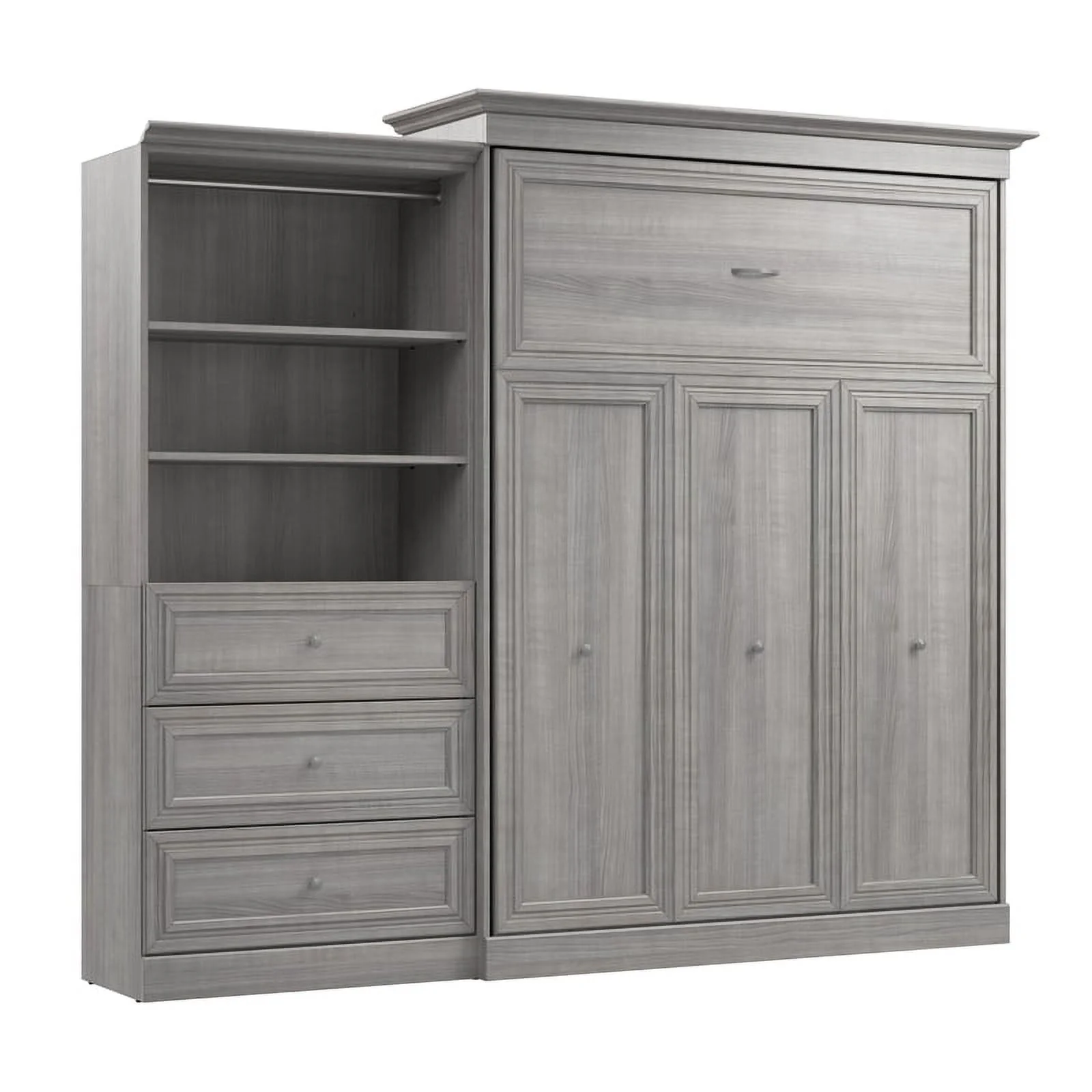 Bestar Versatile Engineered Wood Queen Murphy Bed and Organizer/Drawers in Gray