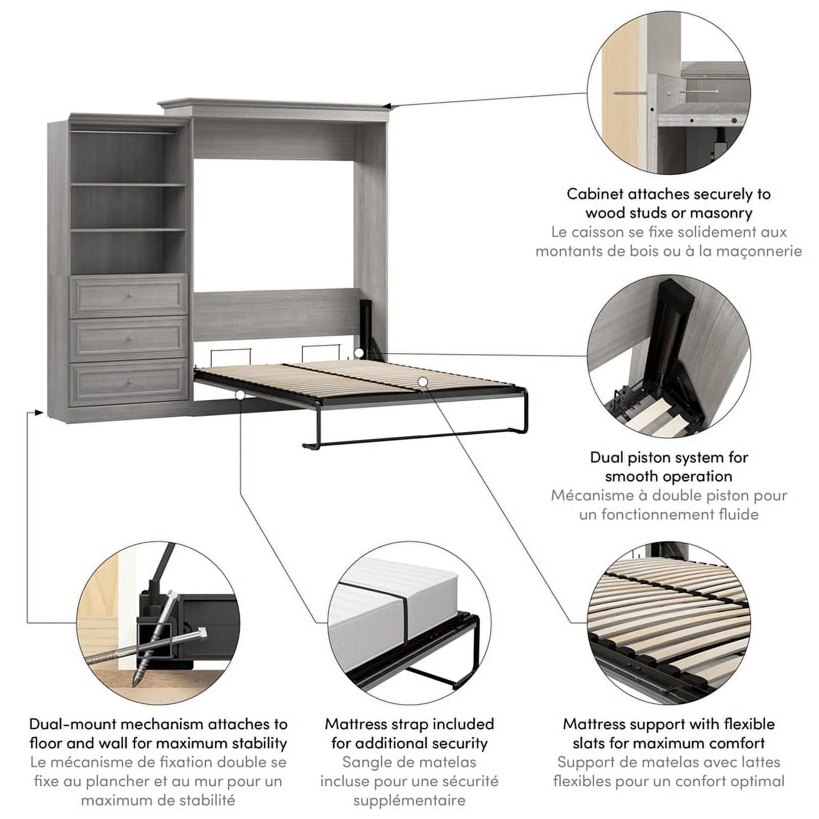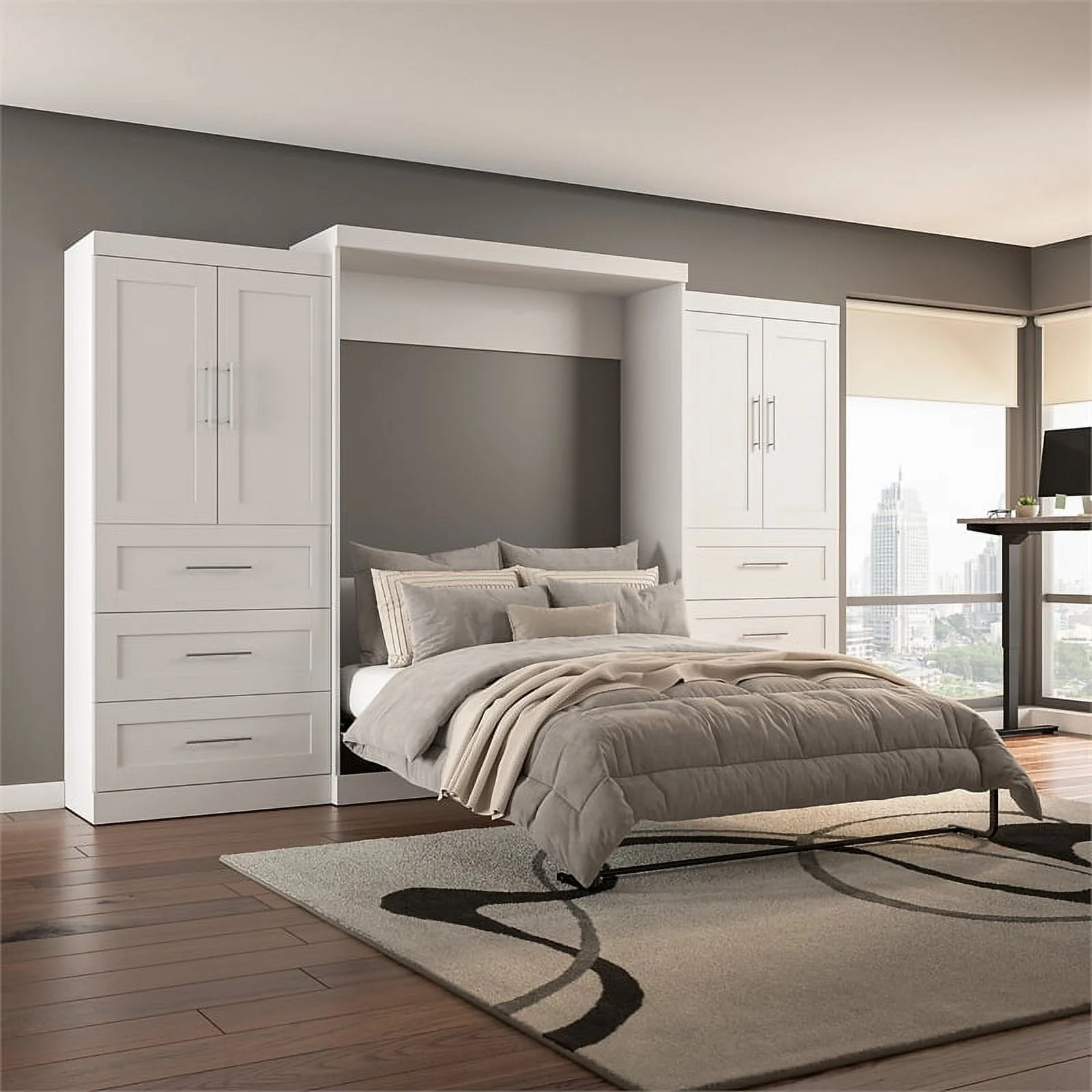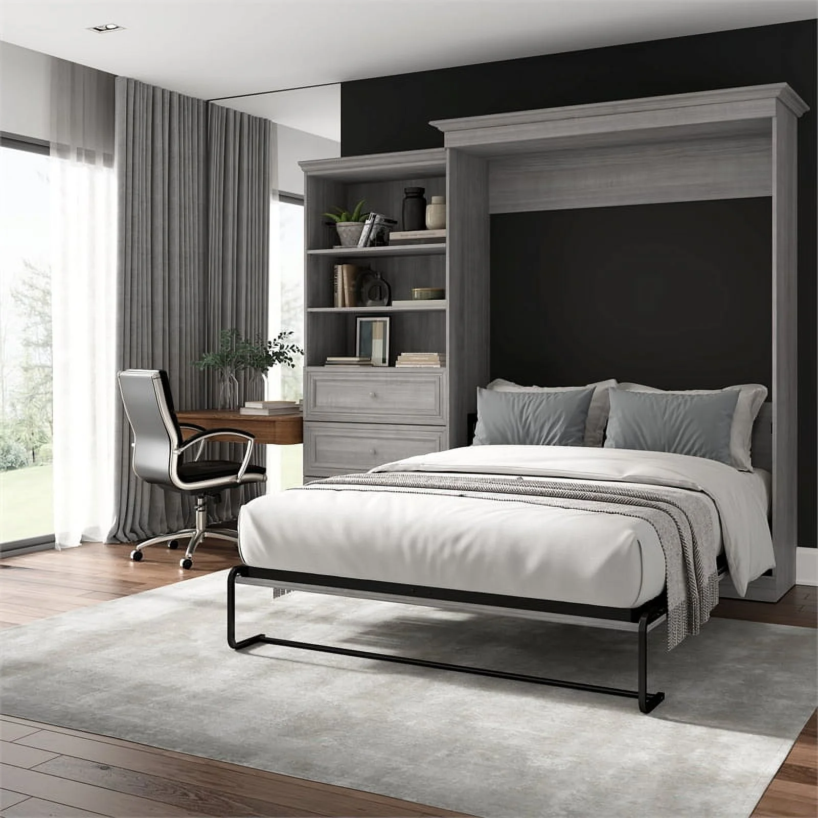 Bestar Versatile Engineered Wood Queen Murphy Bed and Organizer/Drawers in Gray