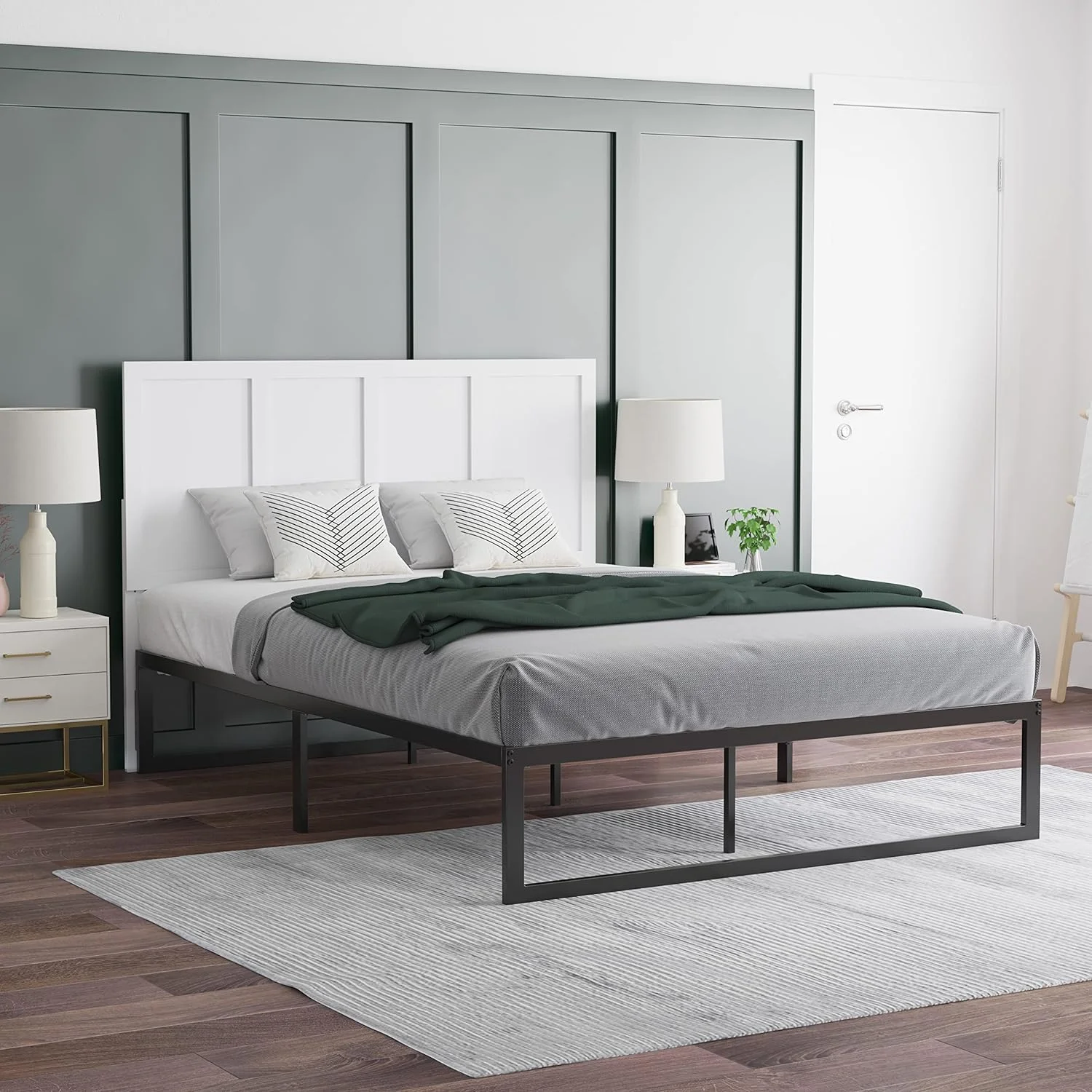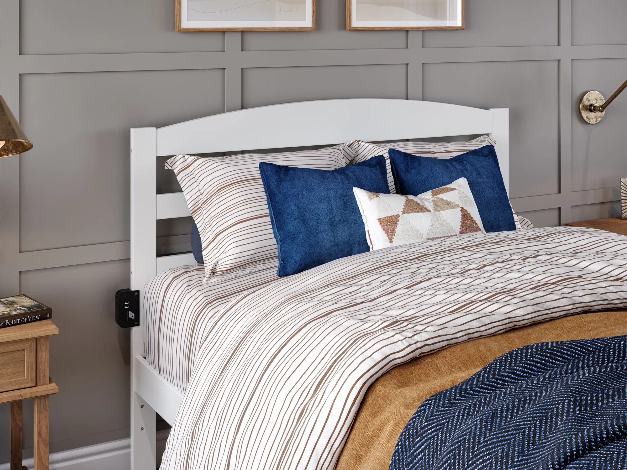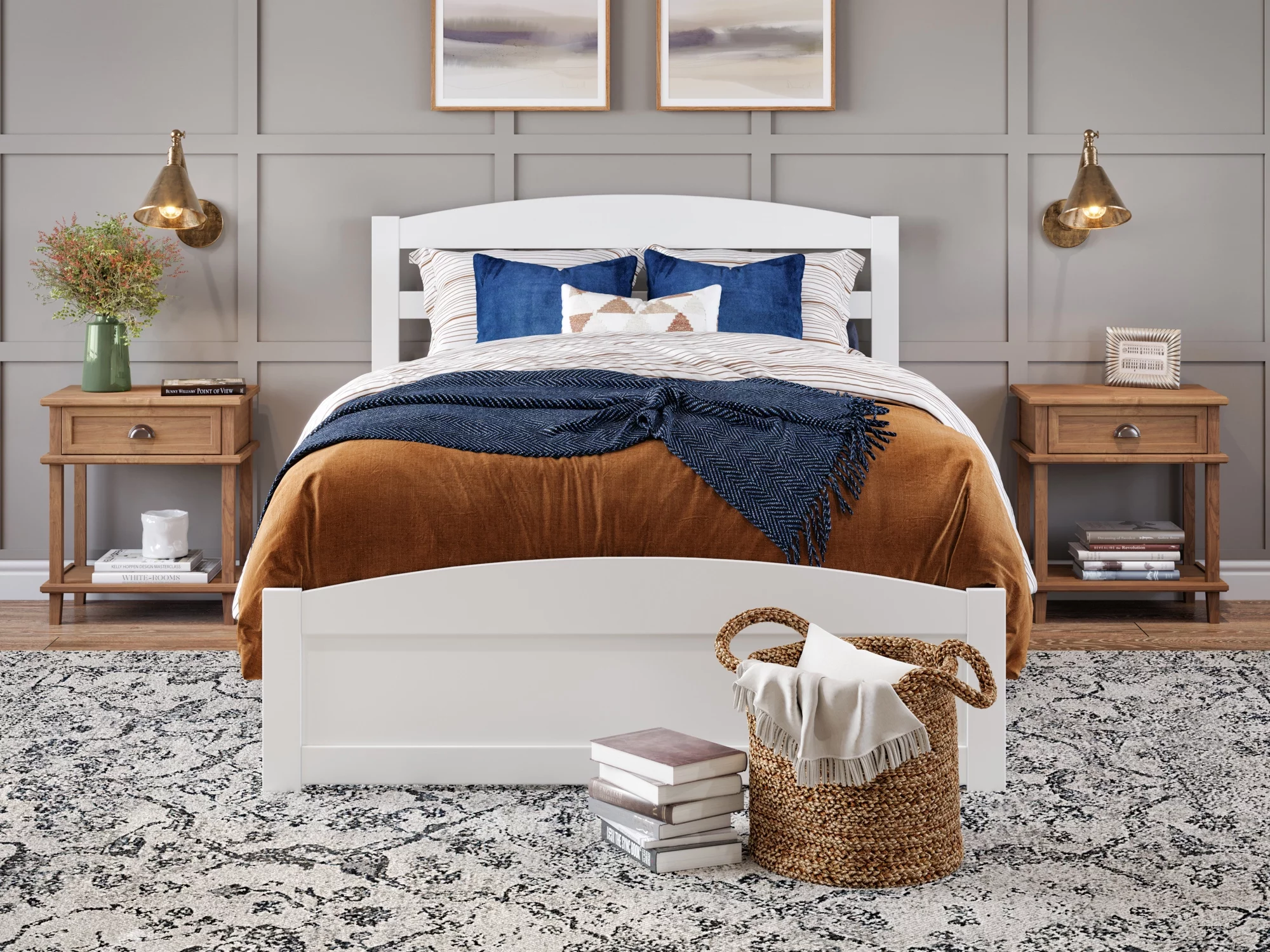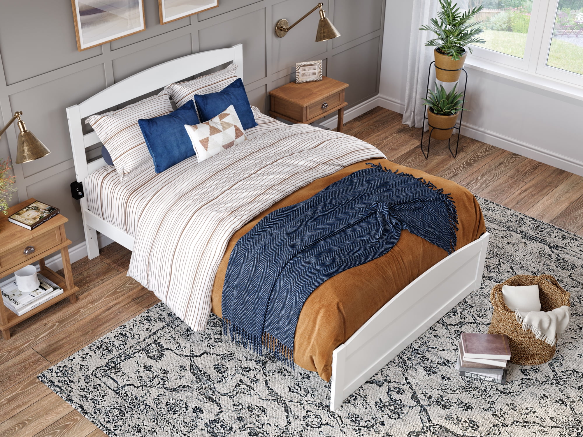 AFI Warren 14" Full Wood Platform Bed Frame with Headboard and Footboard, White