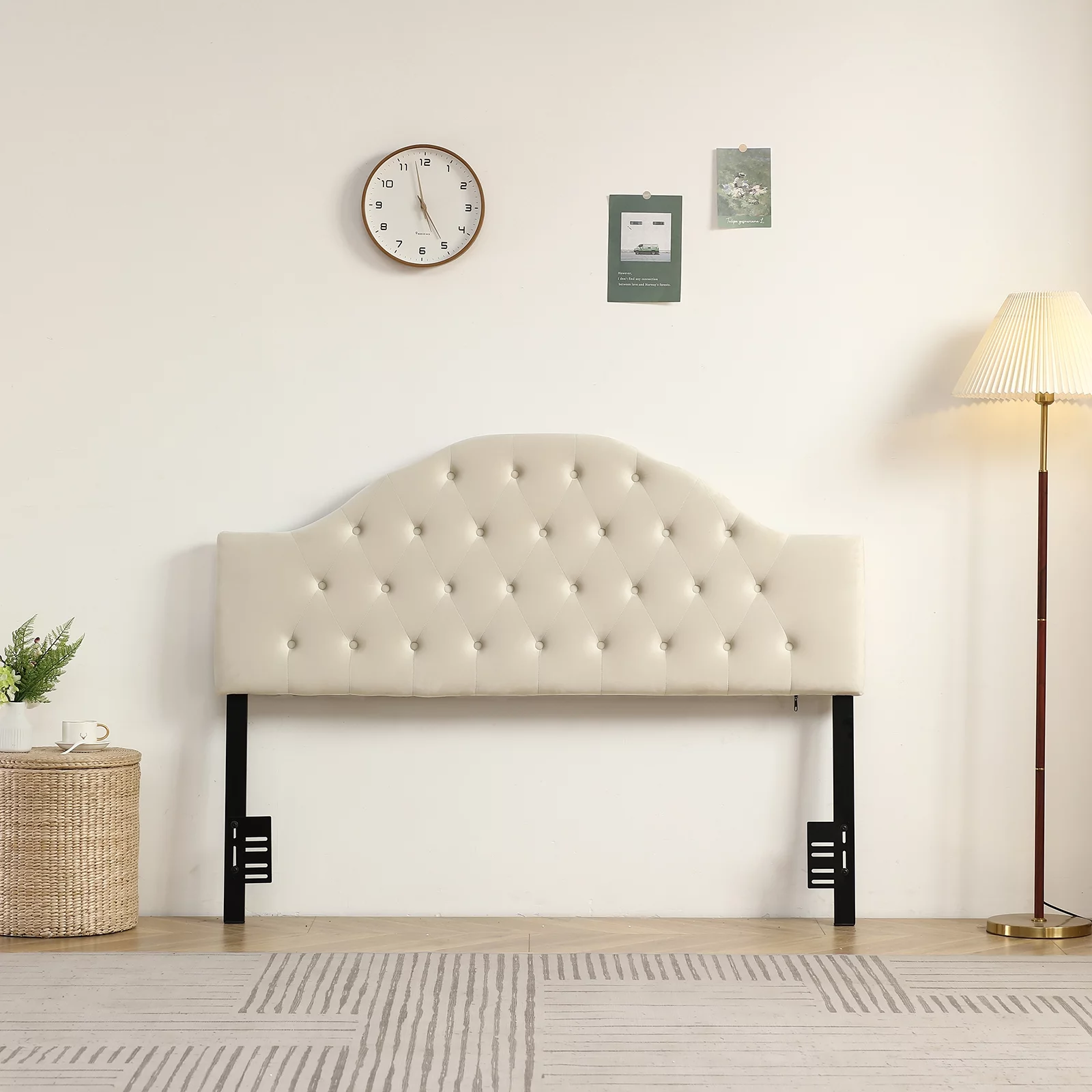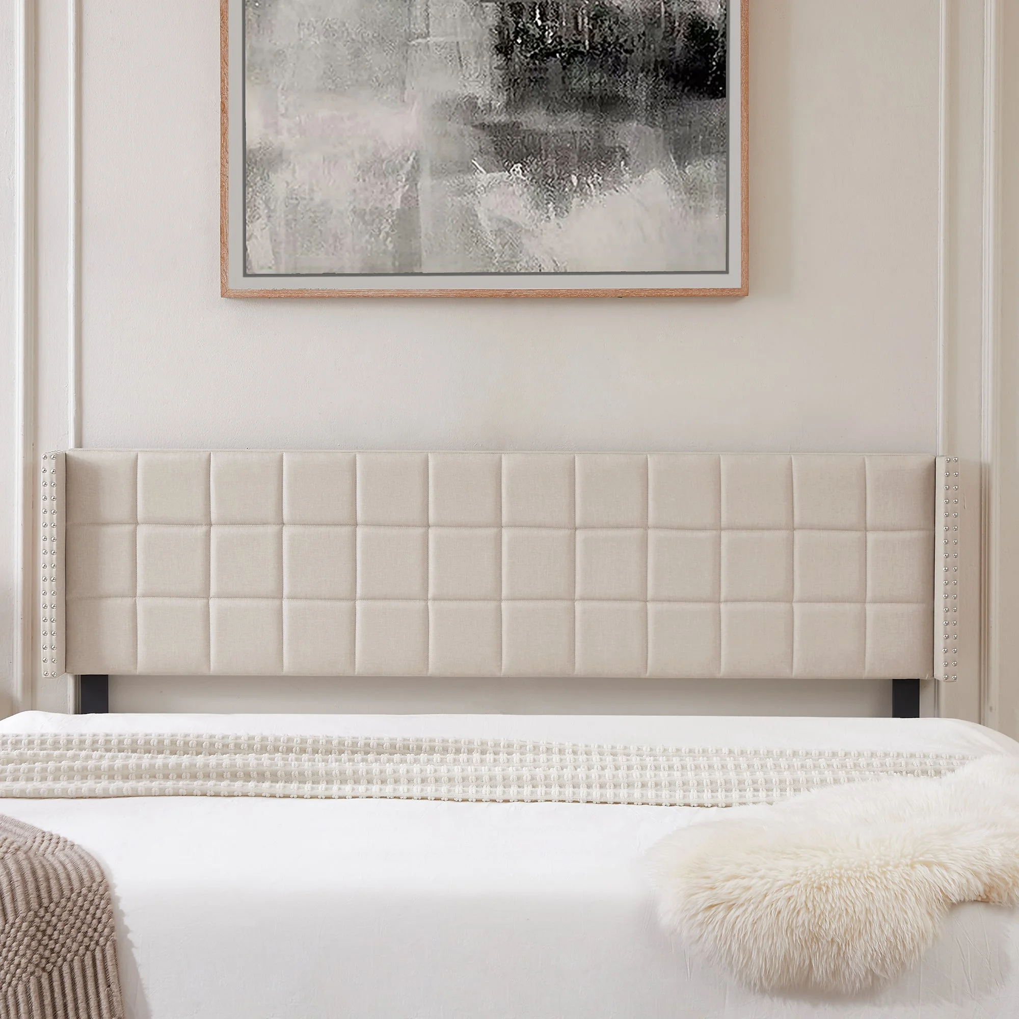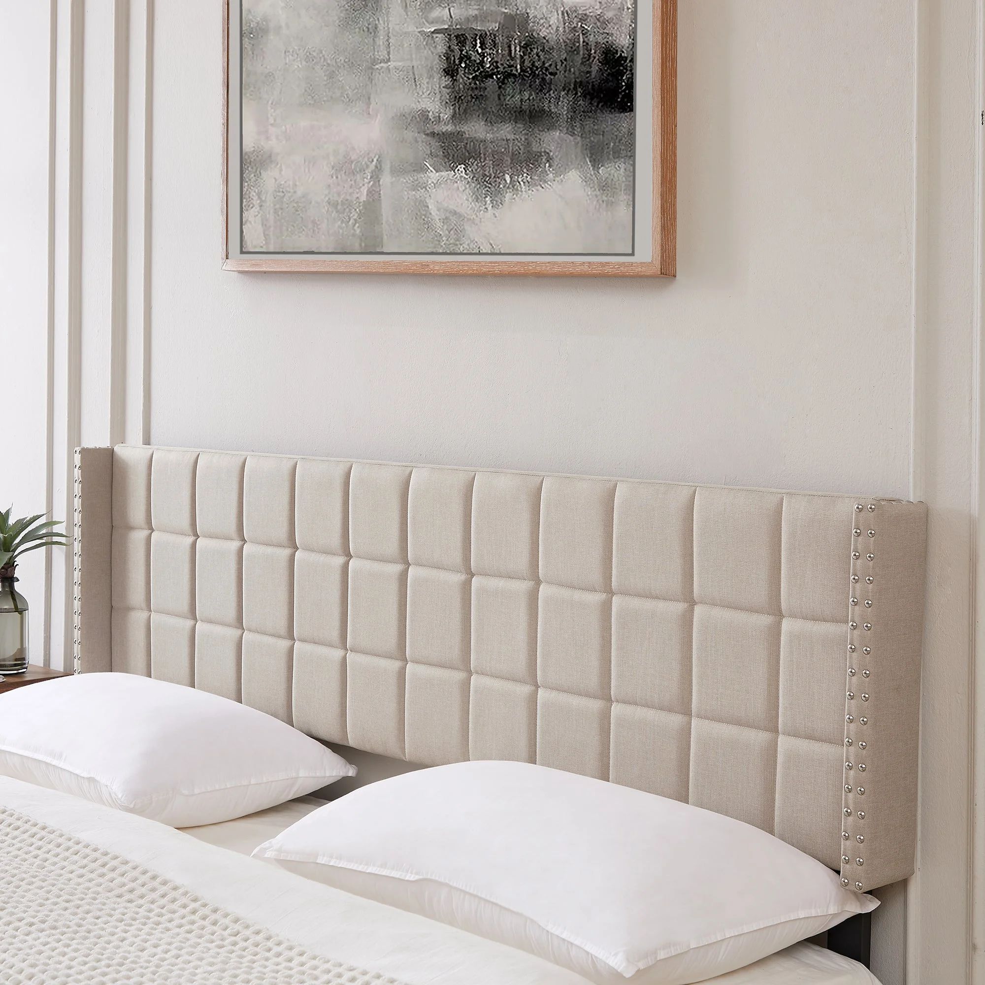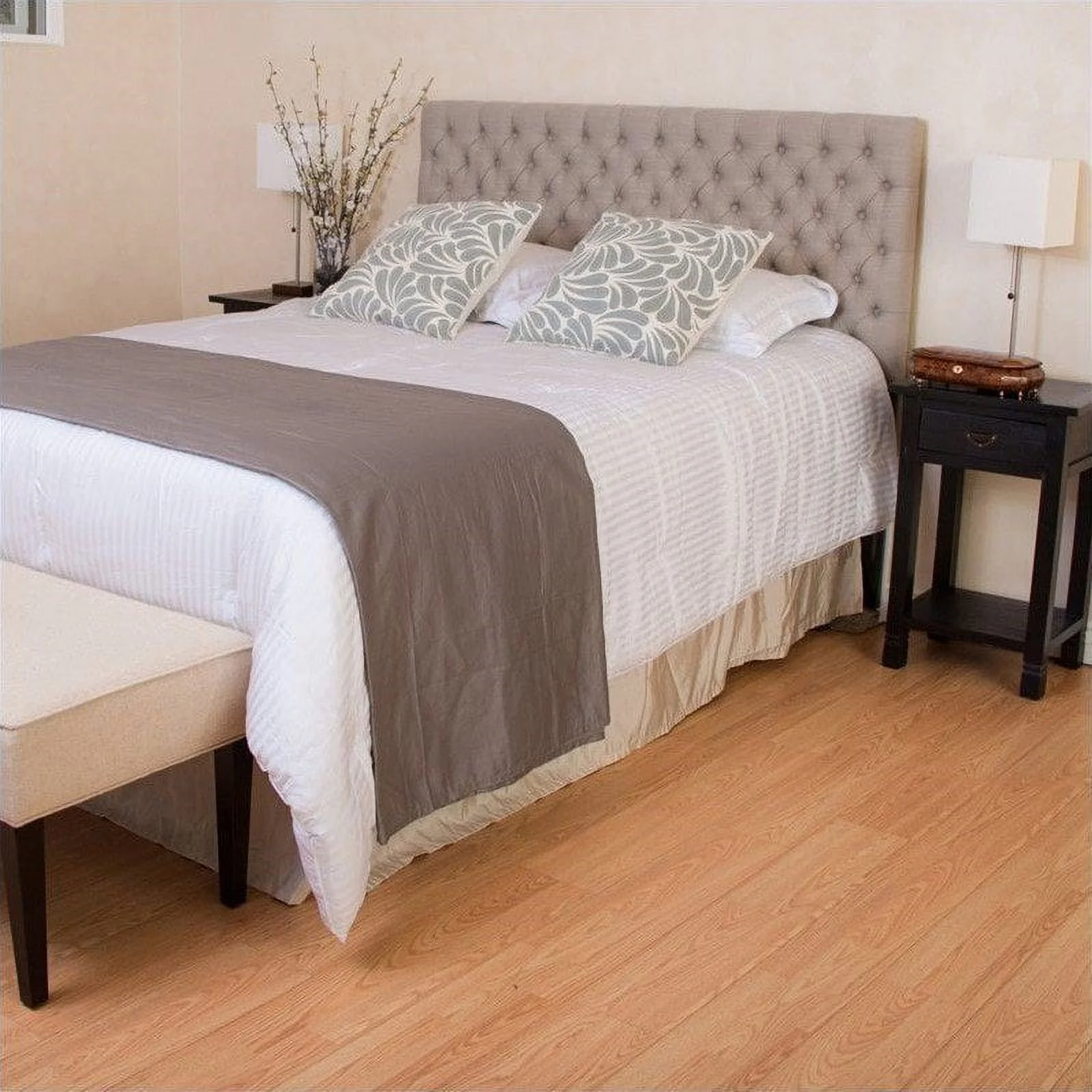 Noble House Mary Adjustable Queen-Full Tufted Panel Headboard in Beige
