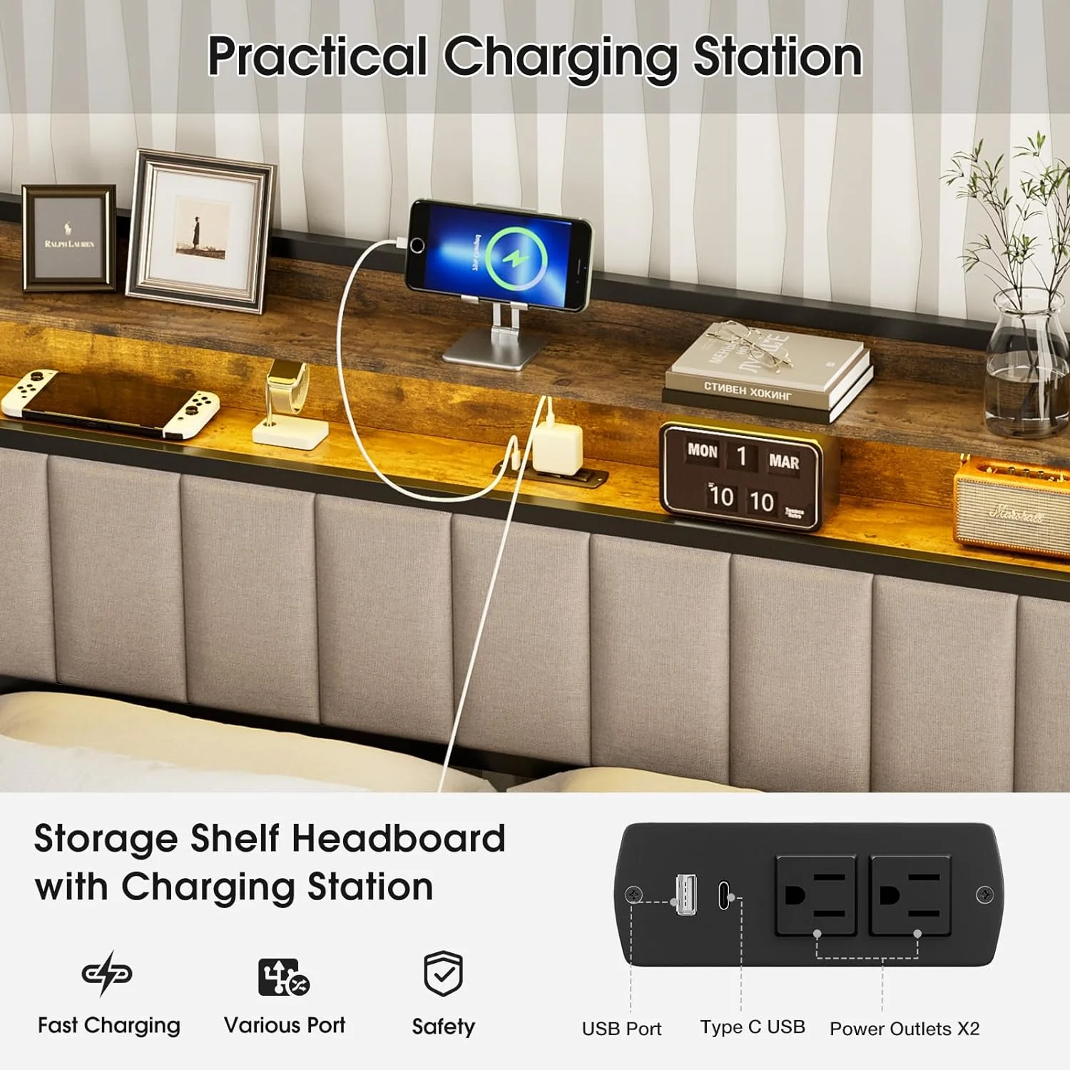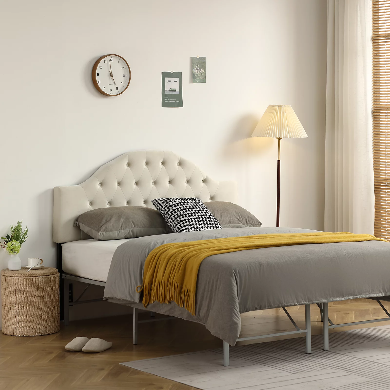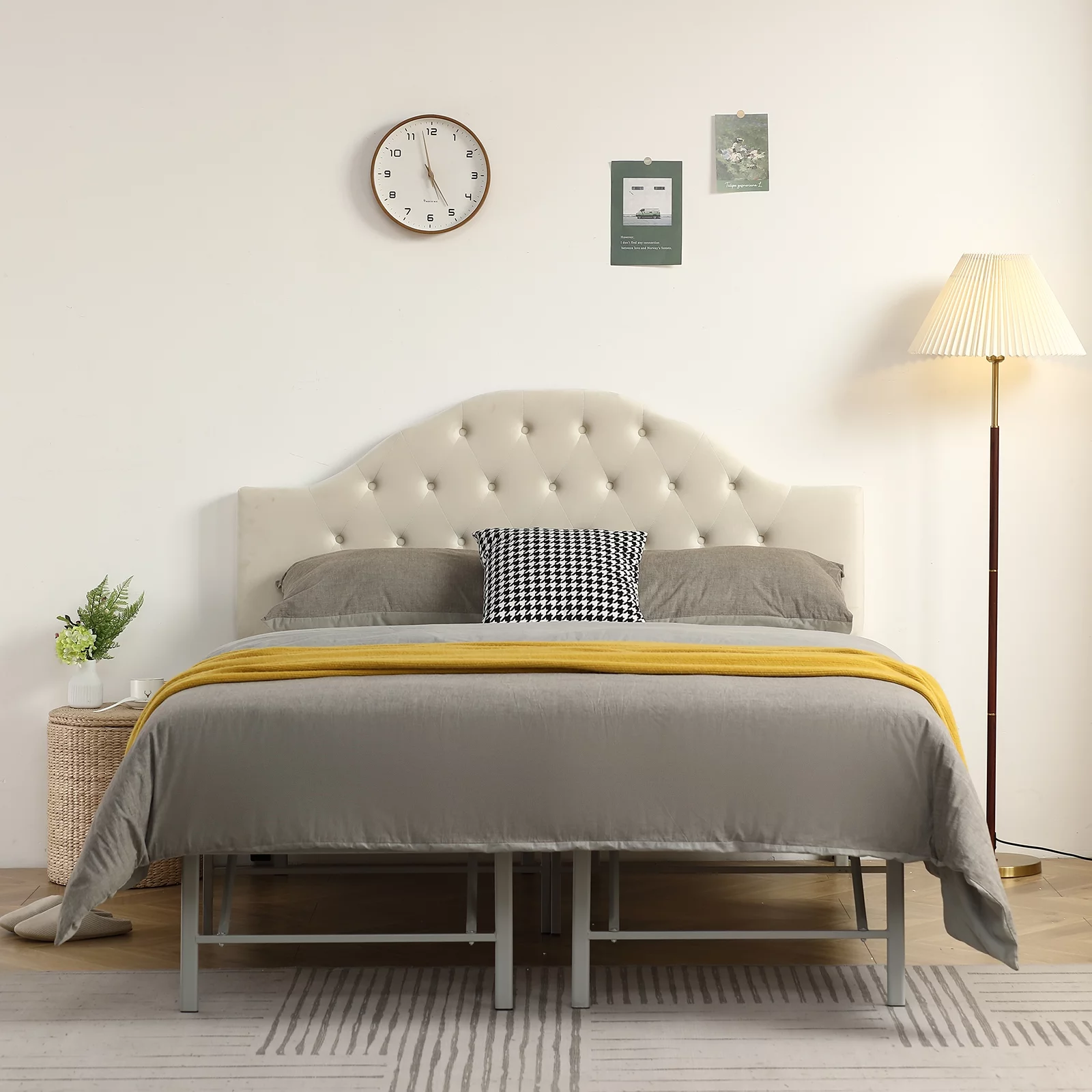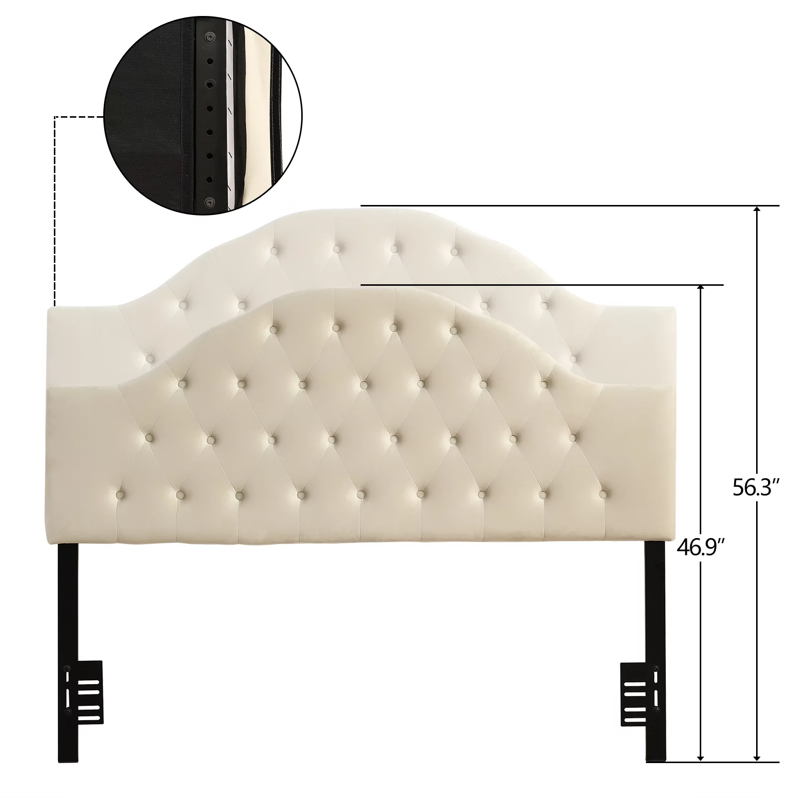 Noble House Mary Adjustable Queen-Full Tufted Panel Headboard in Beige