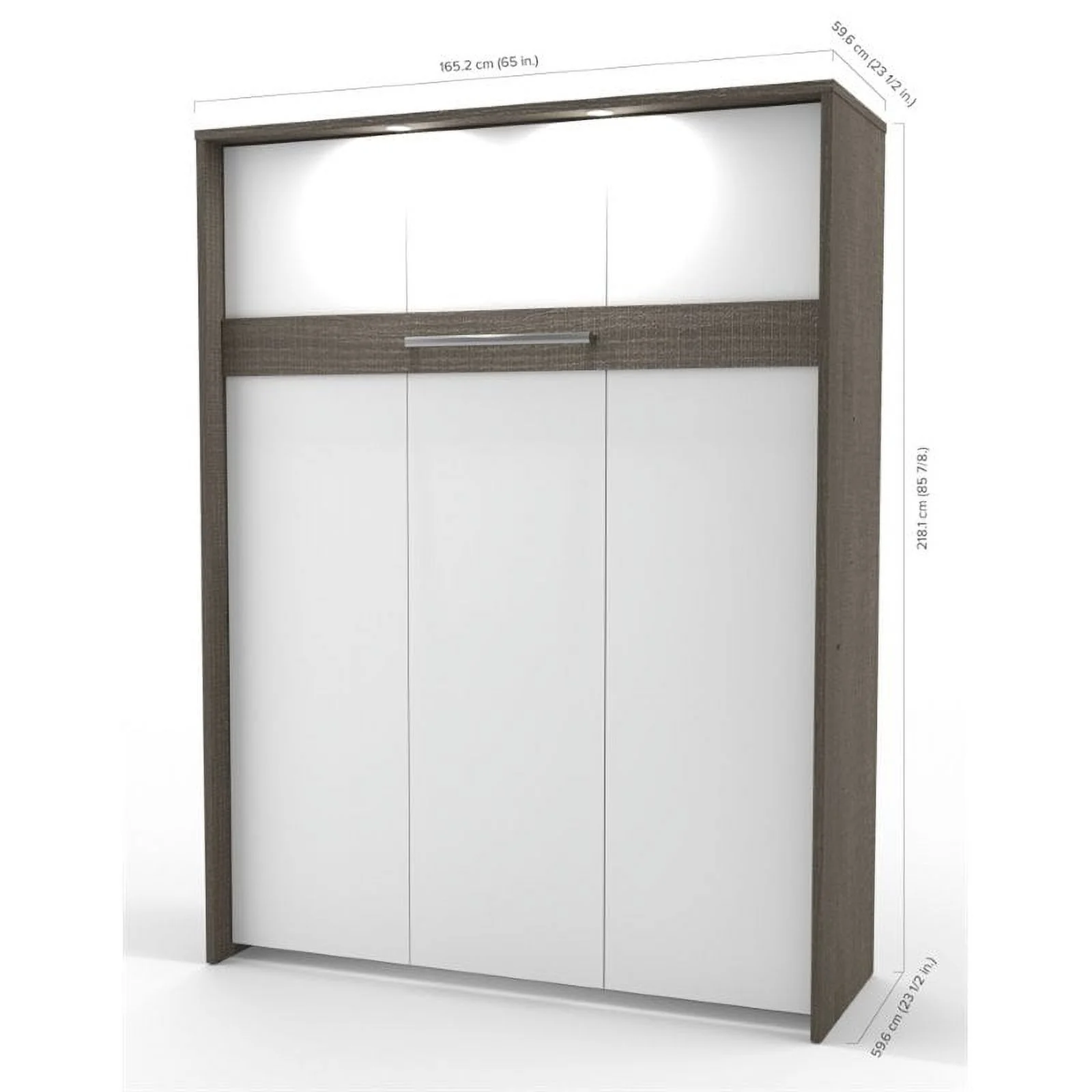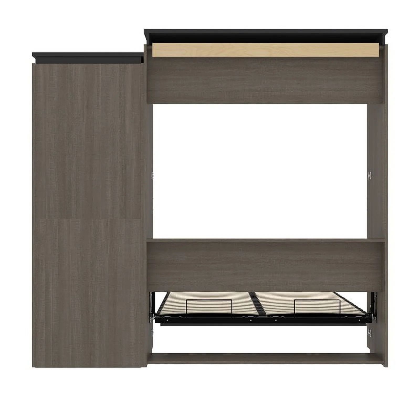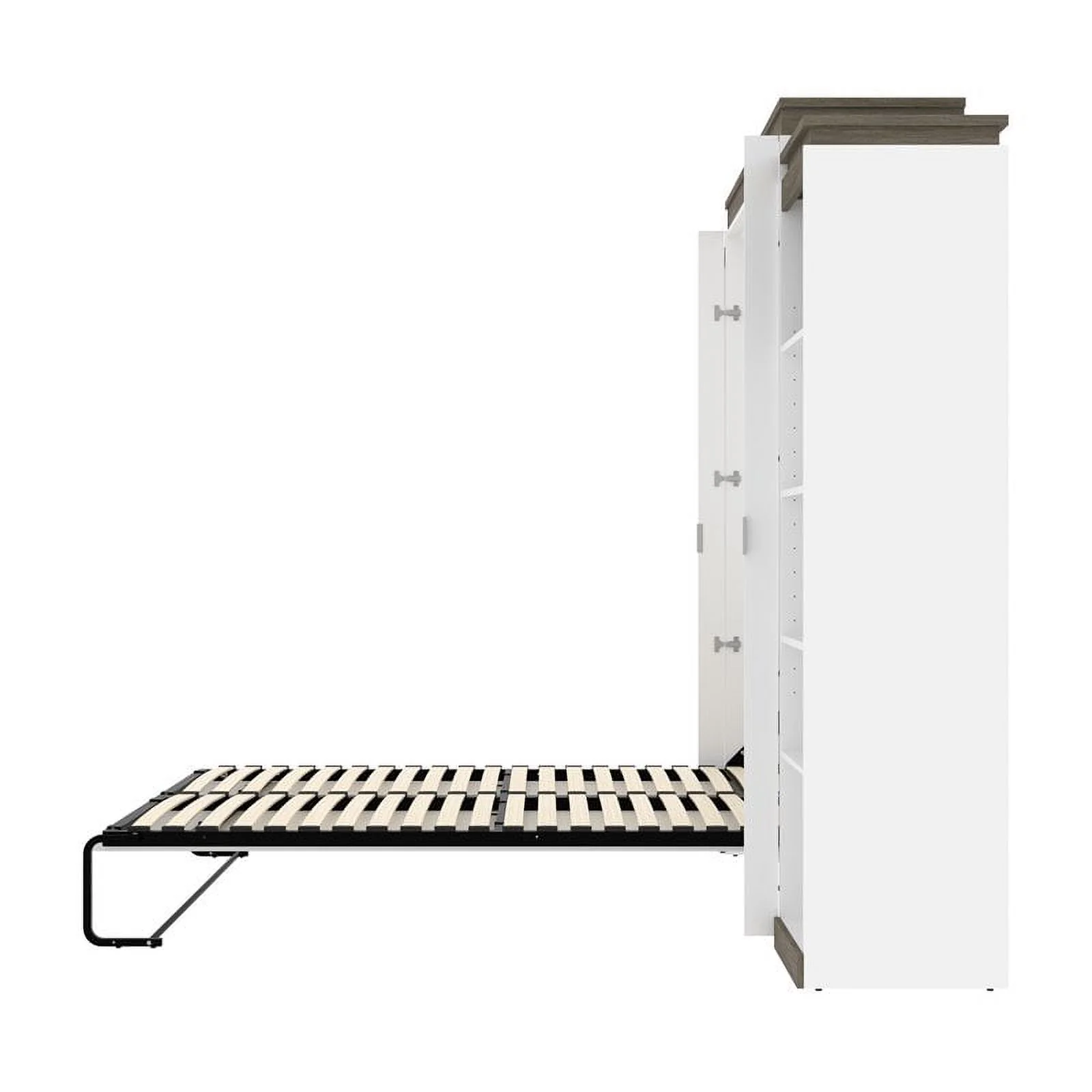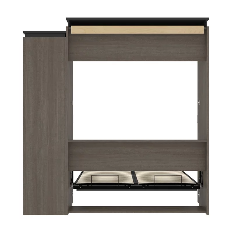Atlin Designs Wood Full Murphy Bed with Narrow Storage in Bark Gray/White