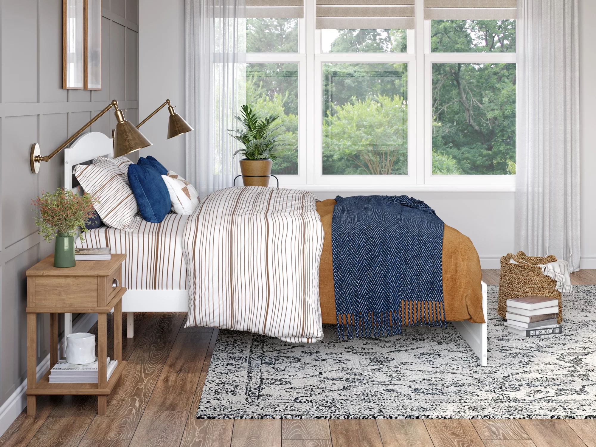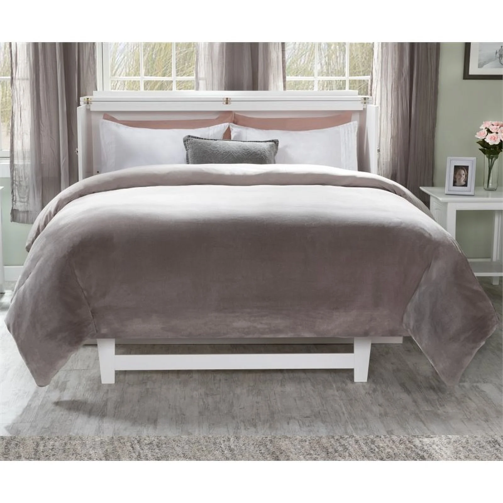 Atlin Designs Wood Queen Murphy Bed with Nightstands in Bark Gray/White