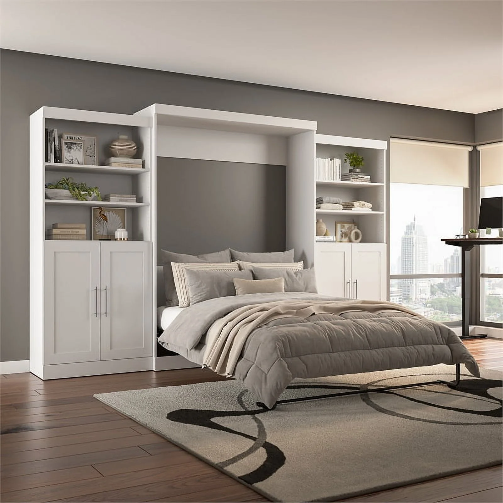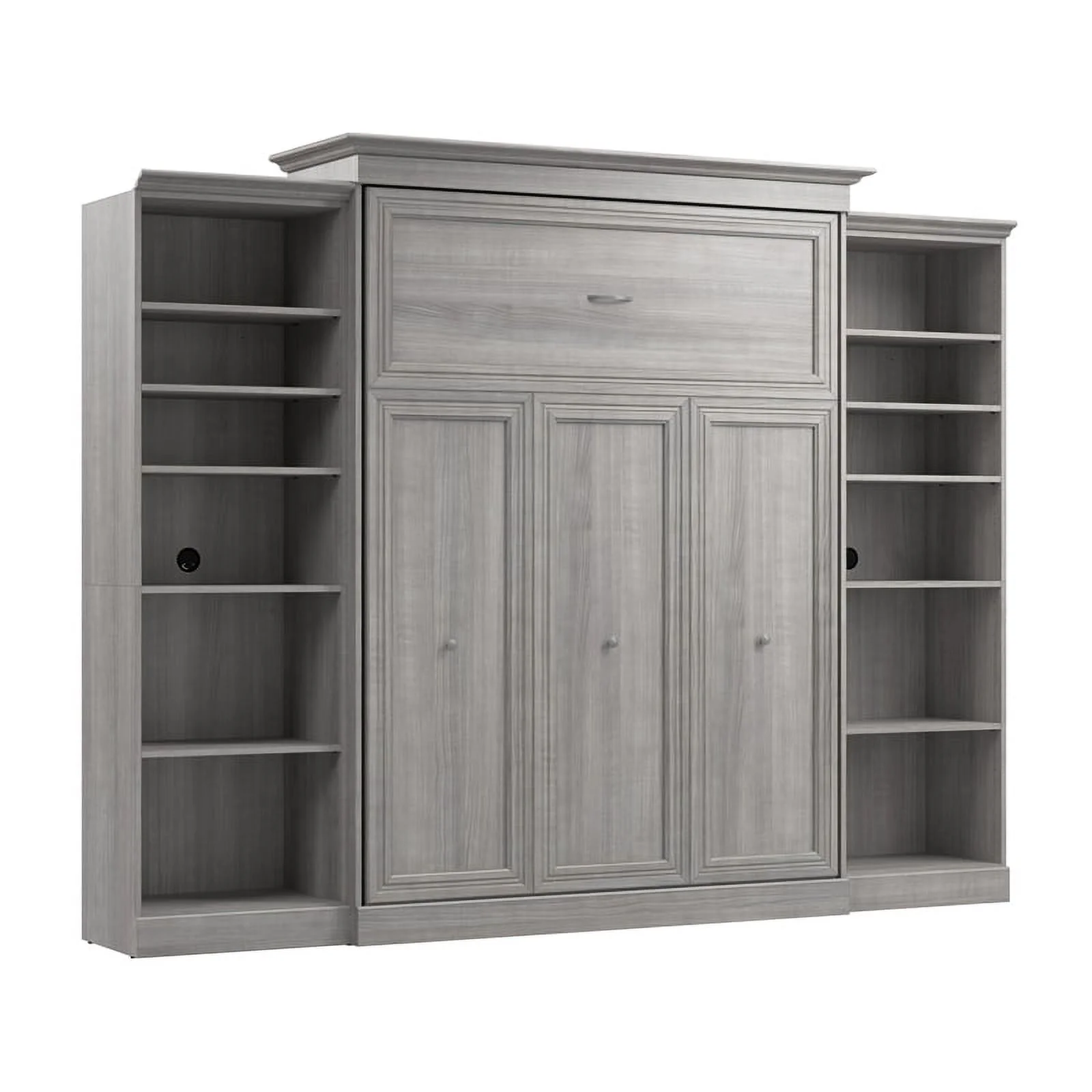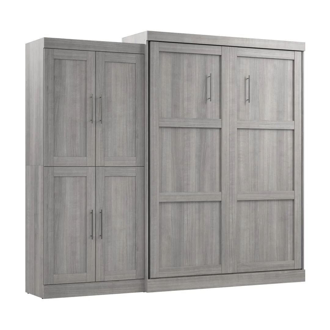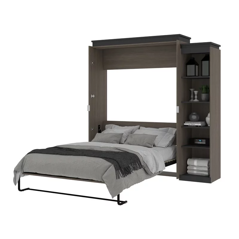 Bestar Versatile Engineered Wood Queen Murphy Bed and 2 Organizers in Gray