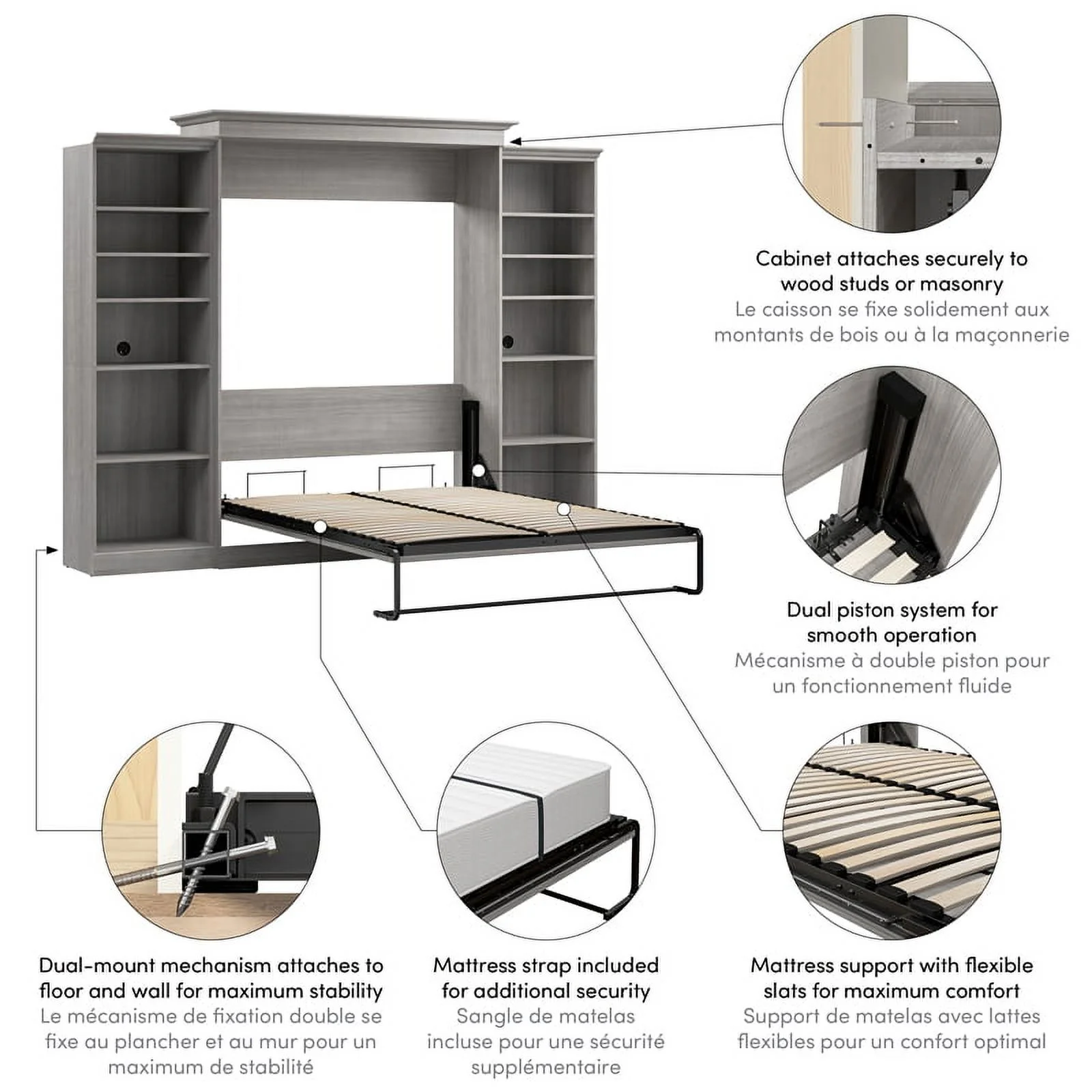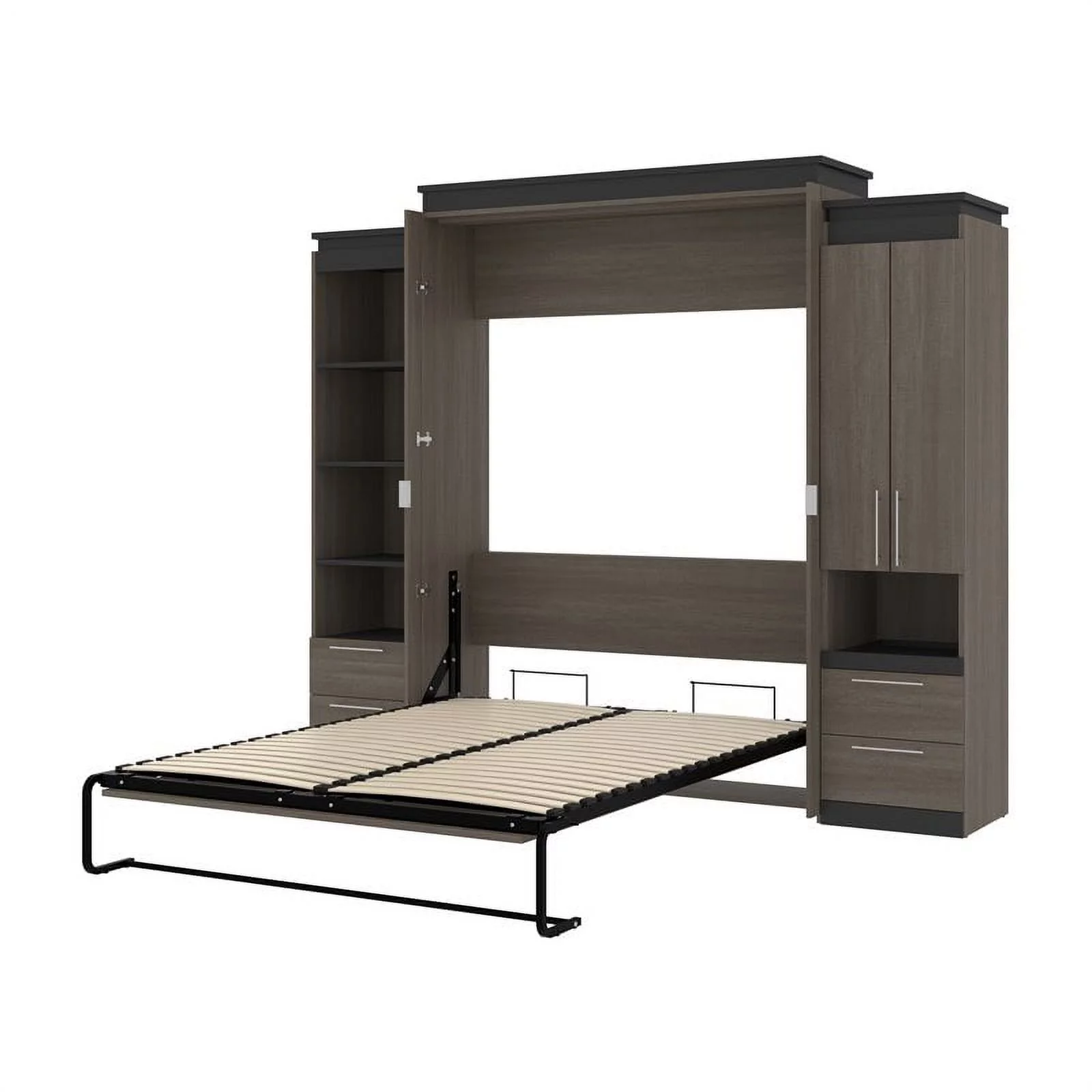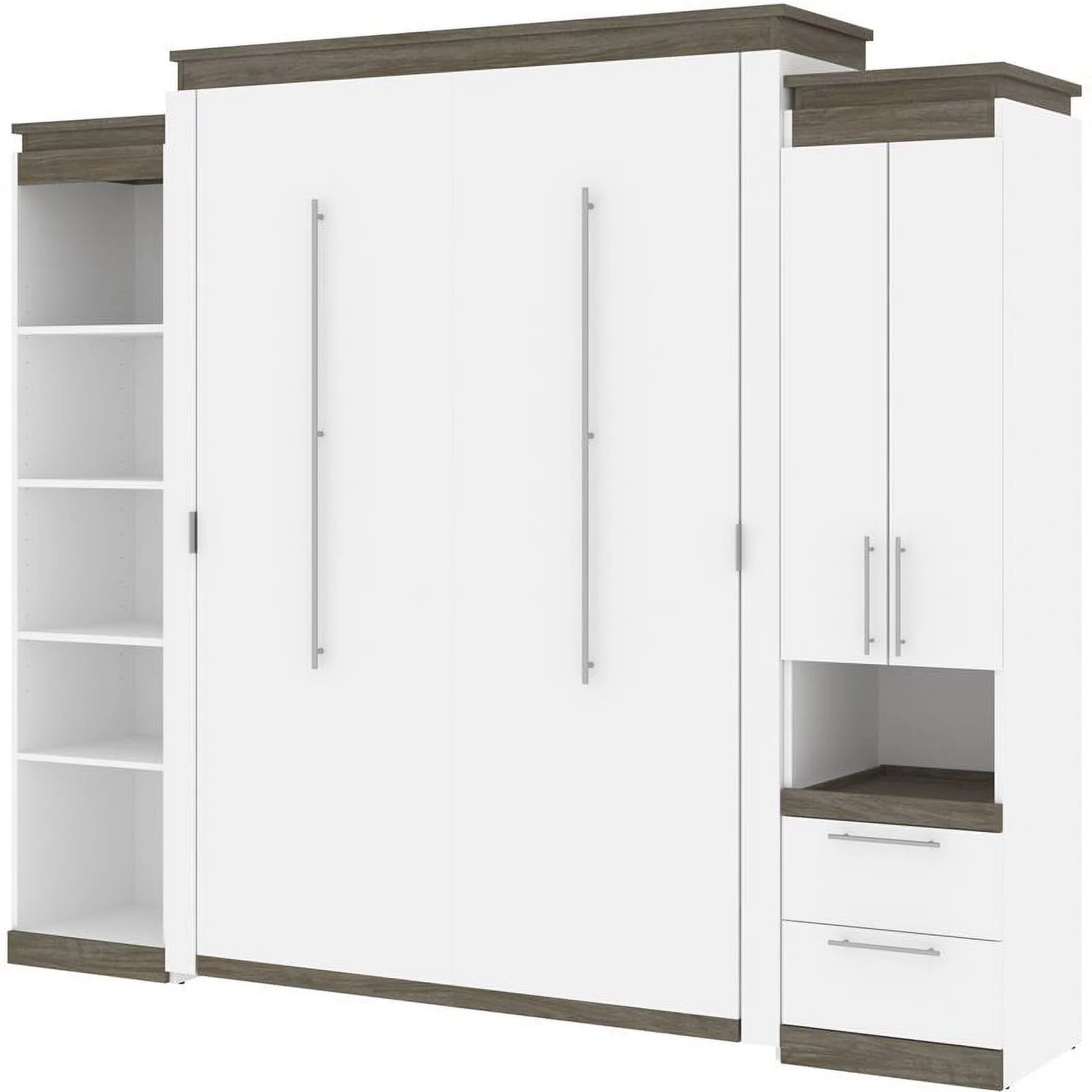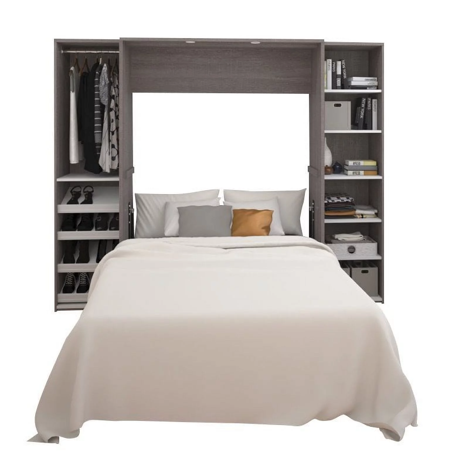 Bestar Versatile Engineered Wood Queen Murphy Bed and 2 Organizers in Gray