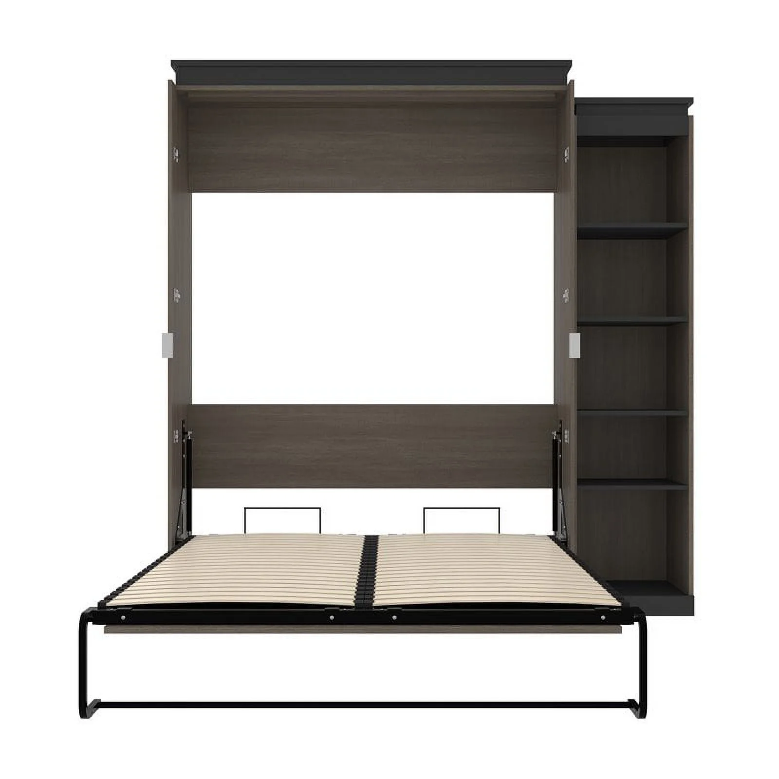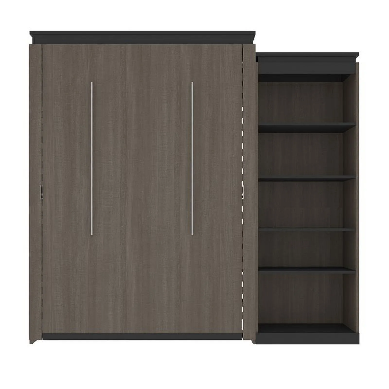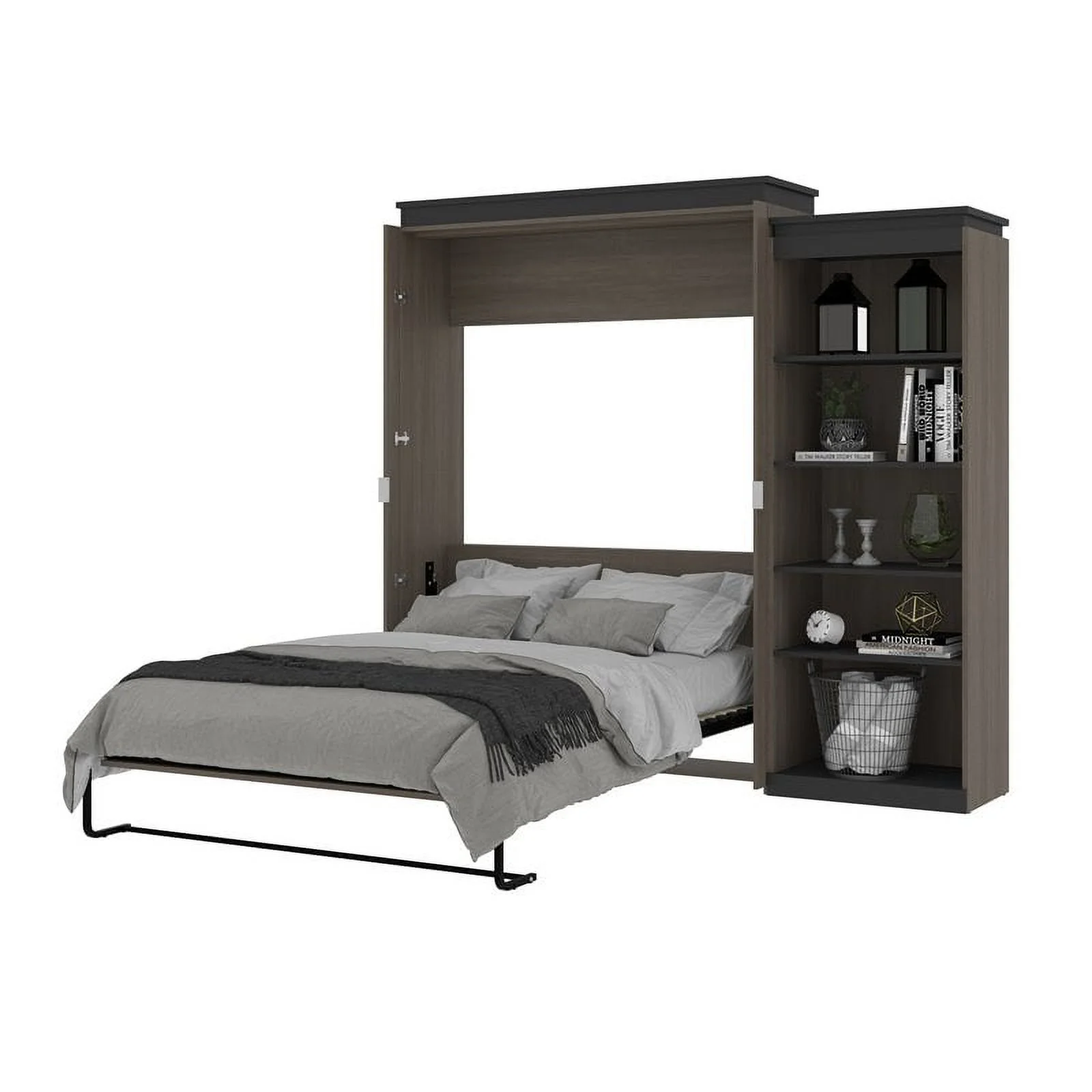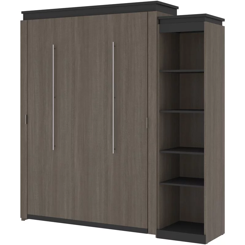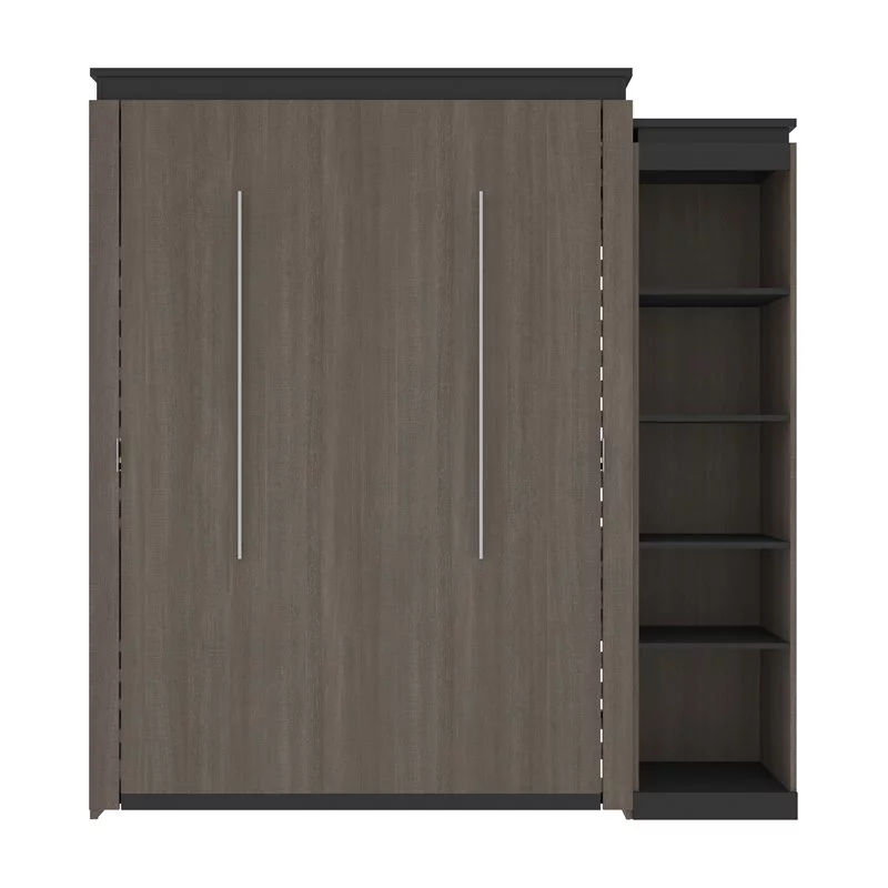 Atlin Designs 85" Queen Murphy Bed with Narrow Bookcase in Bark Gray