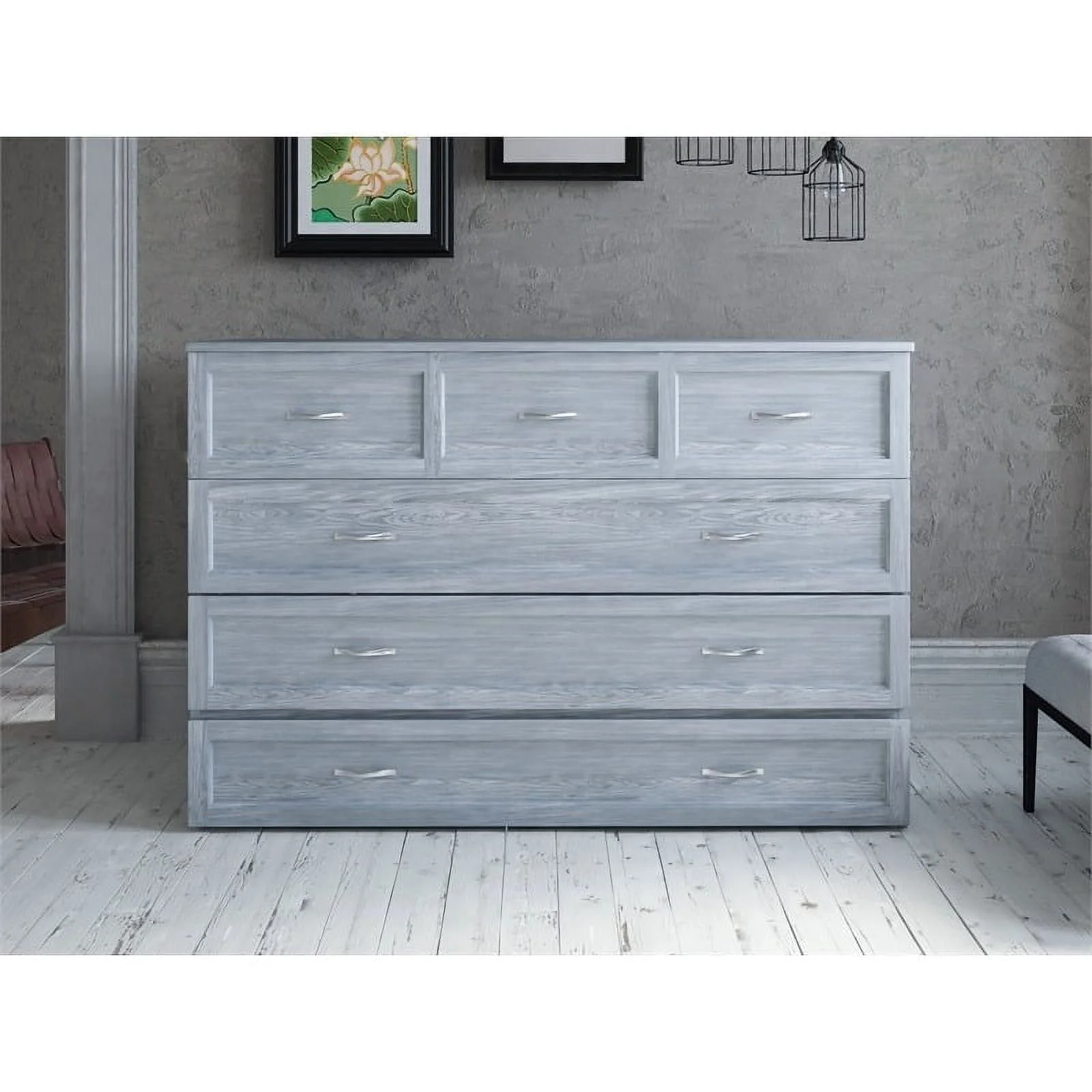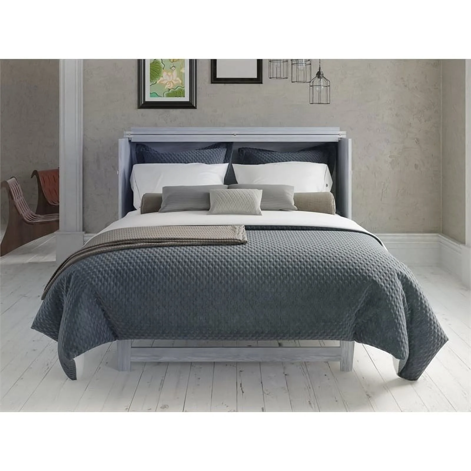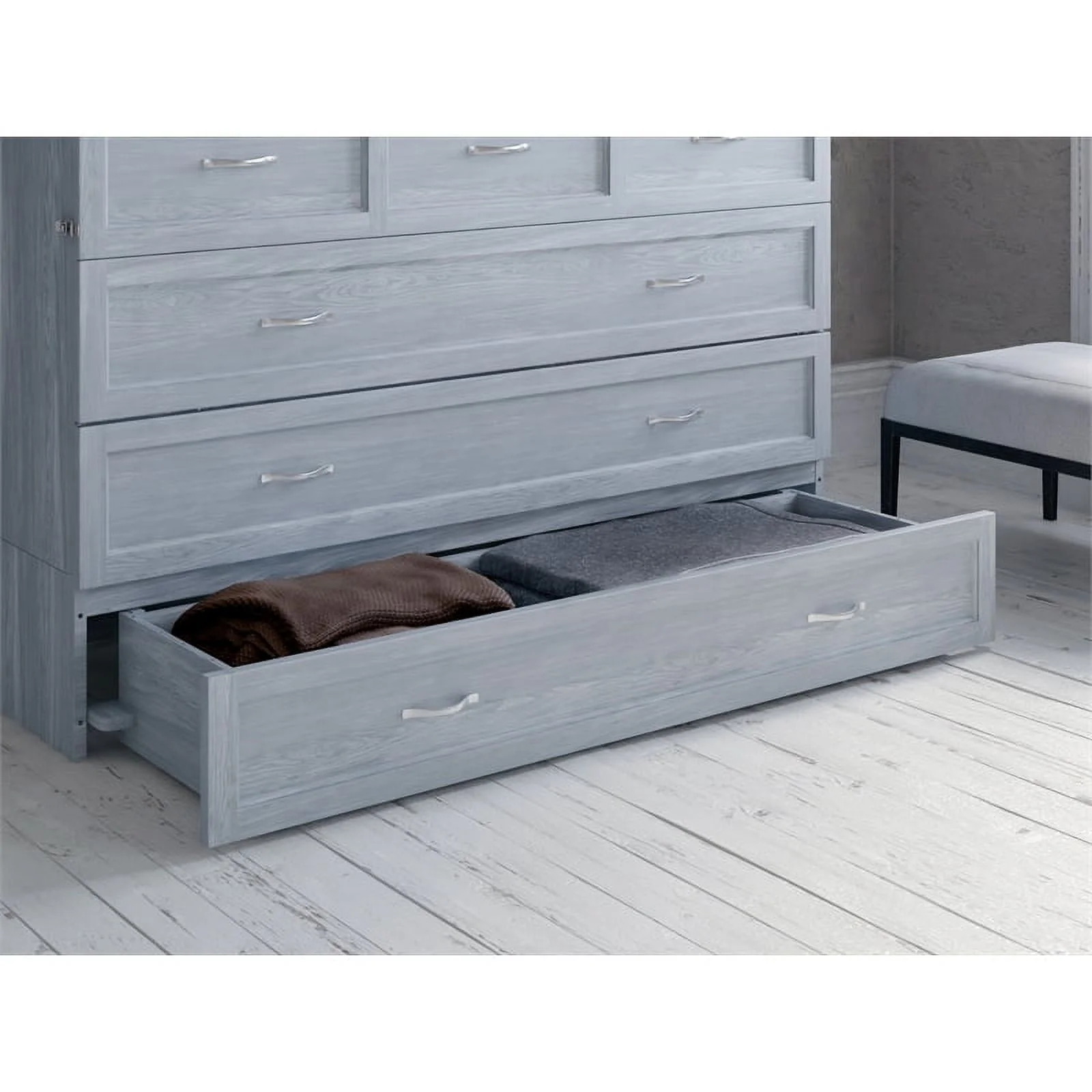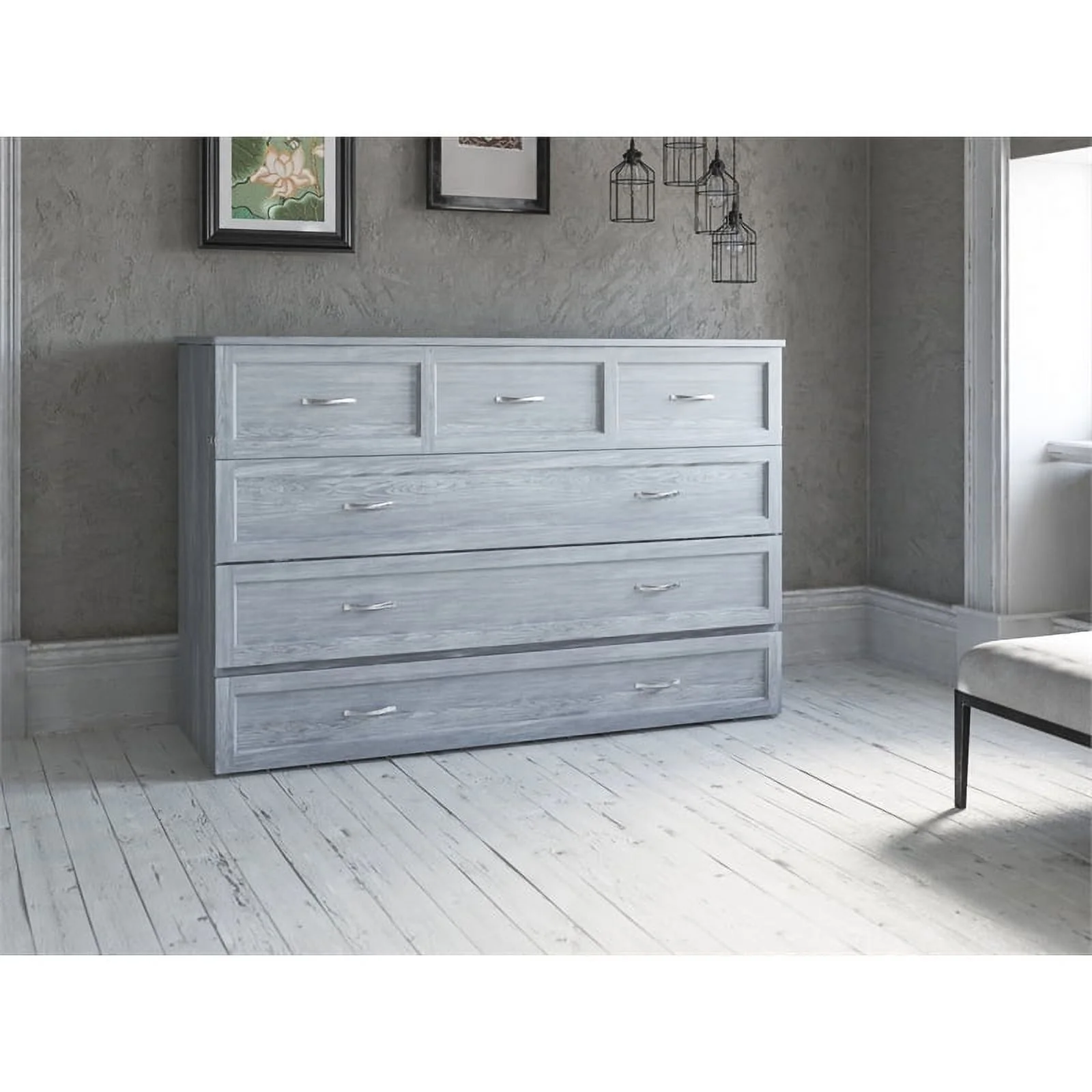 Atlin Designs Modern Solid Wood Murphy Bed Chest with Mattress in Driftwood