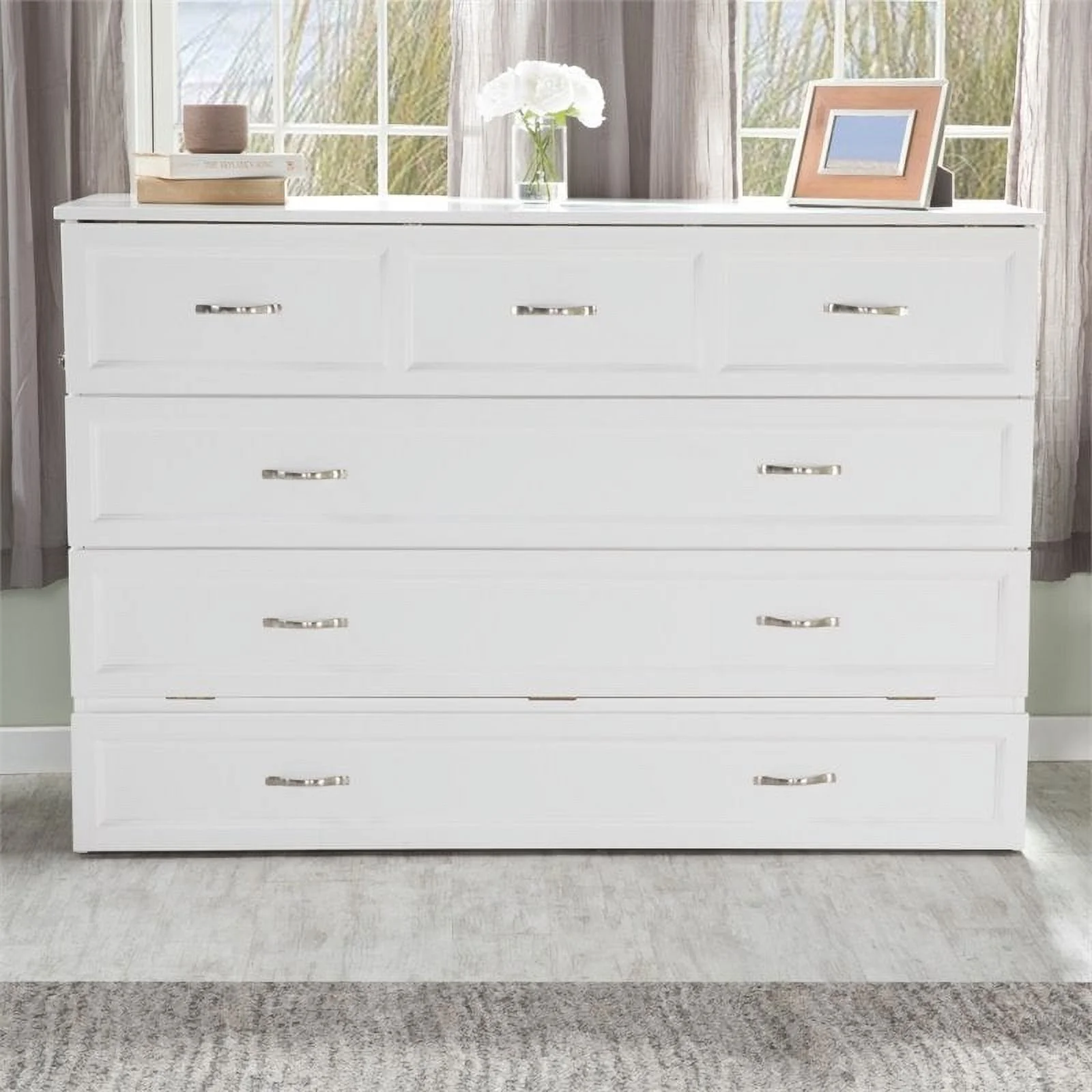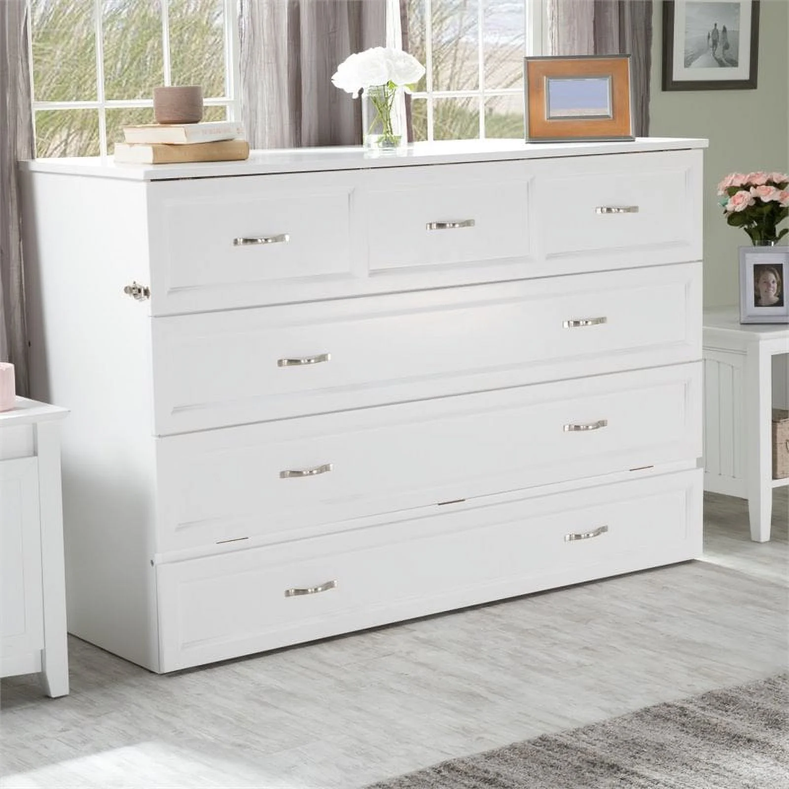Atlin Designs Queen Traditional Wood Murphy Bed Chest Bed with Mattress in White