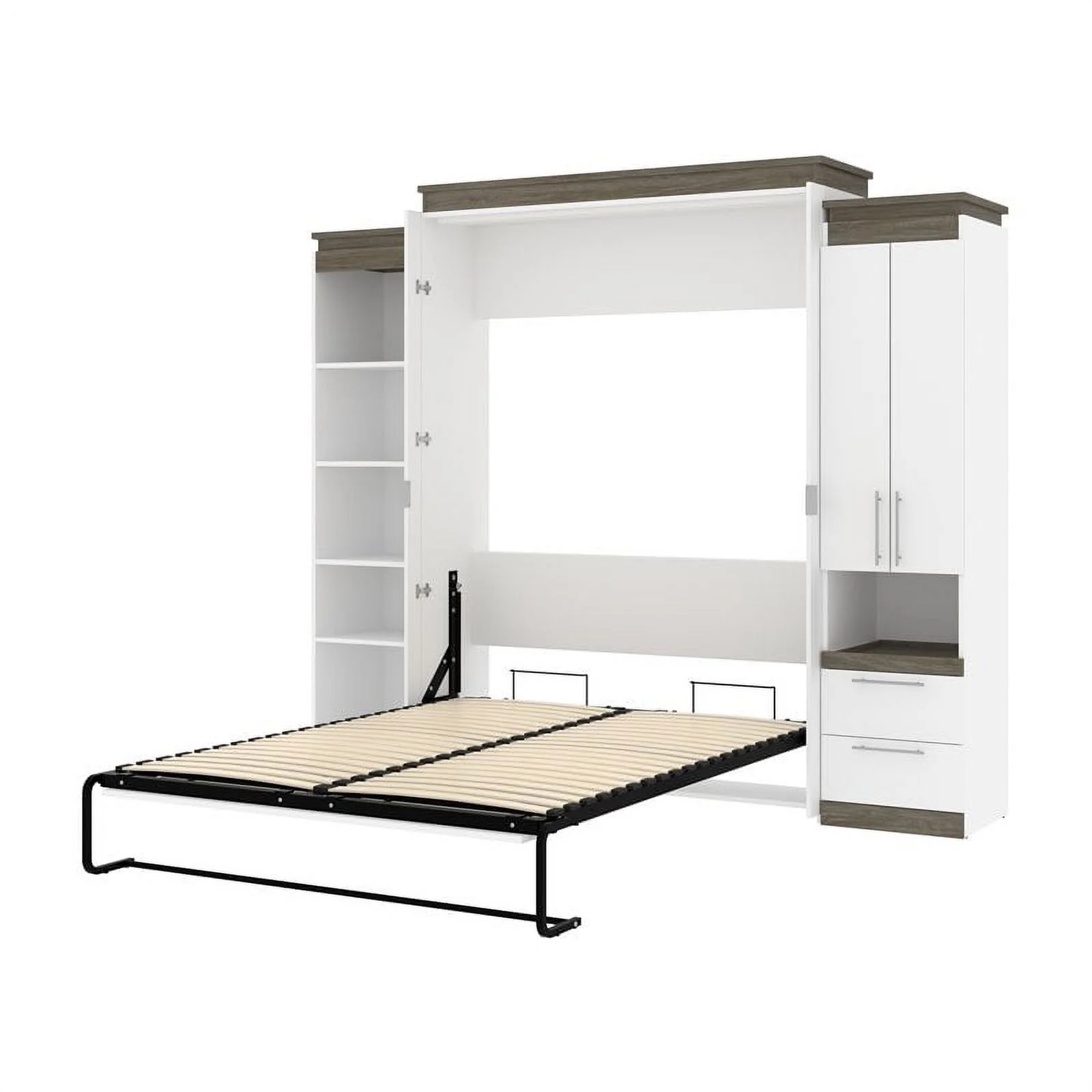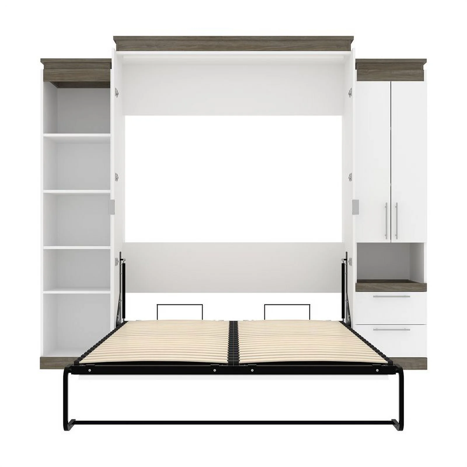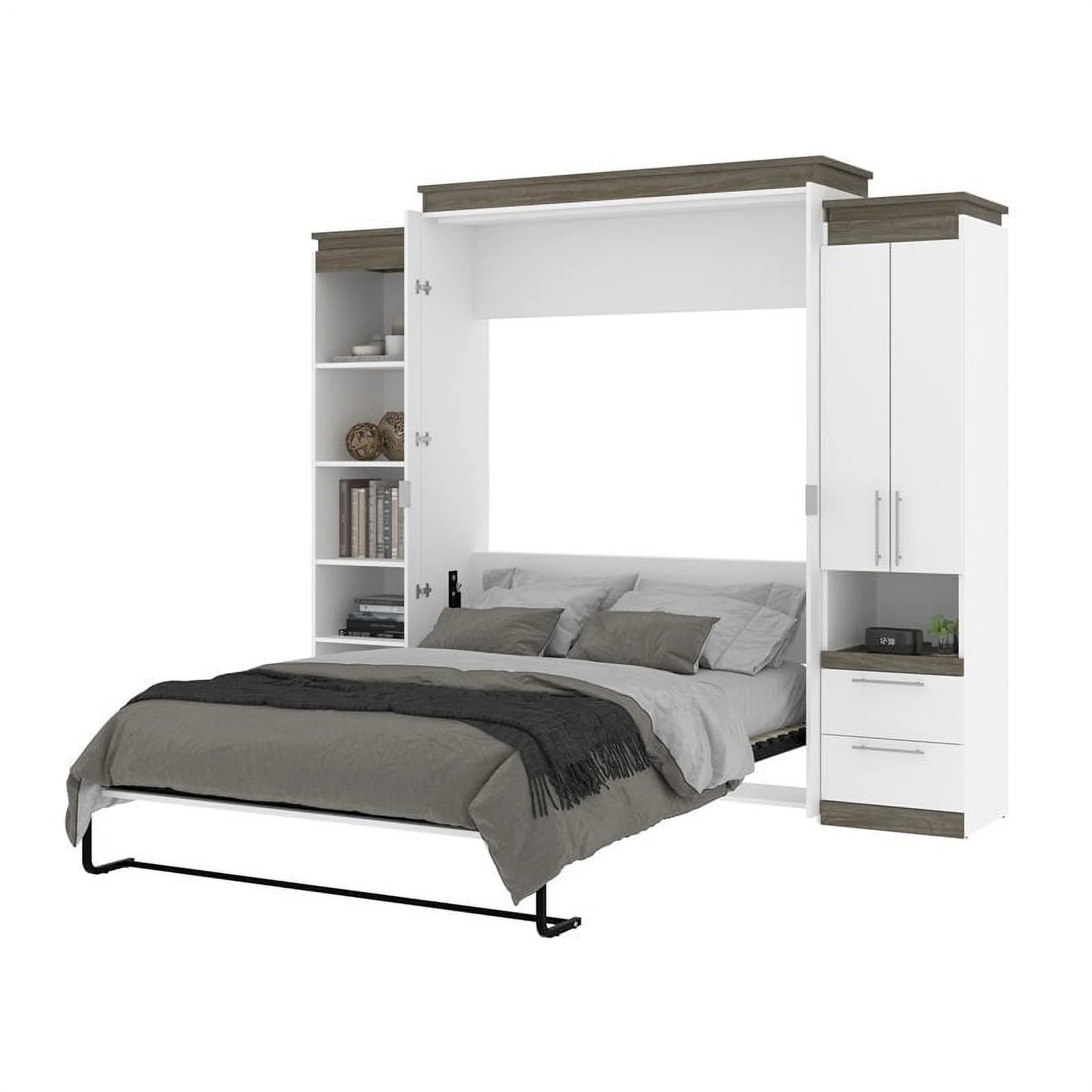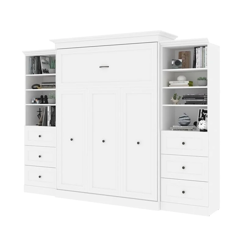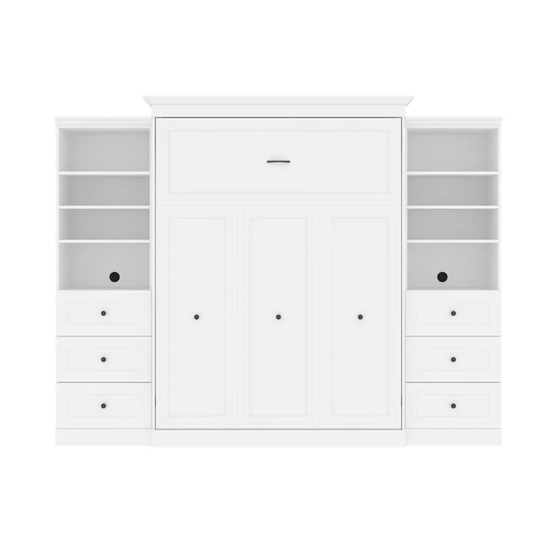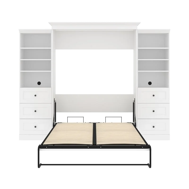 Atlin Designs Wood Queen Murphy Bed and 2 Organizers with Drawers in White