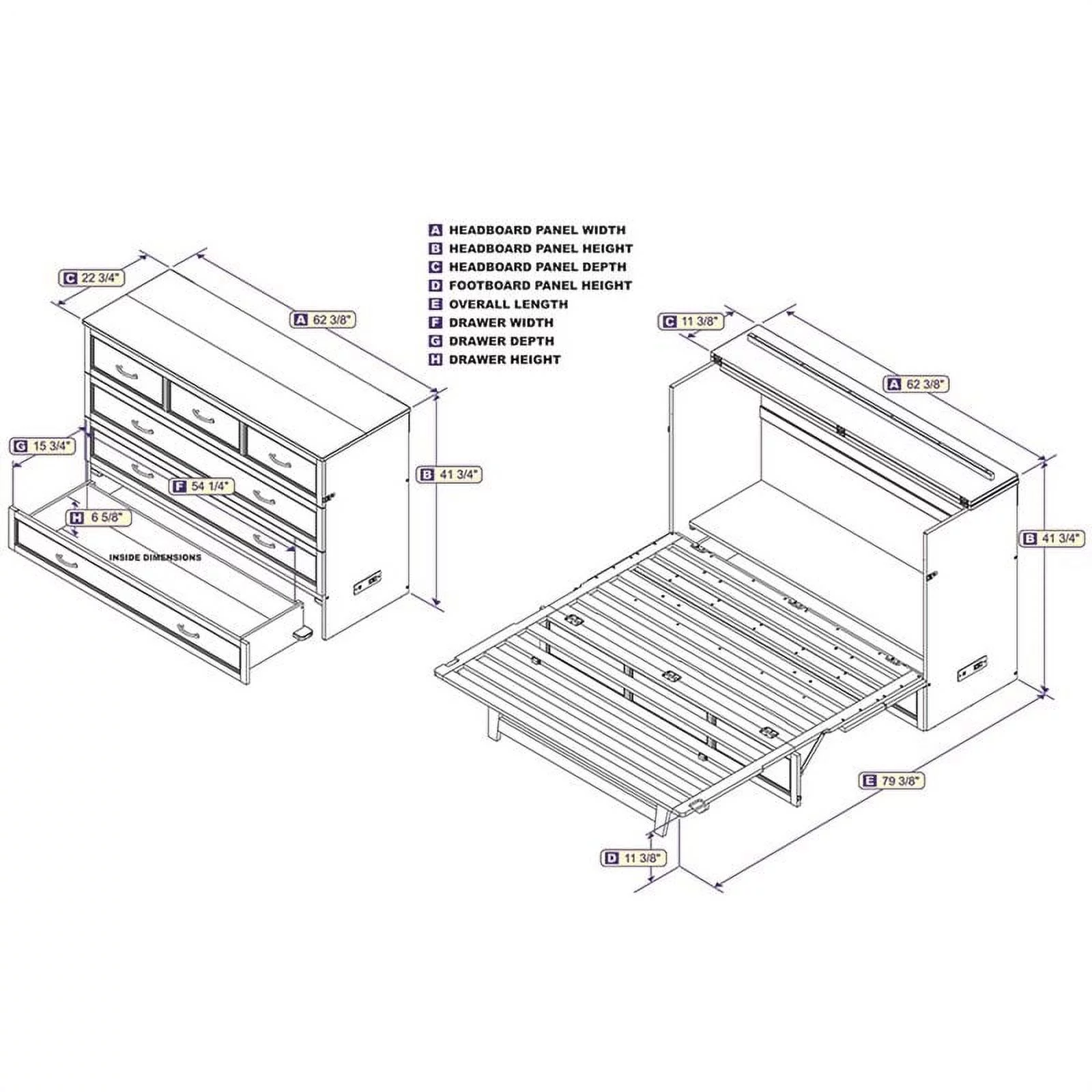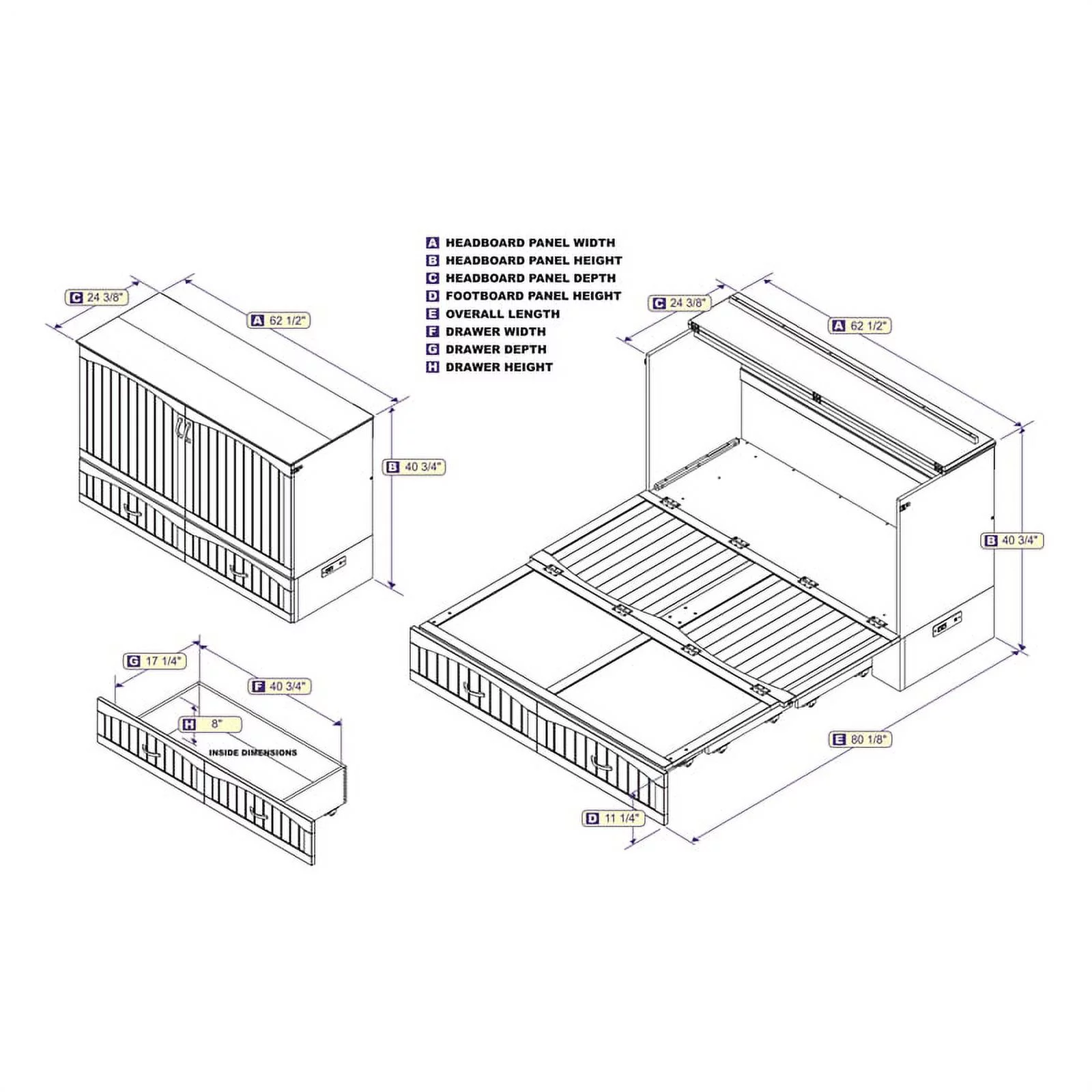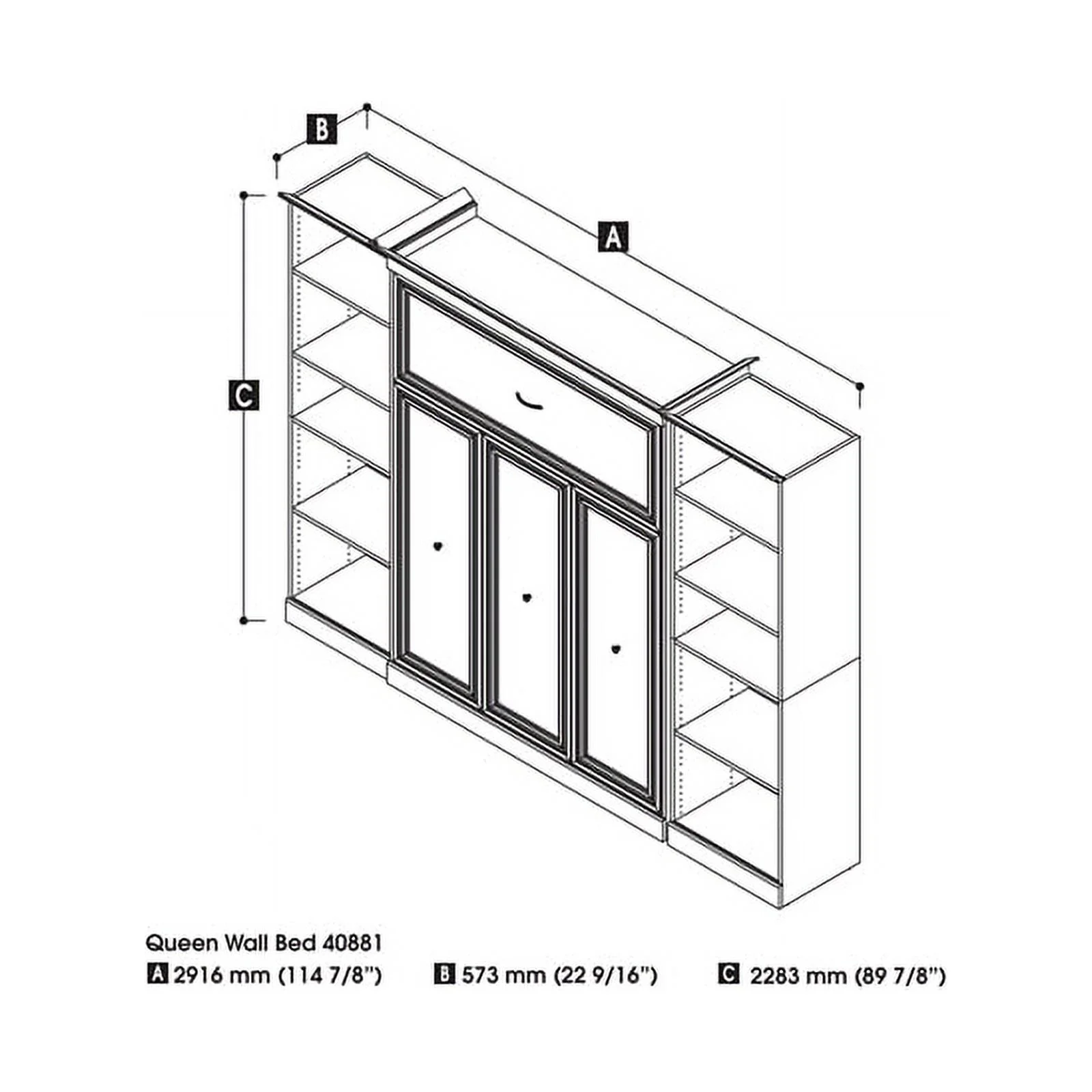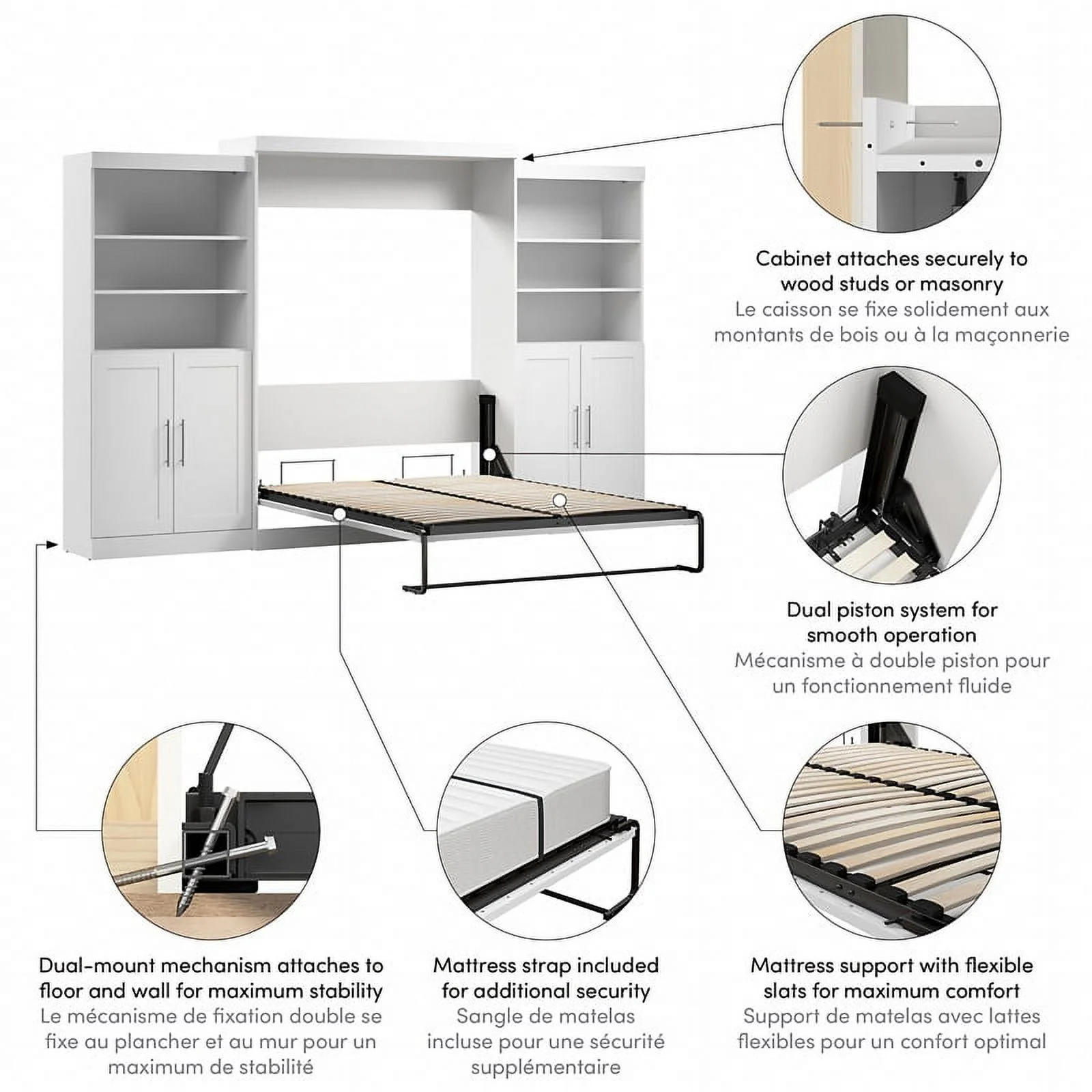 Atlin Designs Wood Queen Murphy Bed and 2 Organizers with Drawers in White