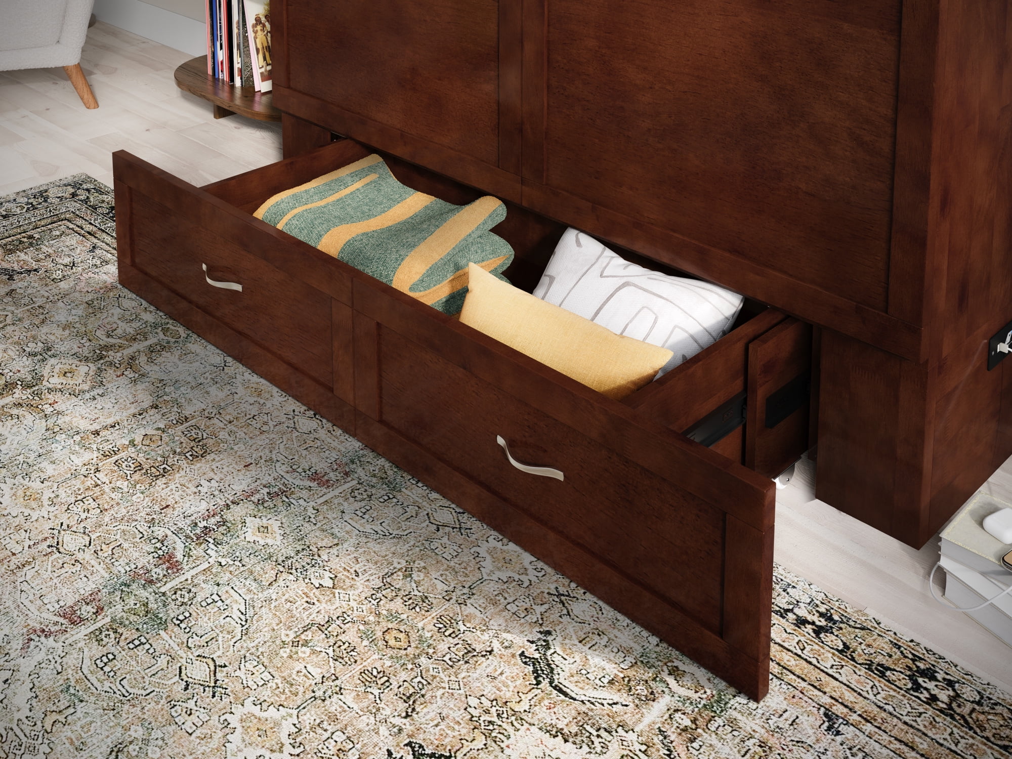 Southampton Murphy Bed Chest Twin Extra Long Walnut with Charging Station