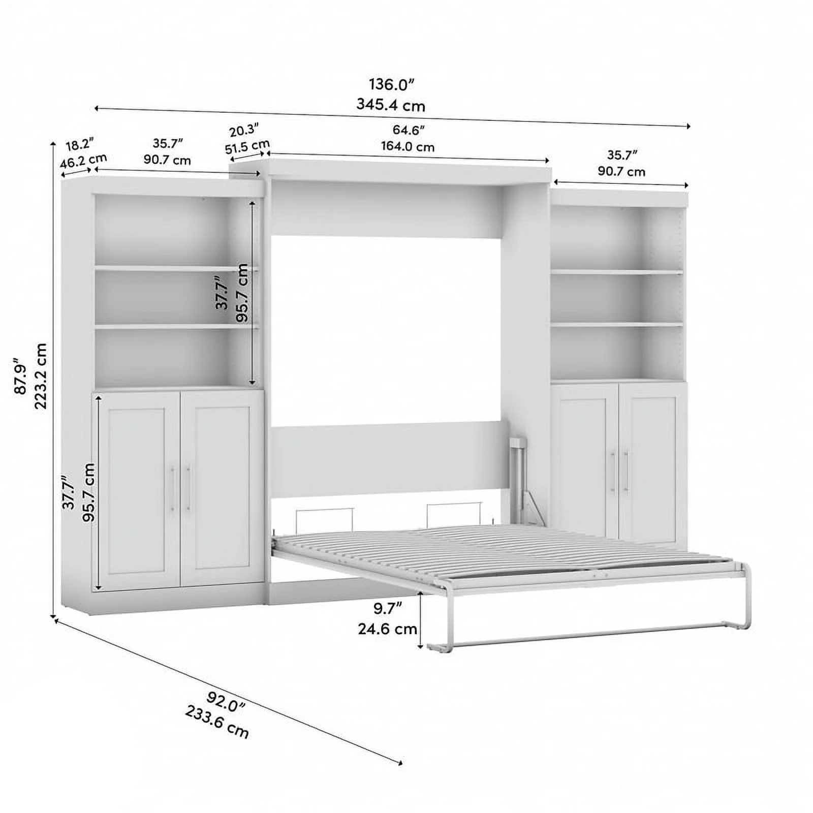 Bestar Pur 136" Engineered Wood Queen Murphy Bed with Wardrobes in White
