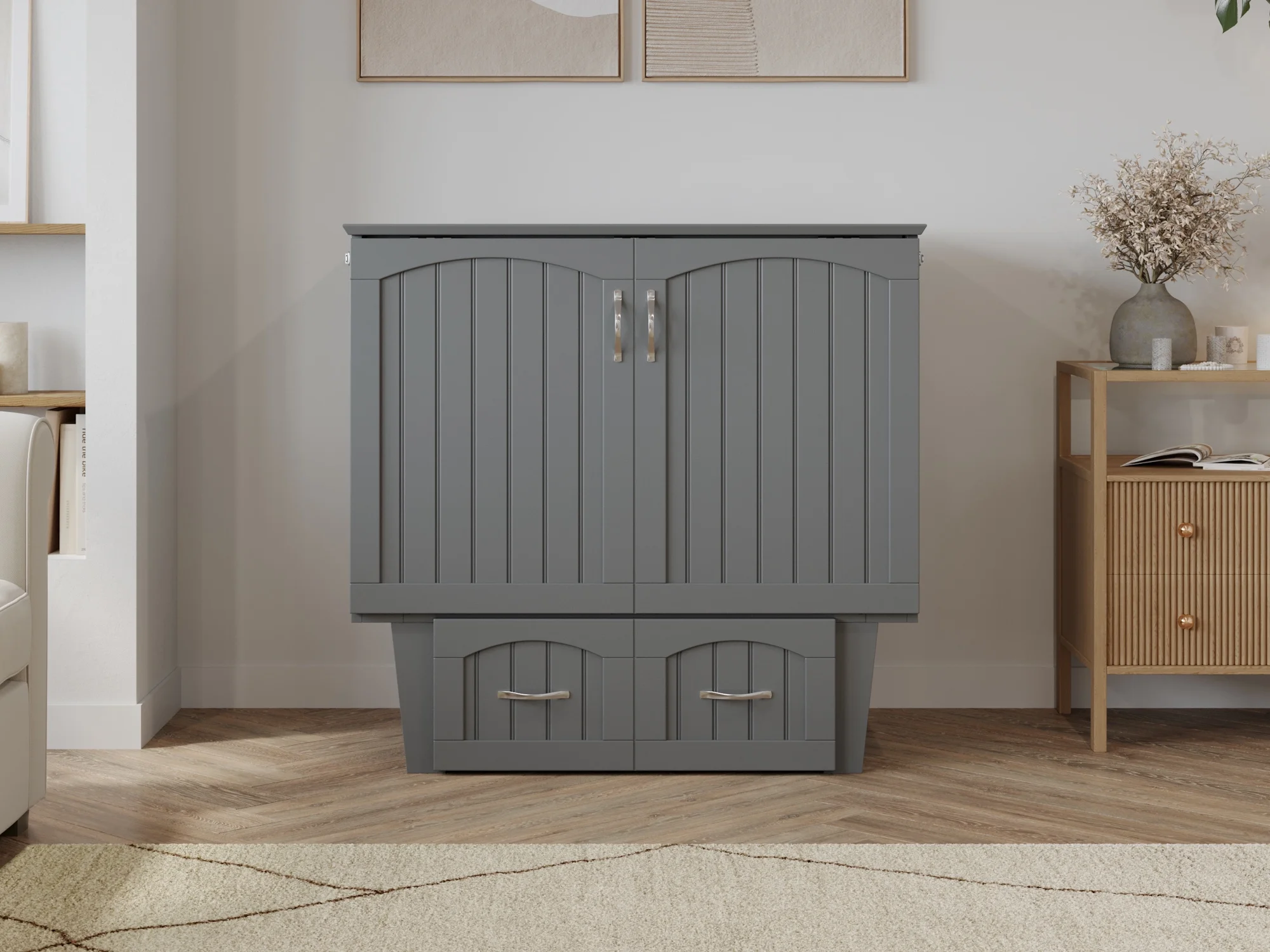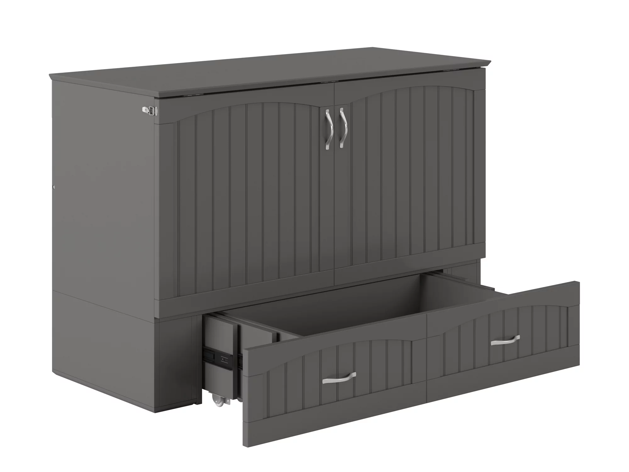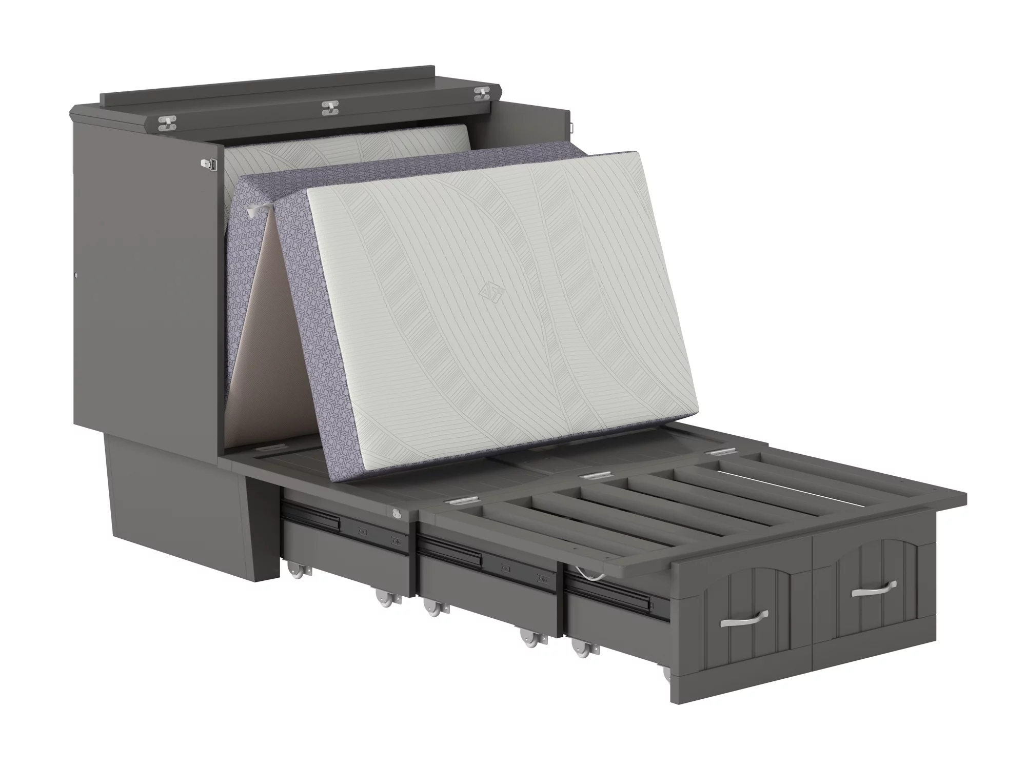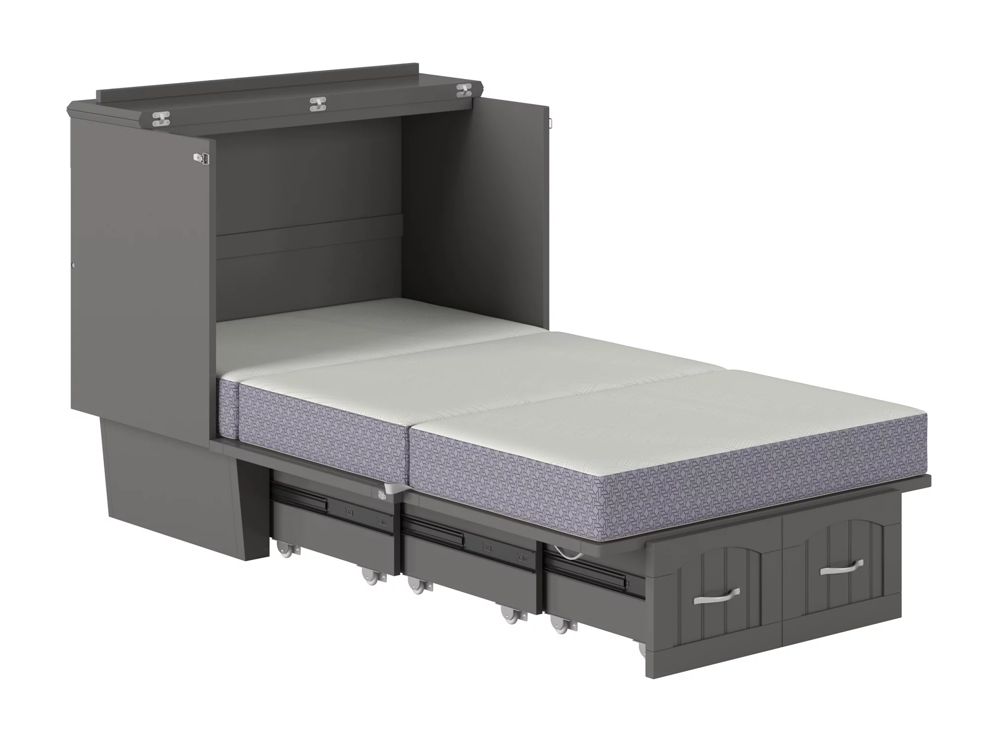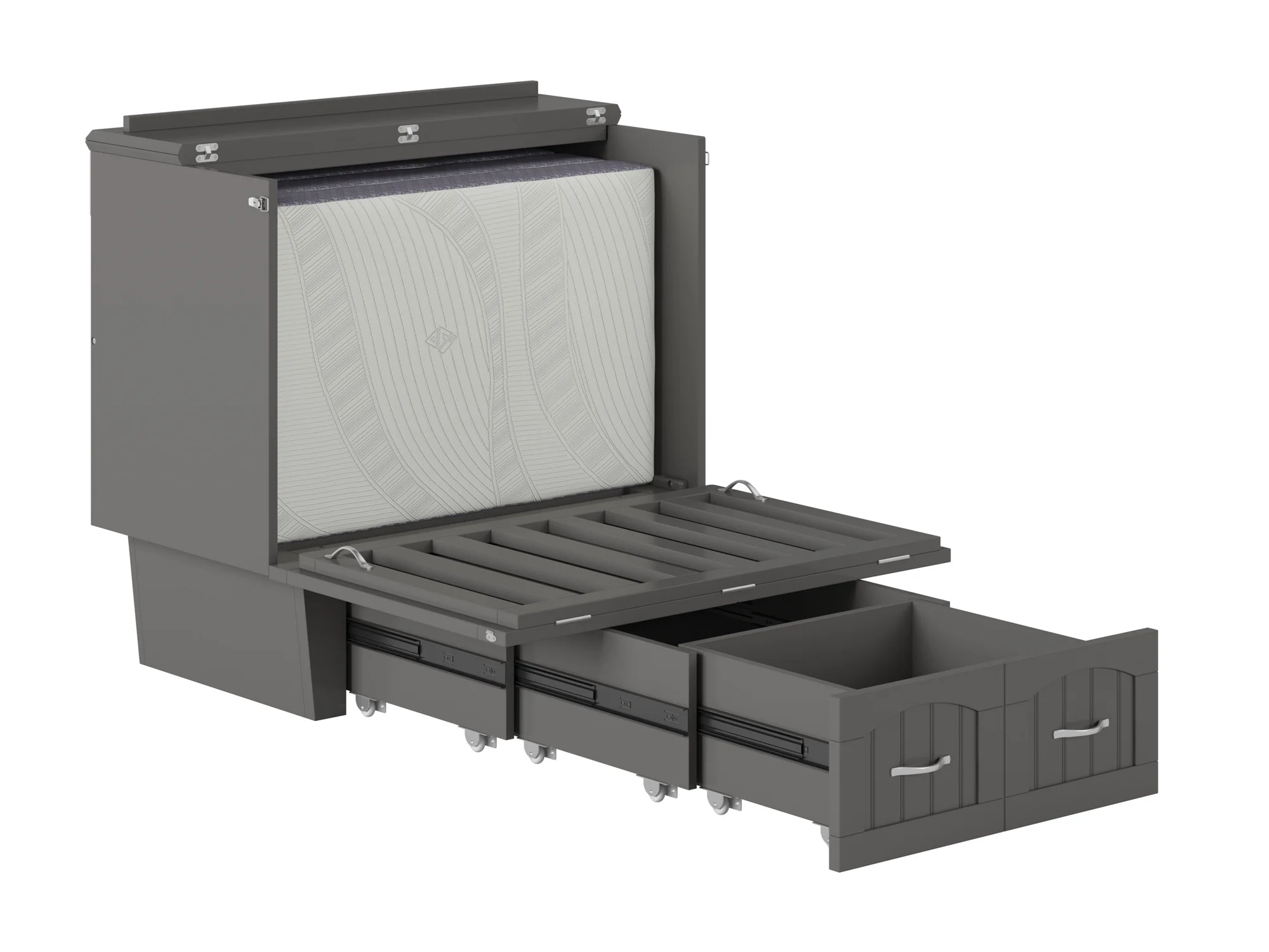 Nantucket Murphy Bed Chest Twin Grey with Charging Station & Cool Soft Mattress