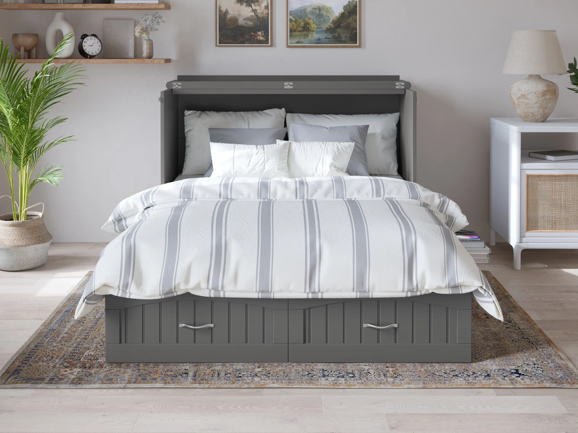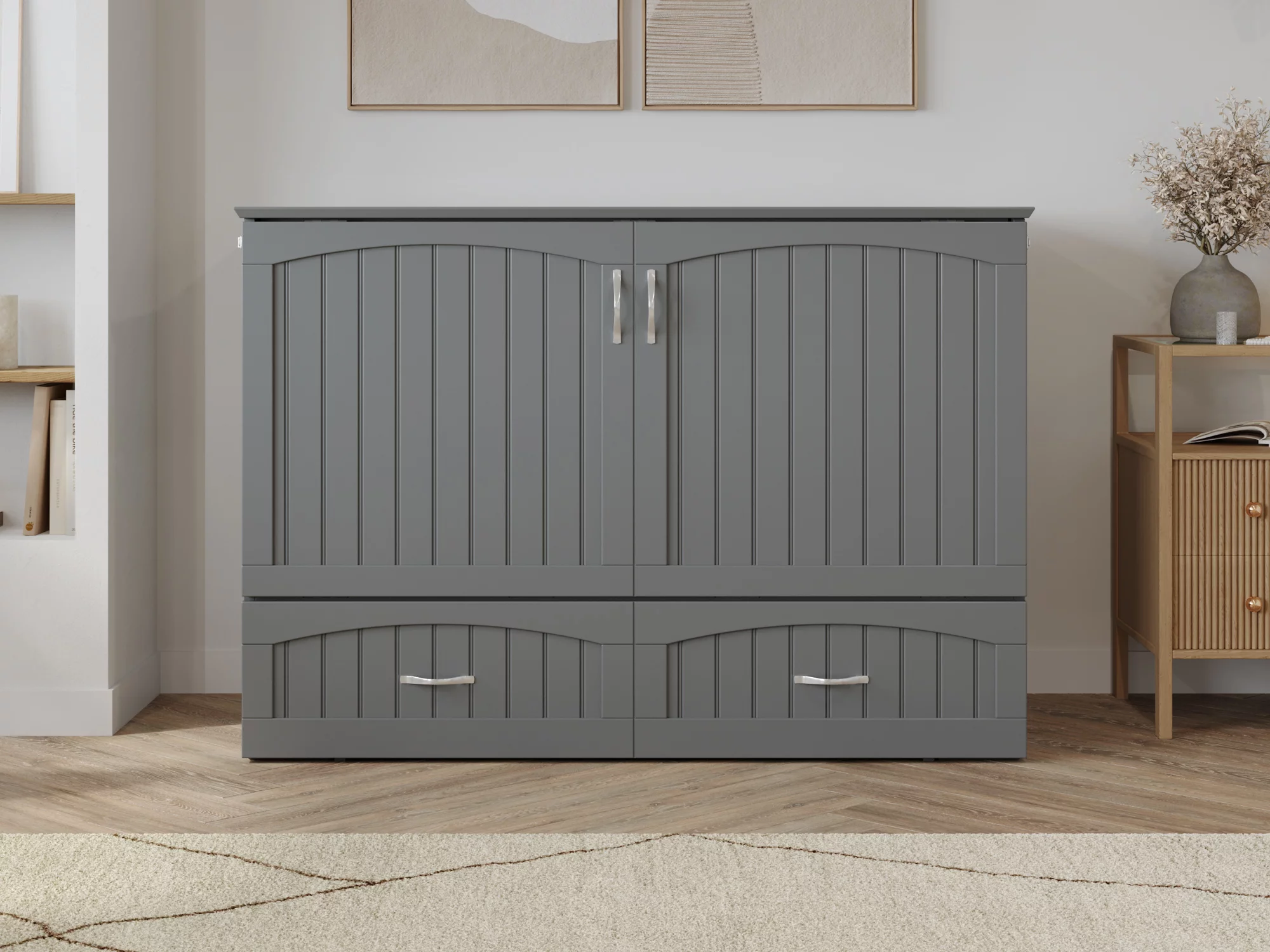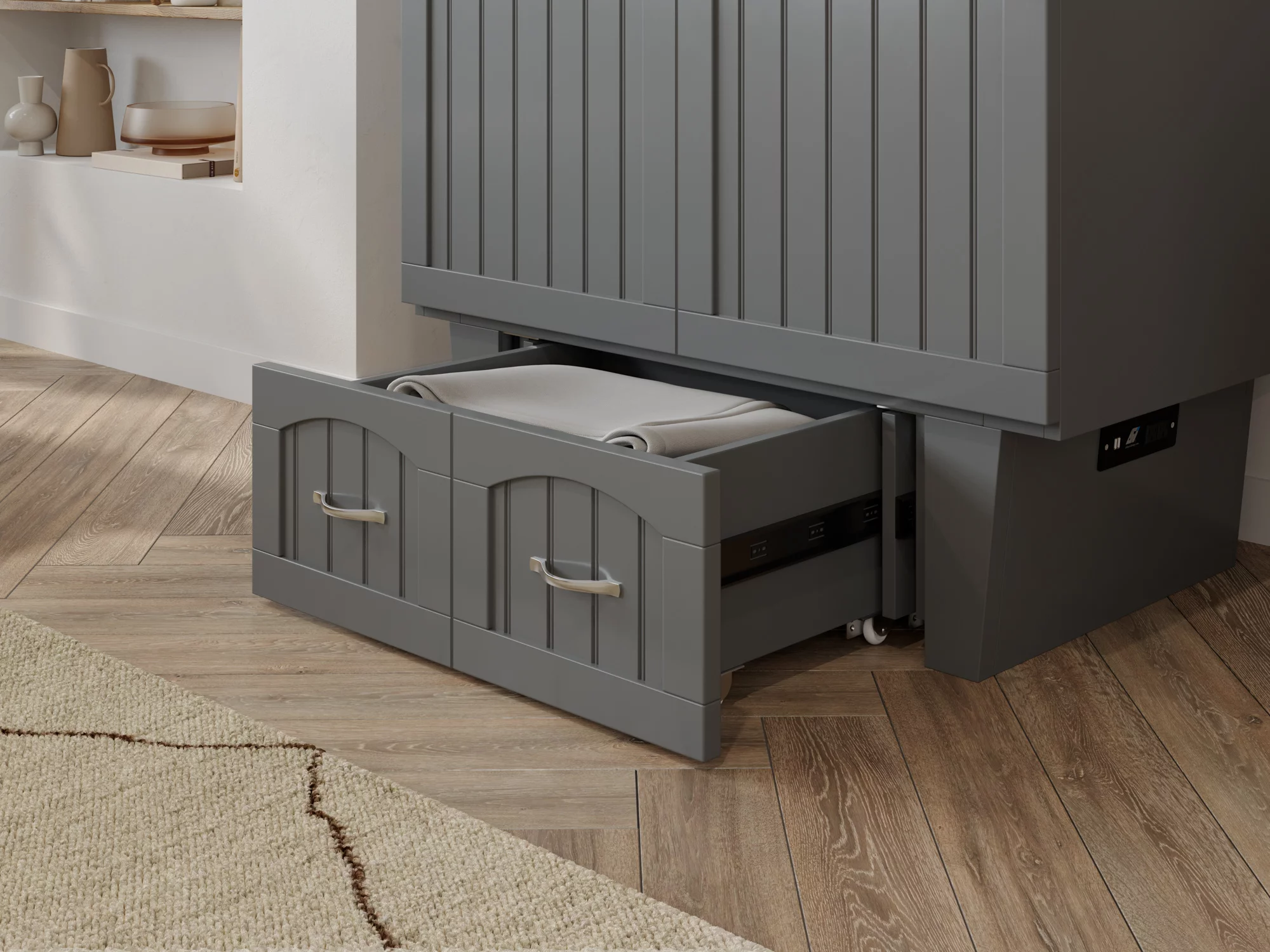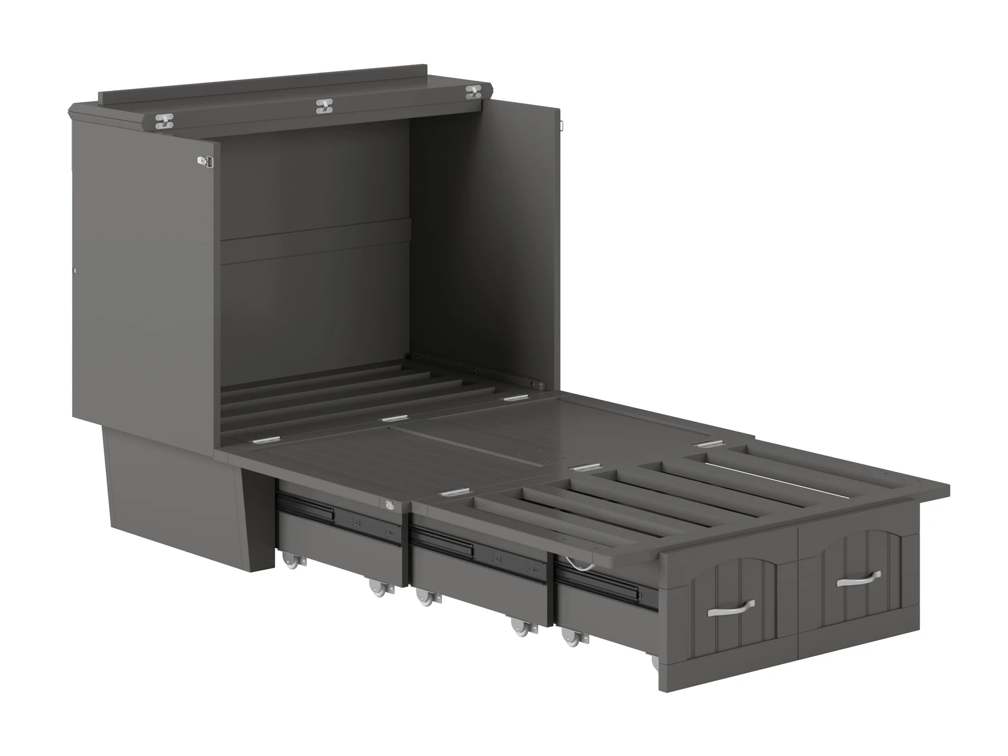 Nantucket Murphy Bed Chest Twin Grey with Charging Station & Cool Soft Mattress