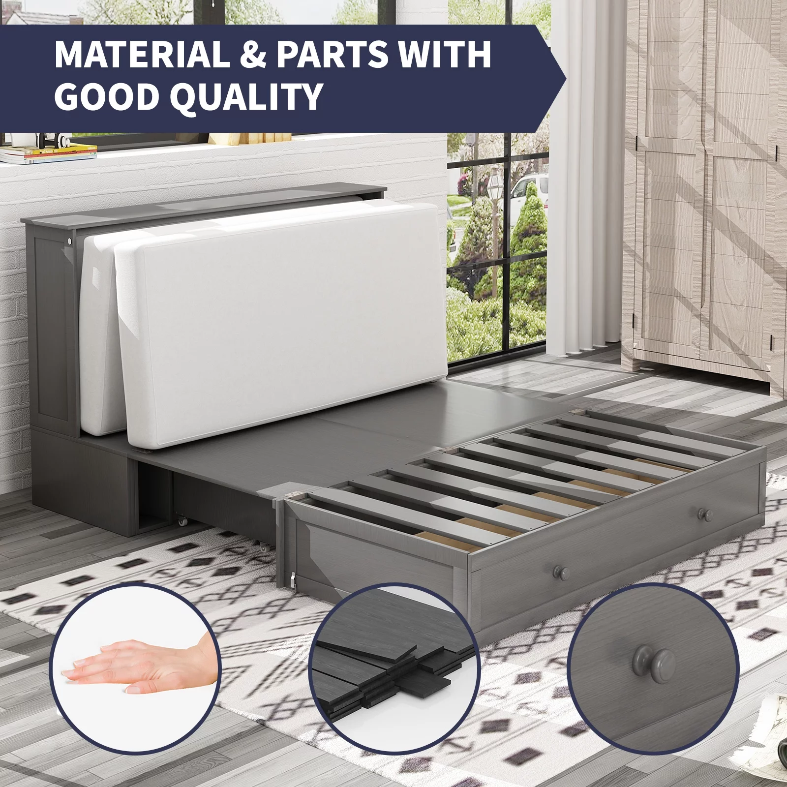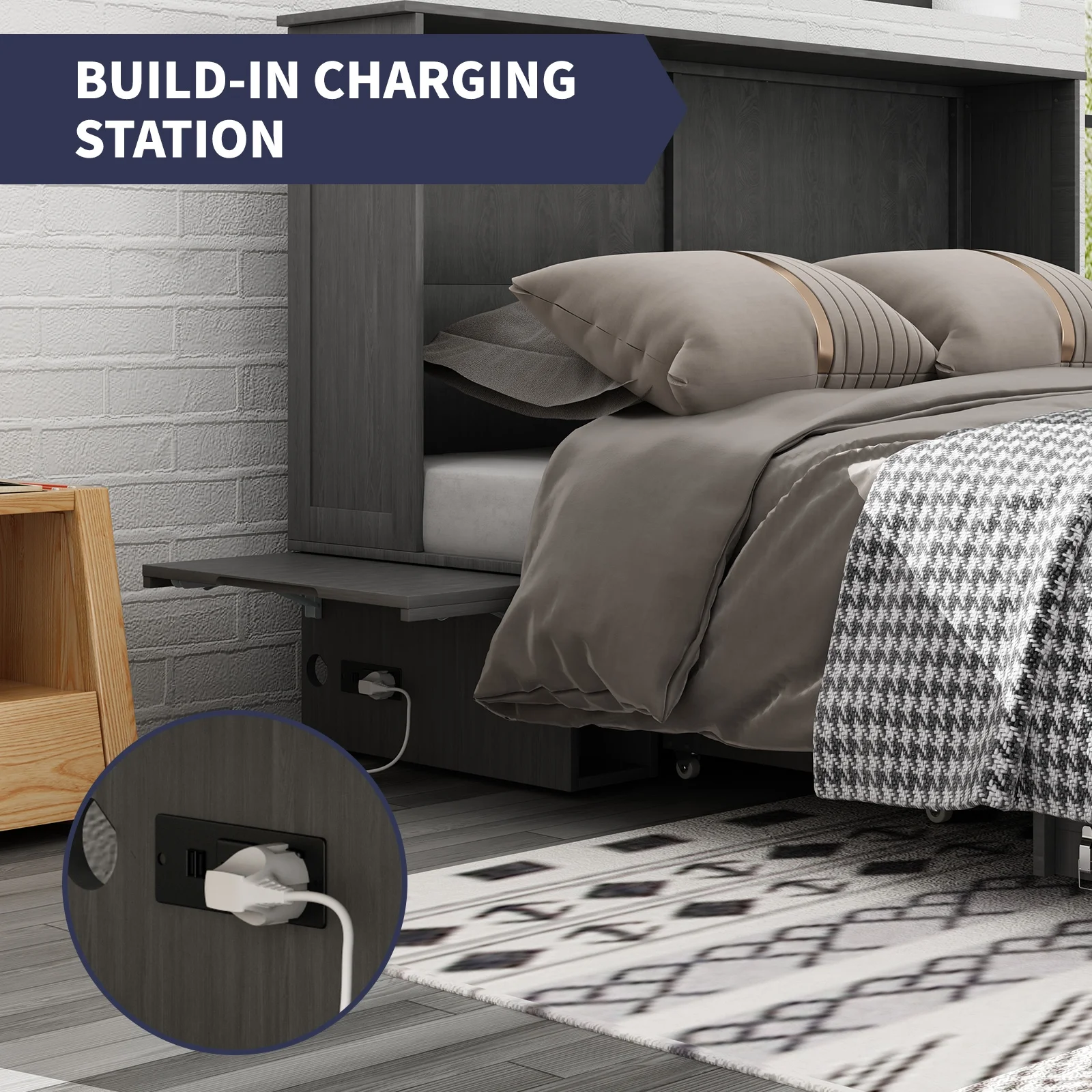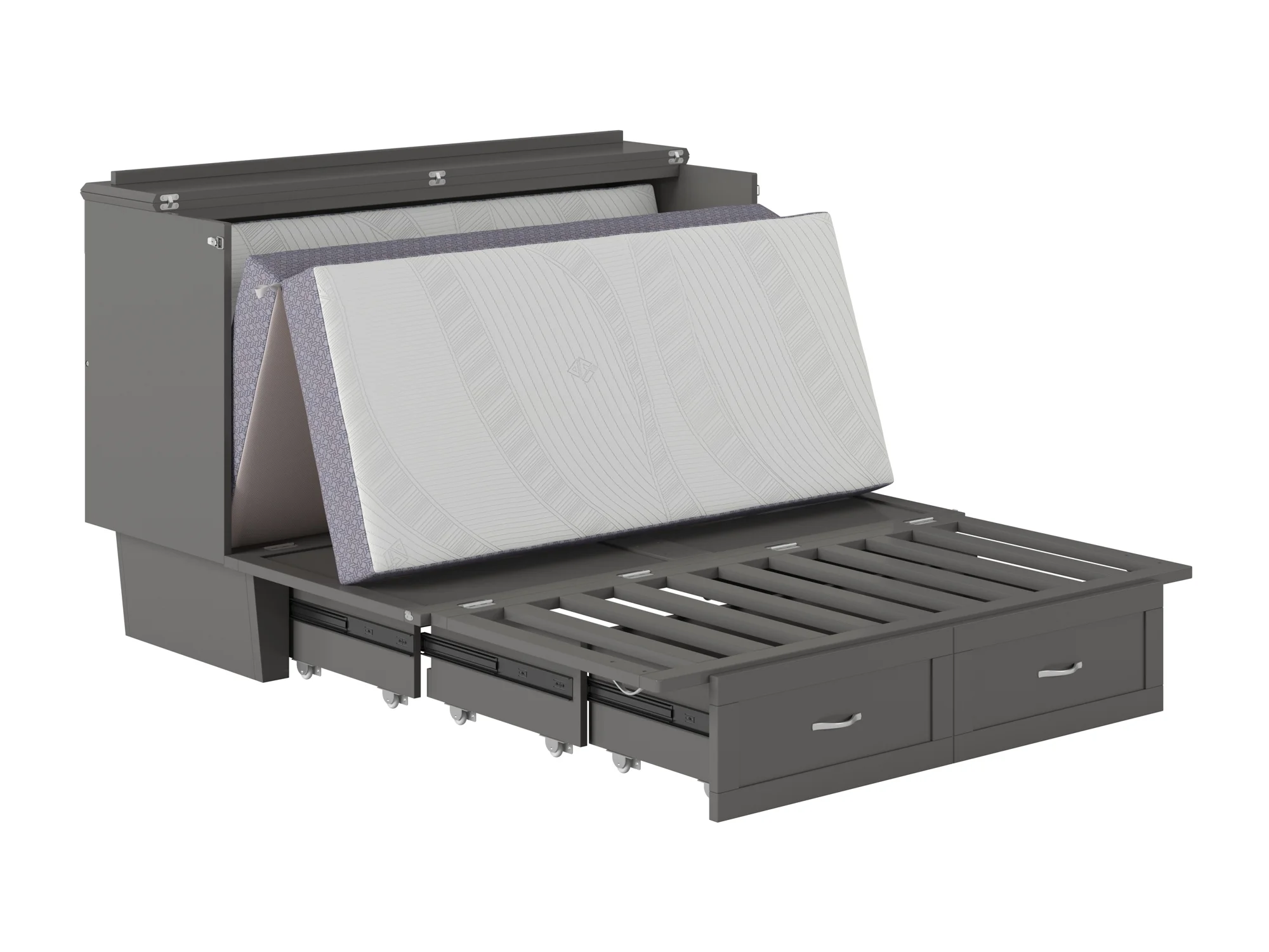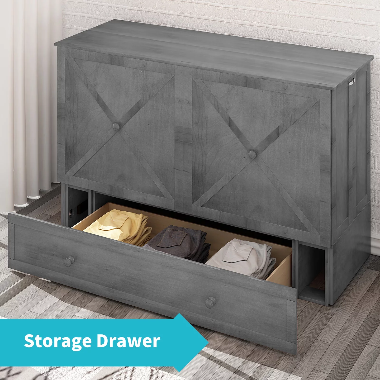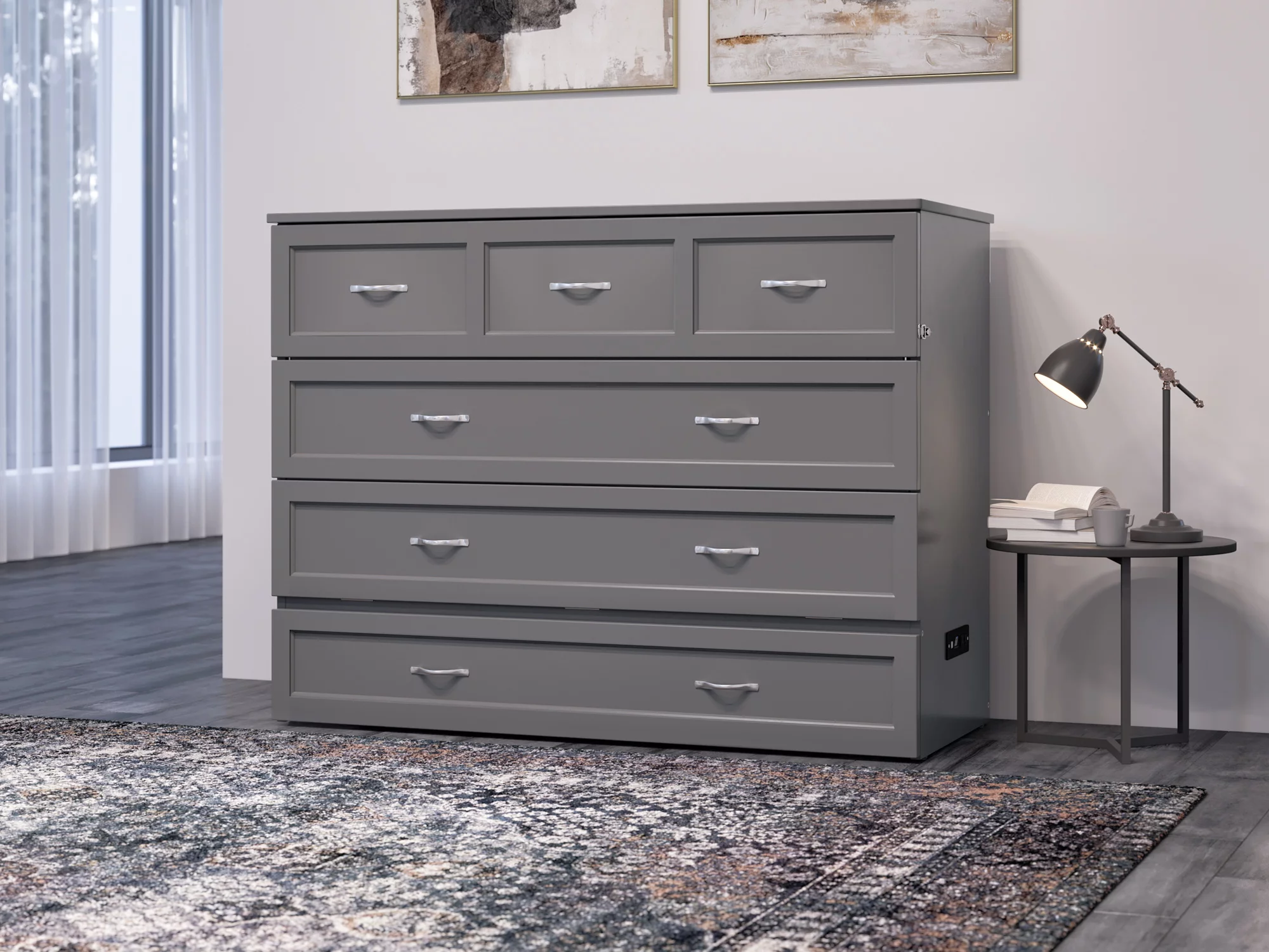 Nantucket Murphy Bed Chest Twin Grey with Charging Station & Cool Soft Mattress