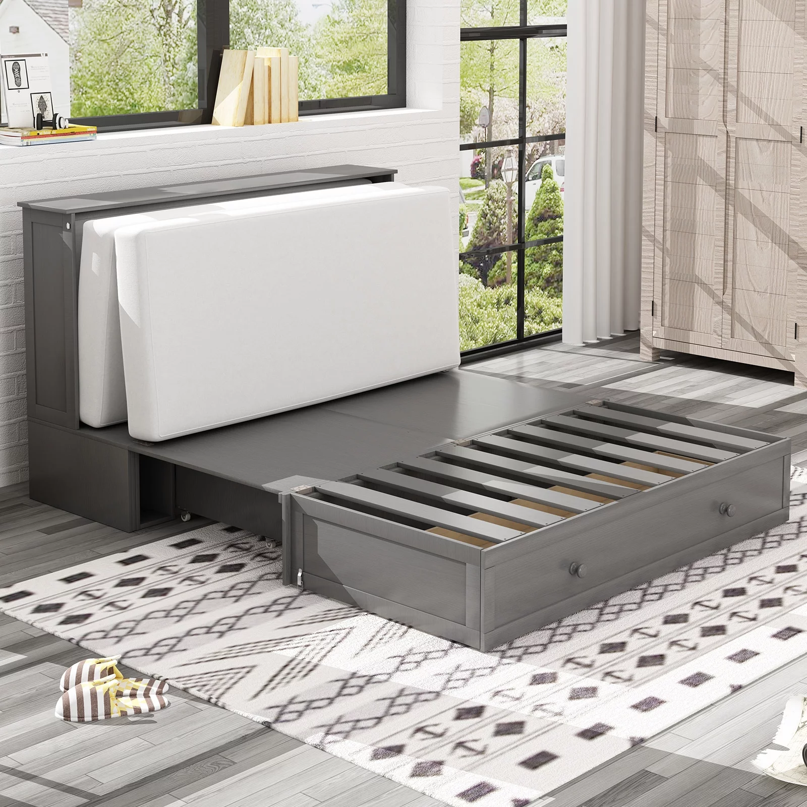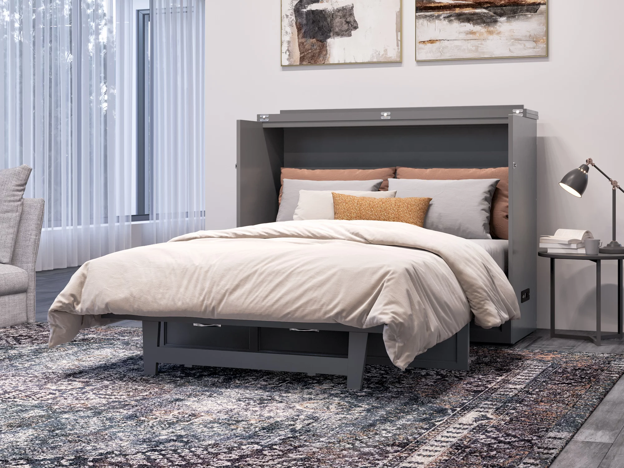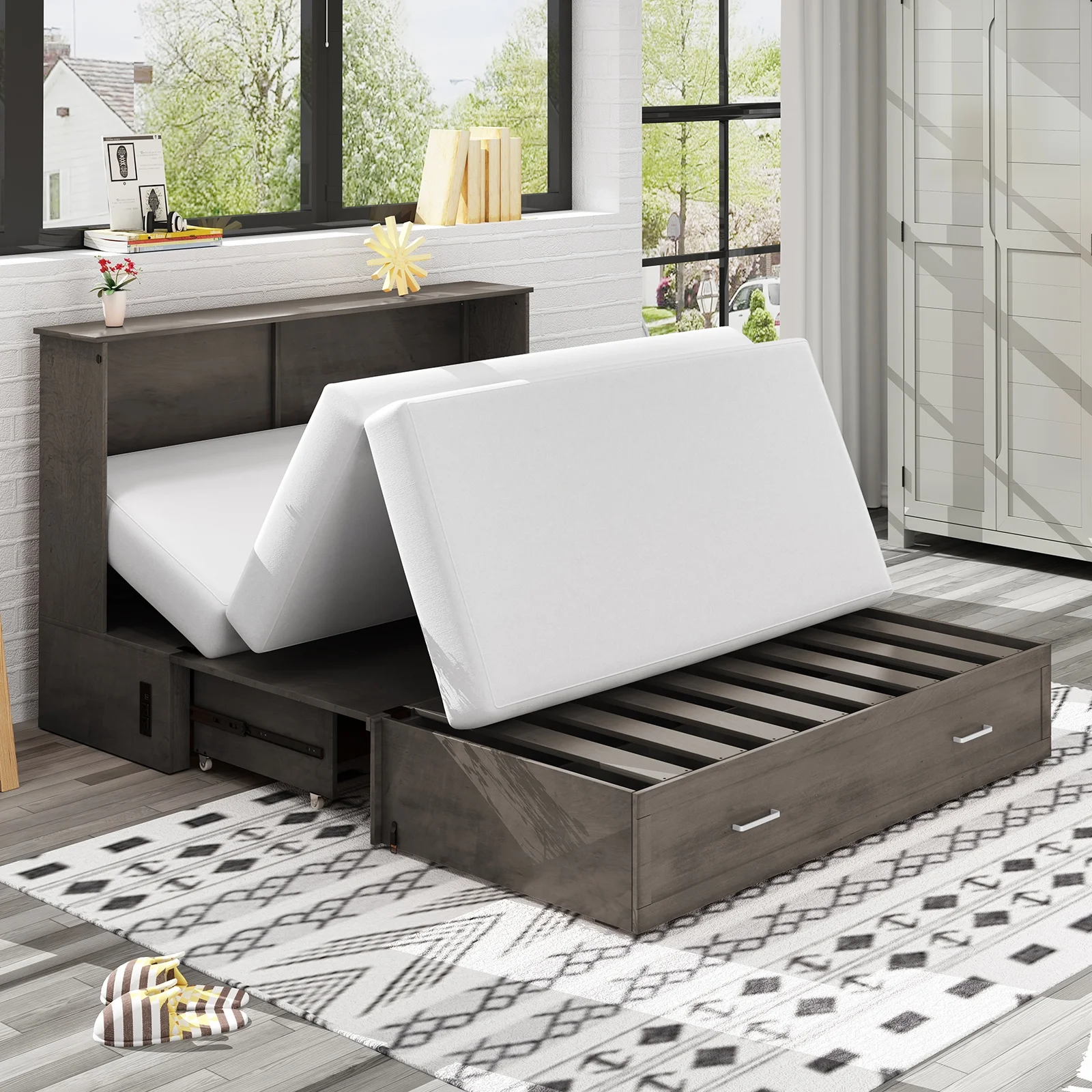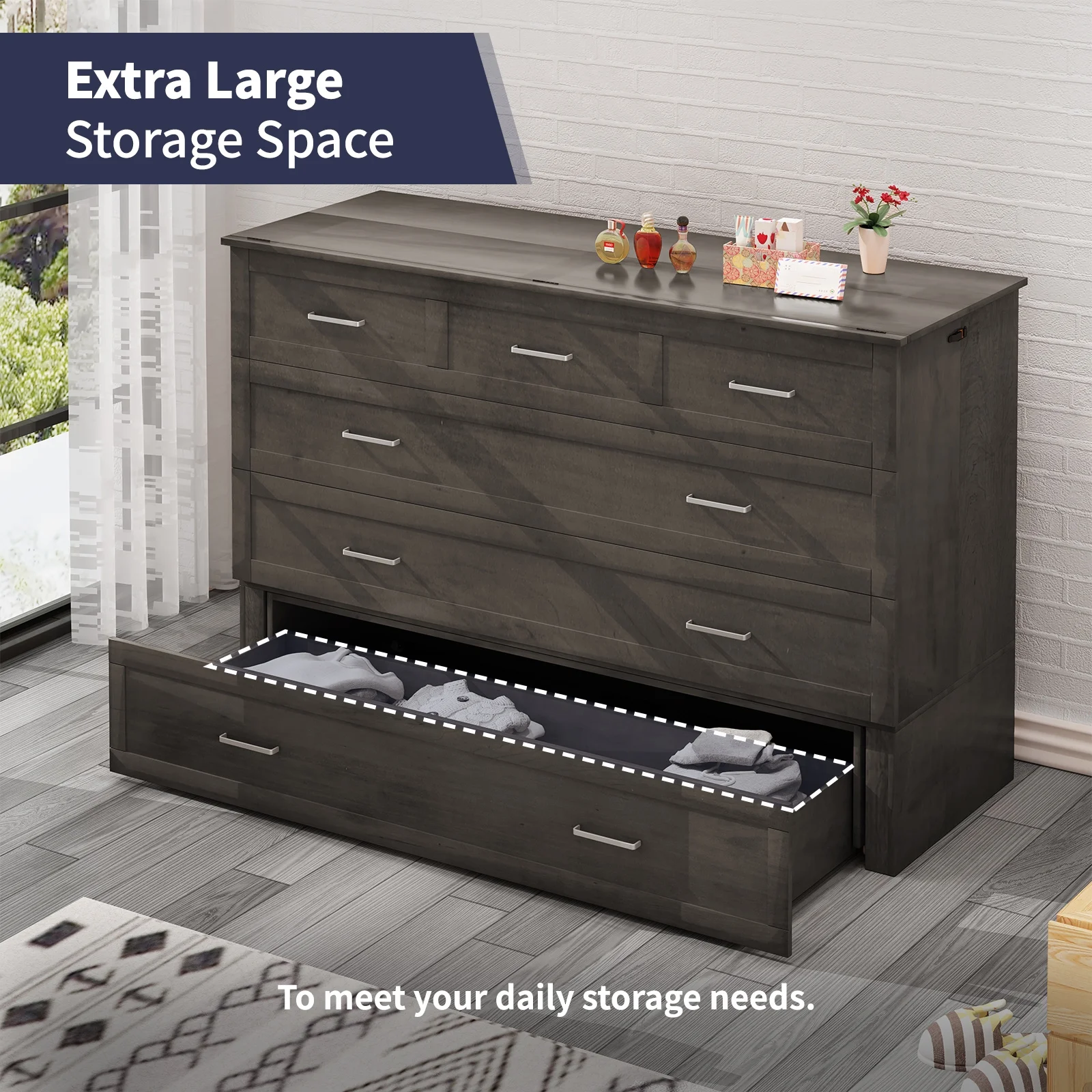 Nantucket Murphy Bed Chest Twin Grey with Charging Station & Cool Soft Mattress