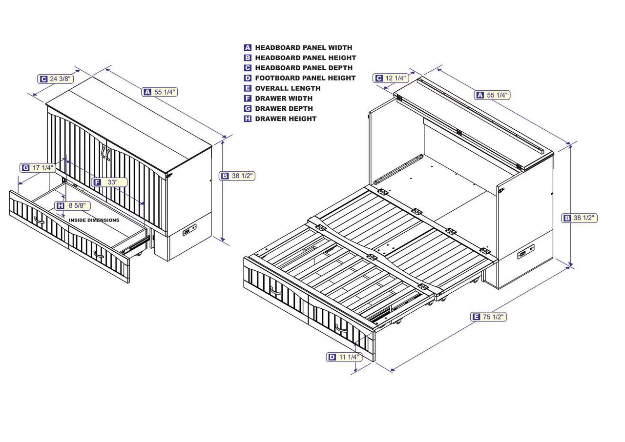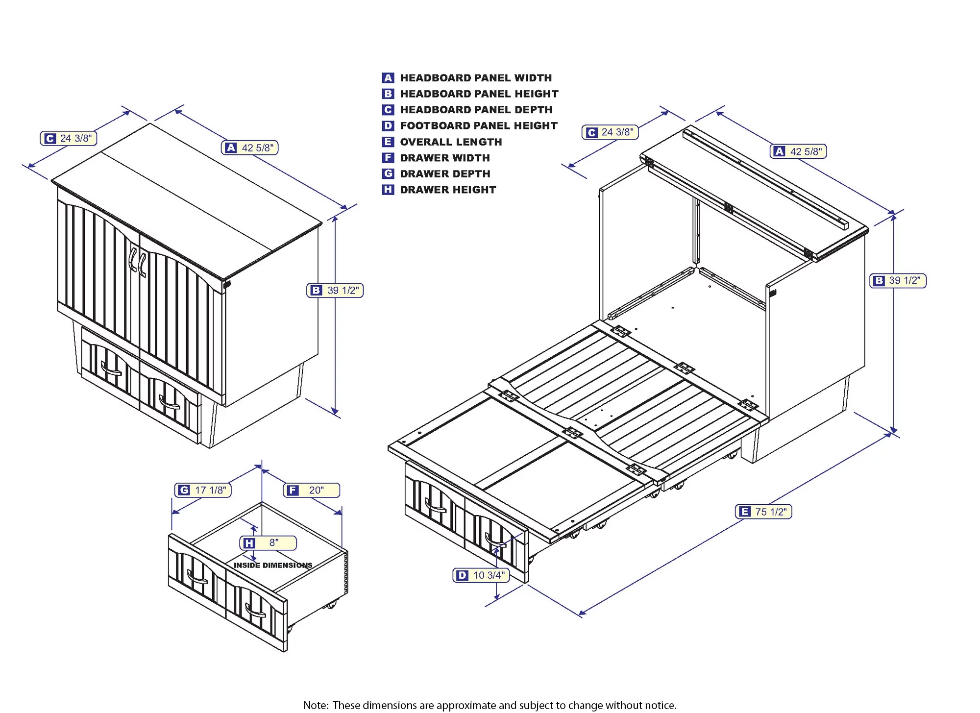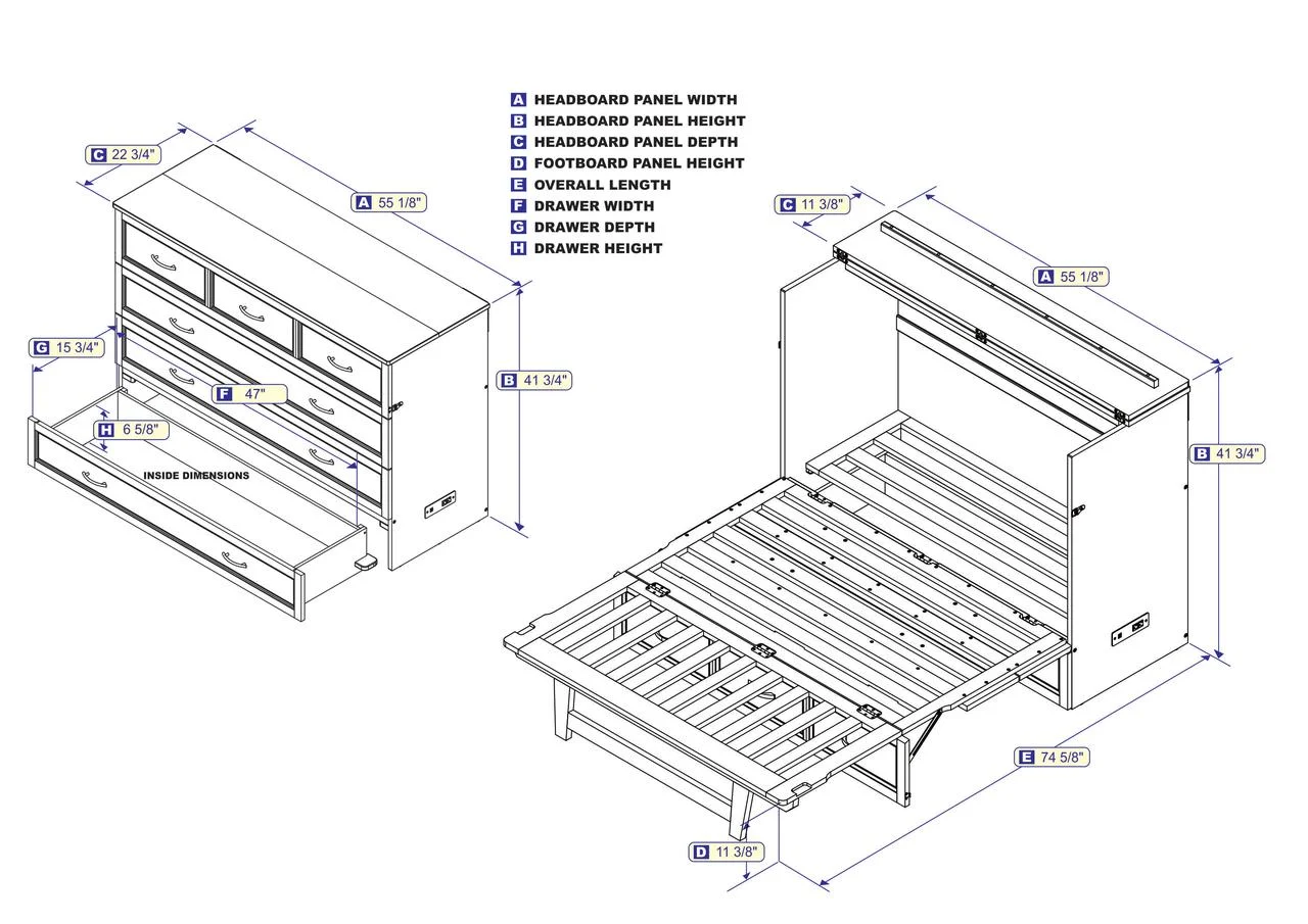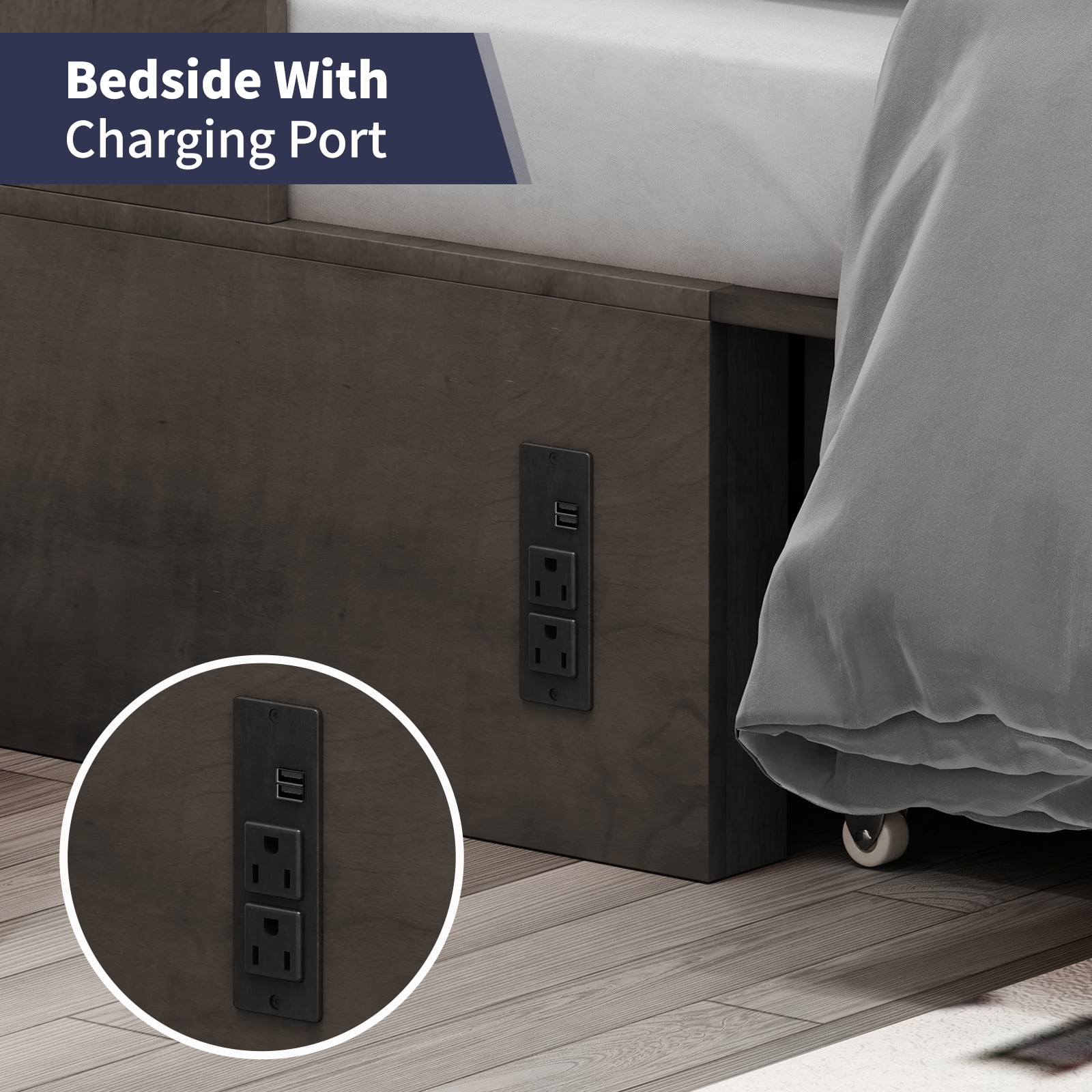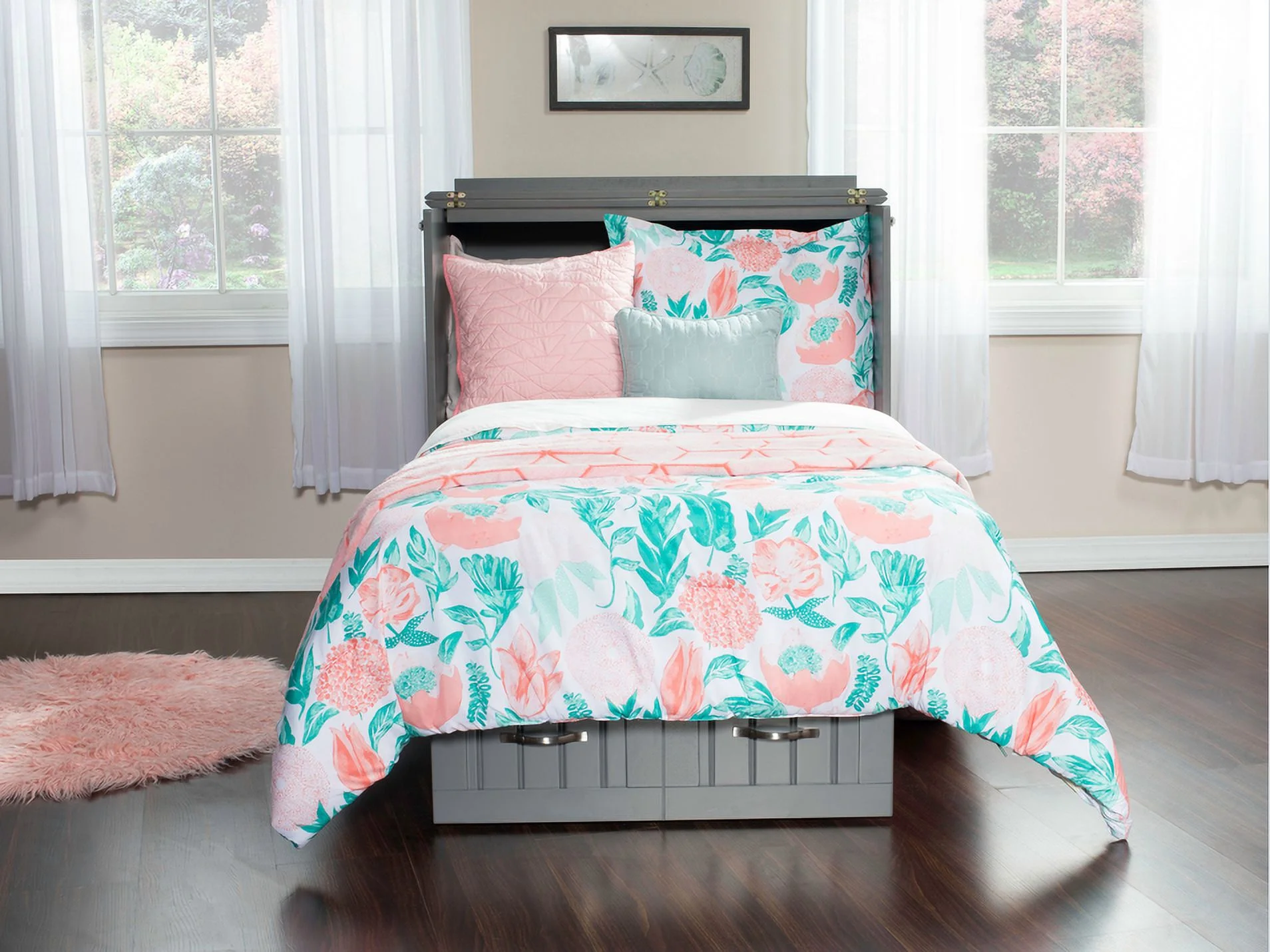 Nantucket Murphy Bed Chest Twin Grey with Charging Station & Cool Soft Mattress