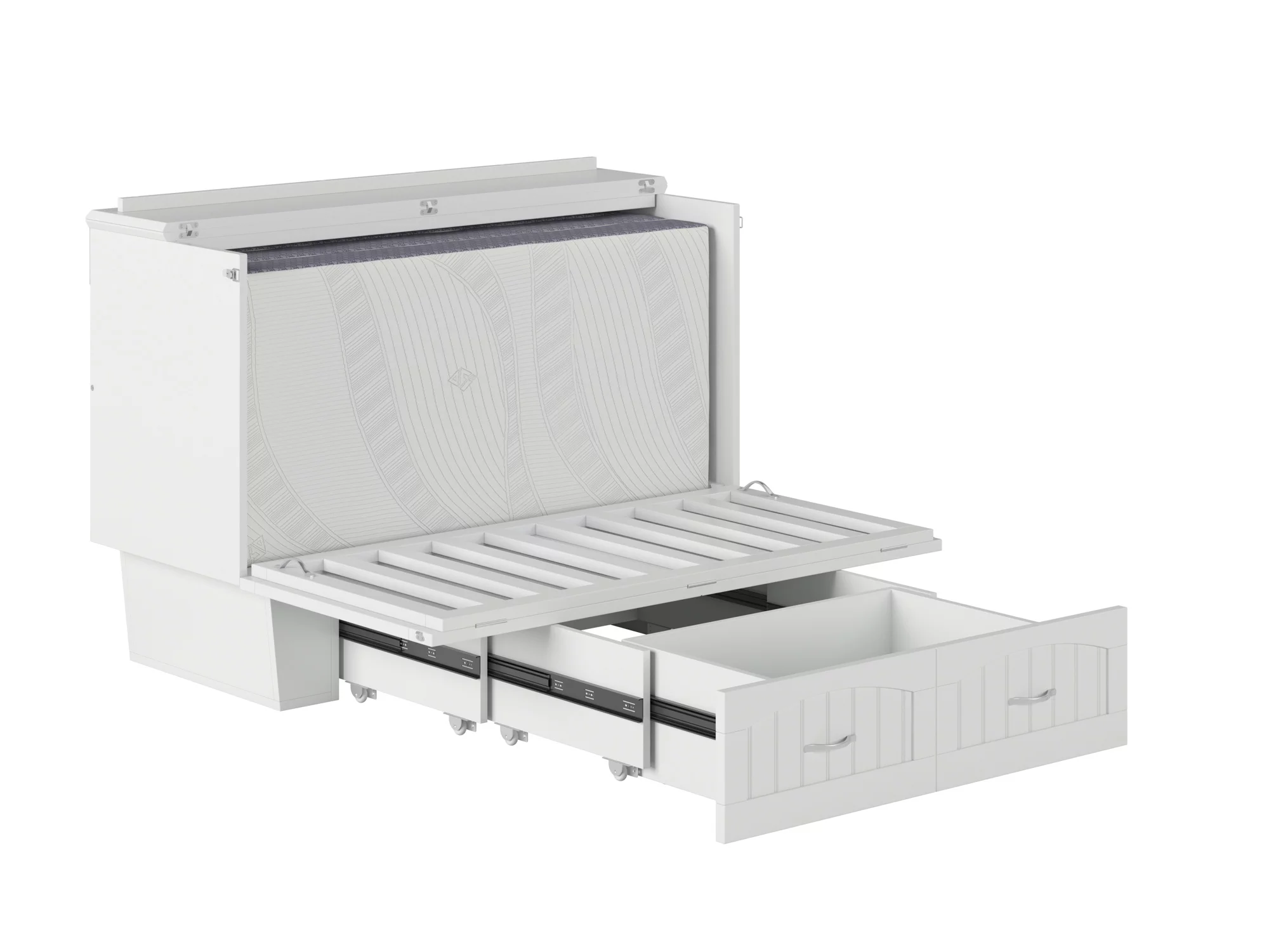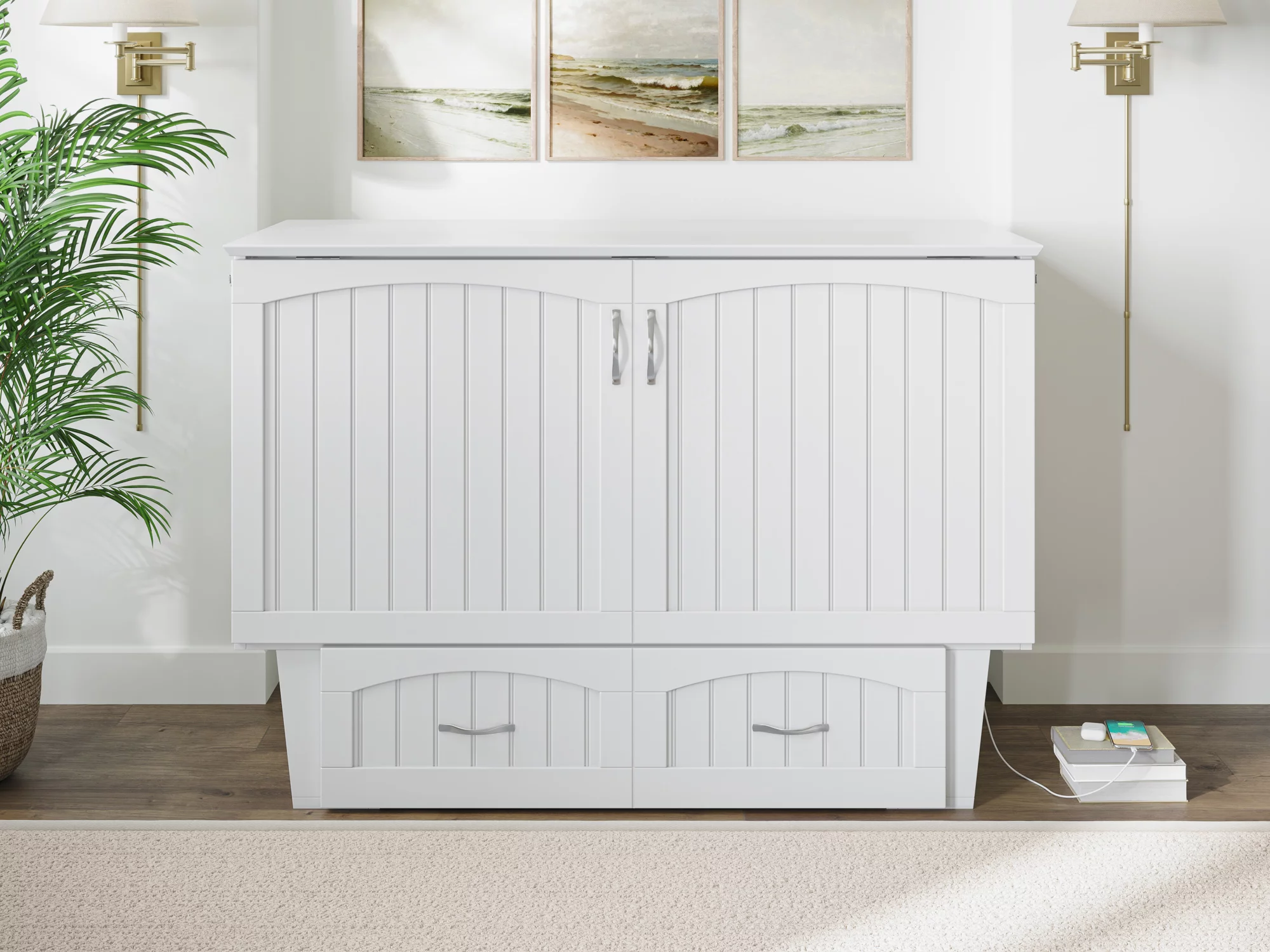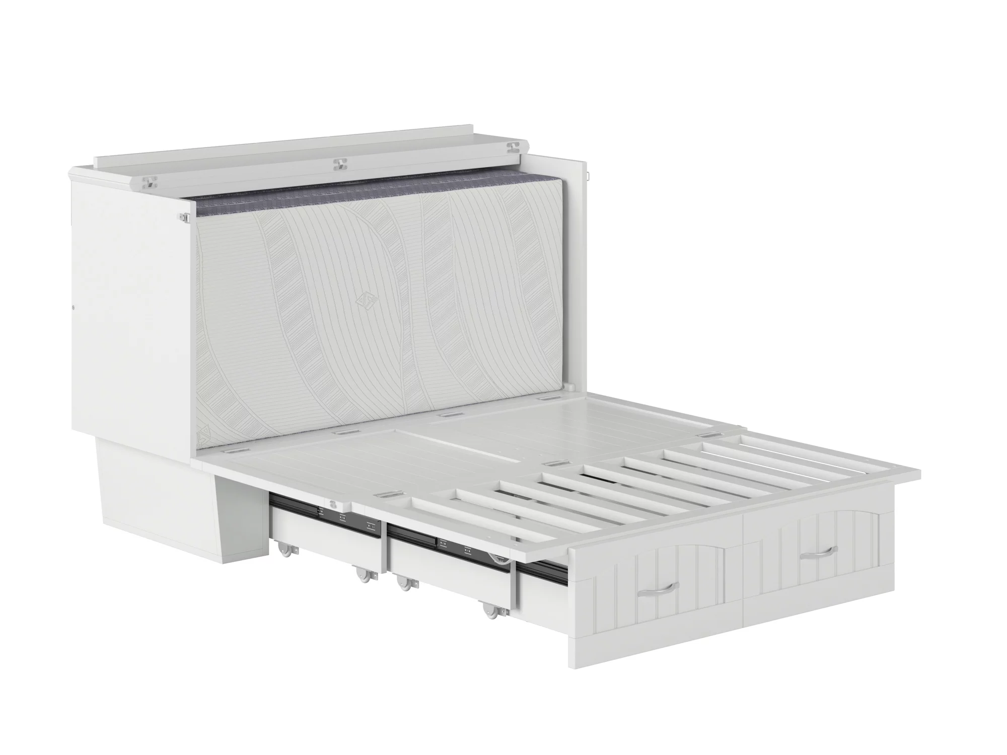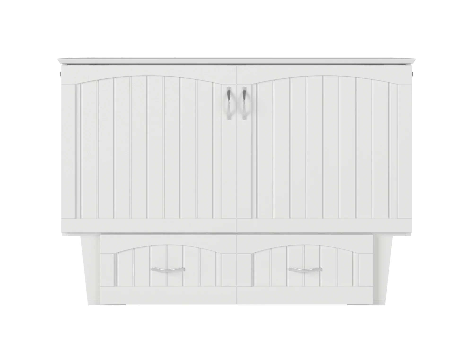 AFI Nantucket Full Solid Wood Murphy Bed Chest with Mattress, Drawer & Charger in White
