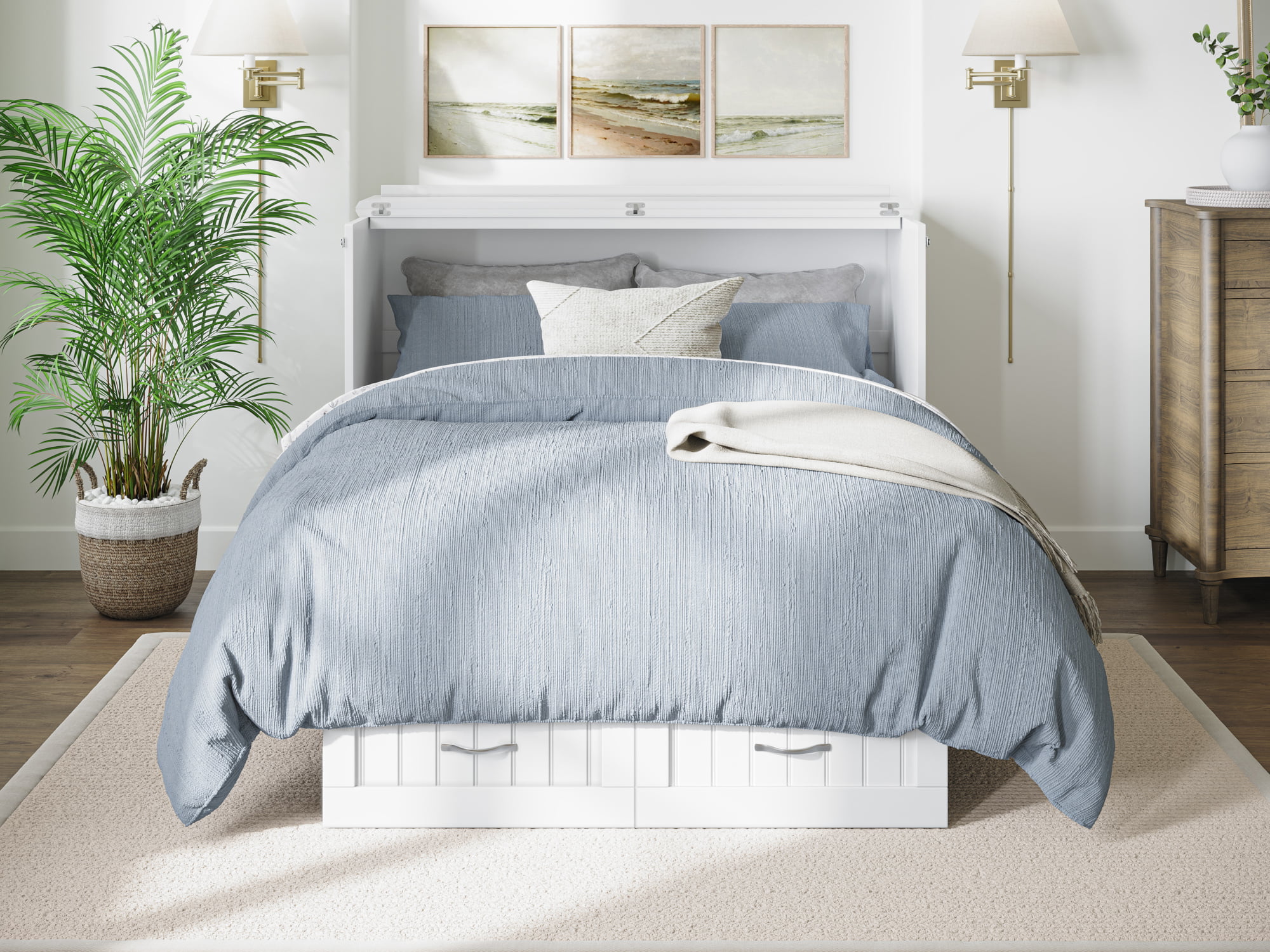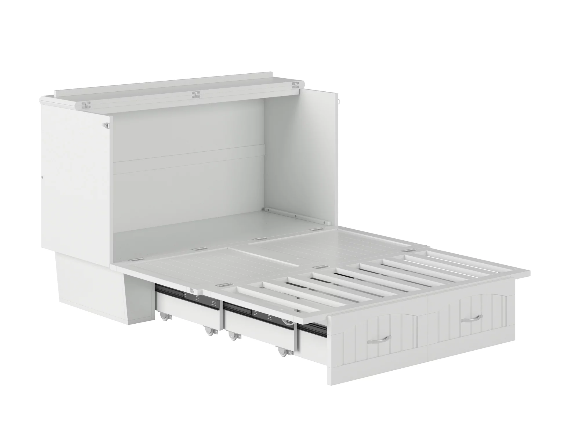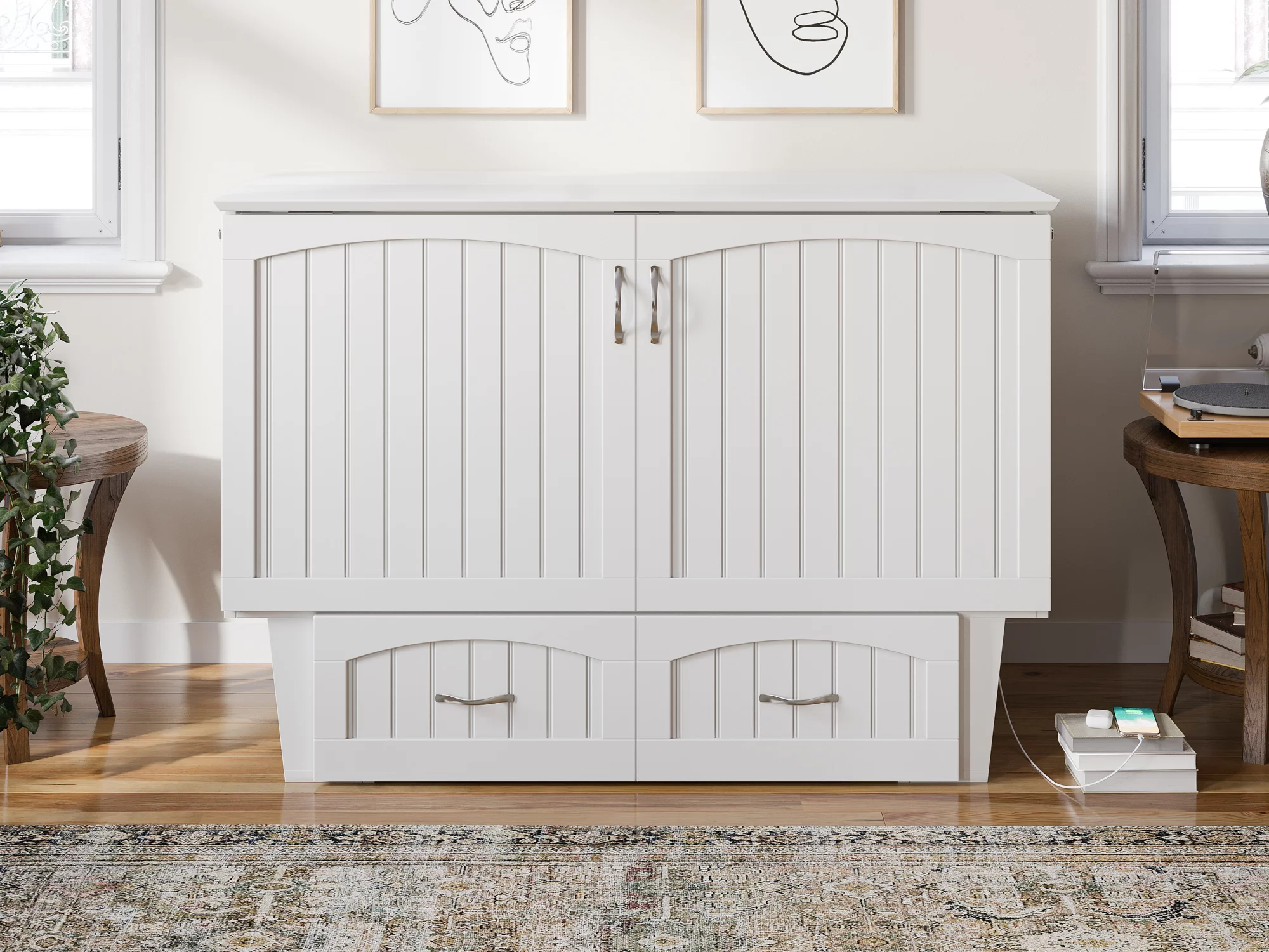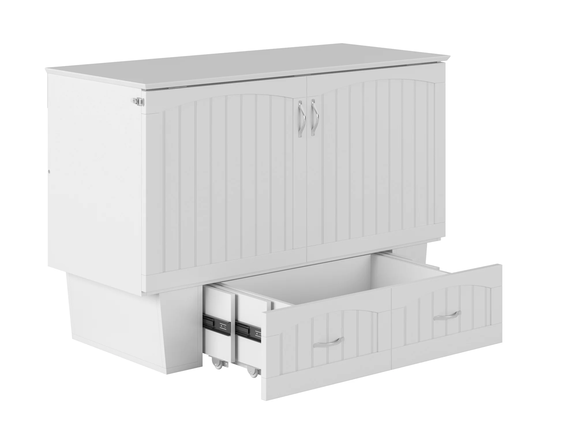AFI Nantucket Full Solid Wood Murphy Bed Chest with Mattress, Drawer & Charger in White