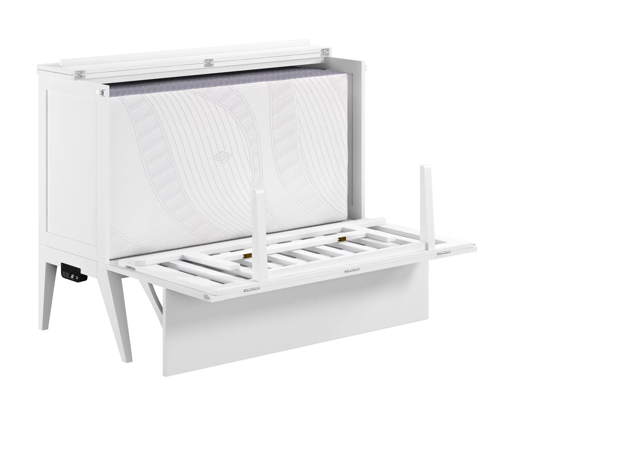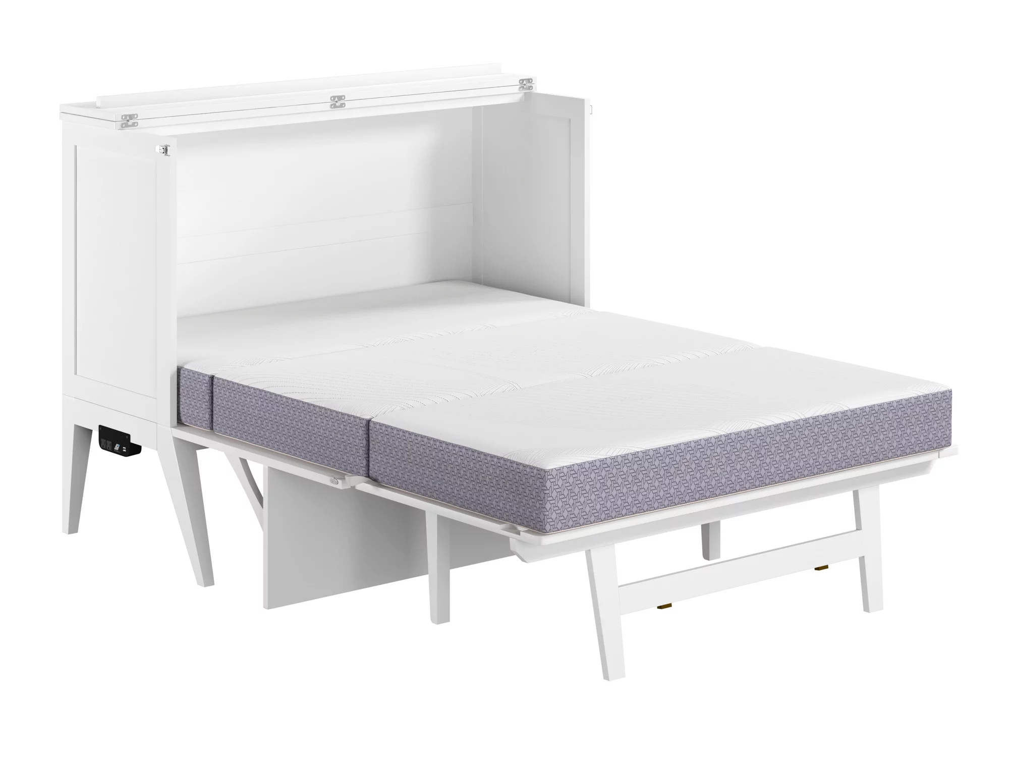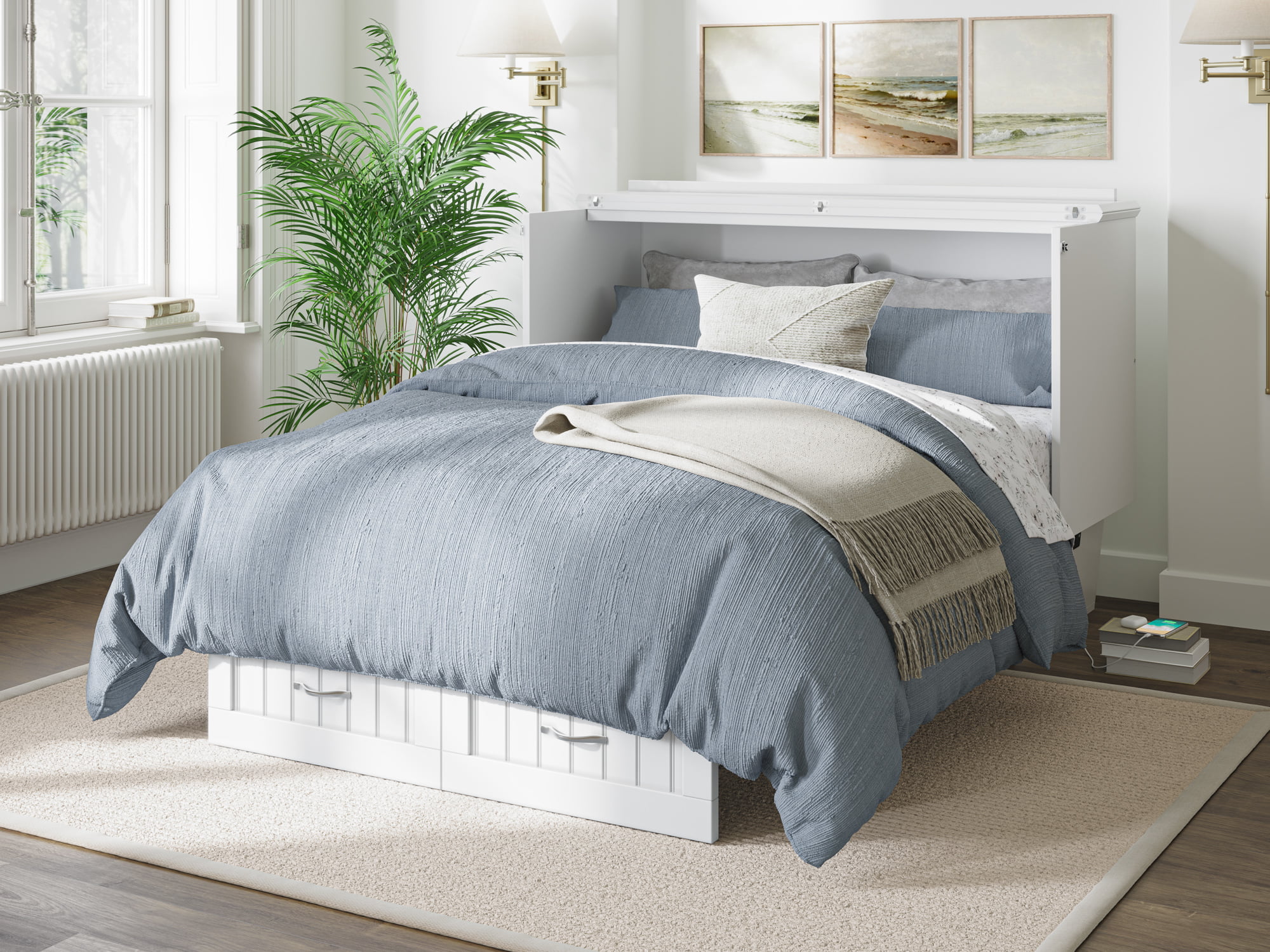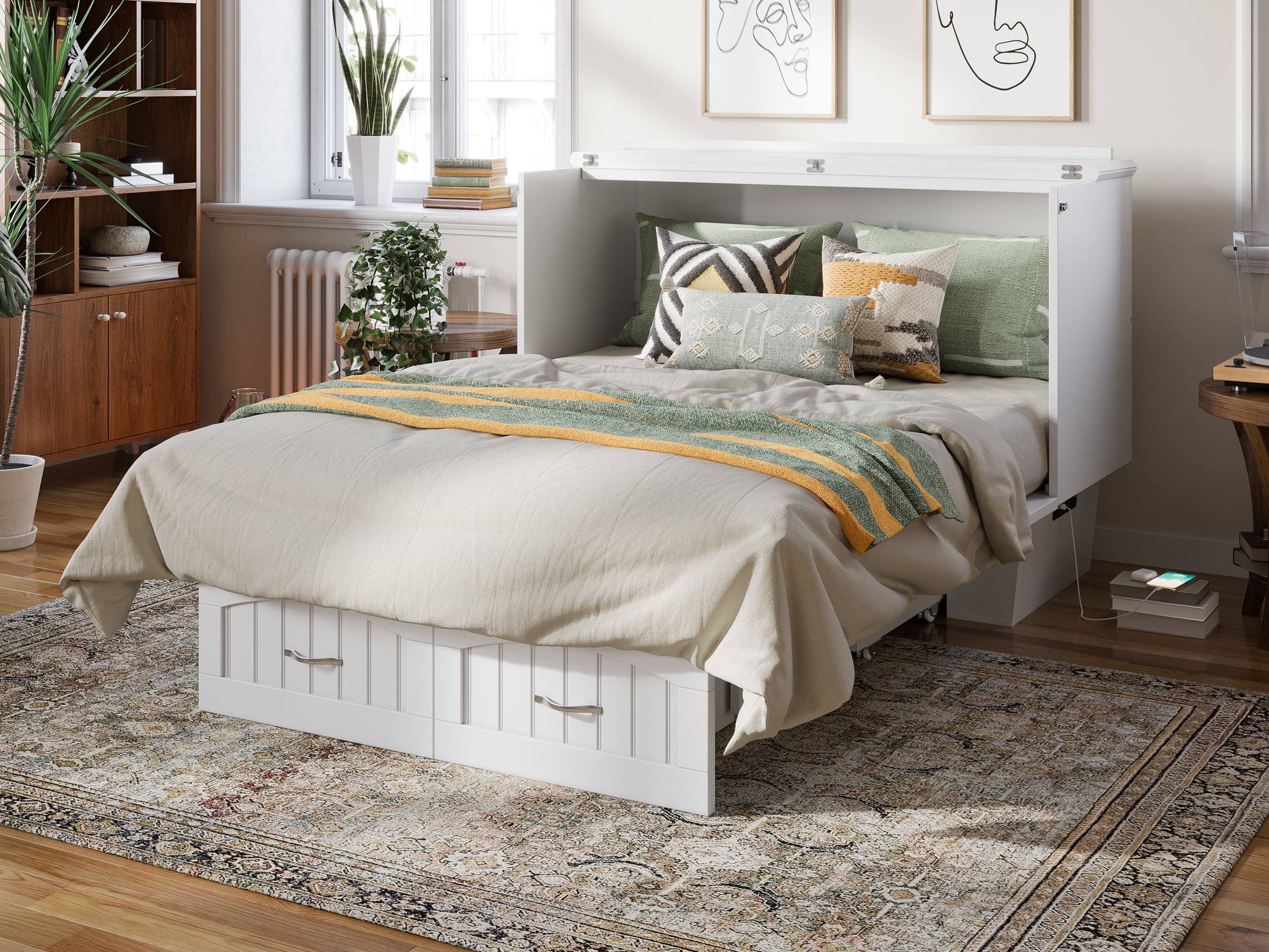 AFI Nantucket Full Solid Wood Murphy Bed Chest with Mattress, Drawer & Charger in White