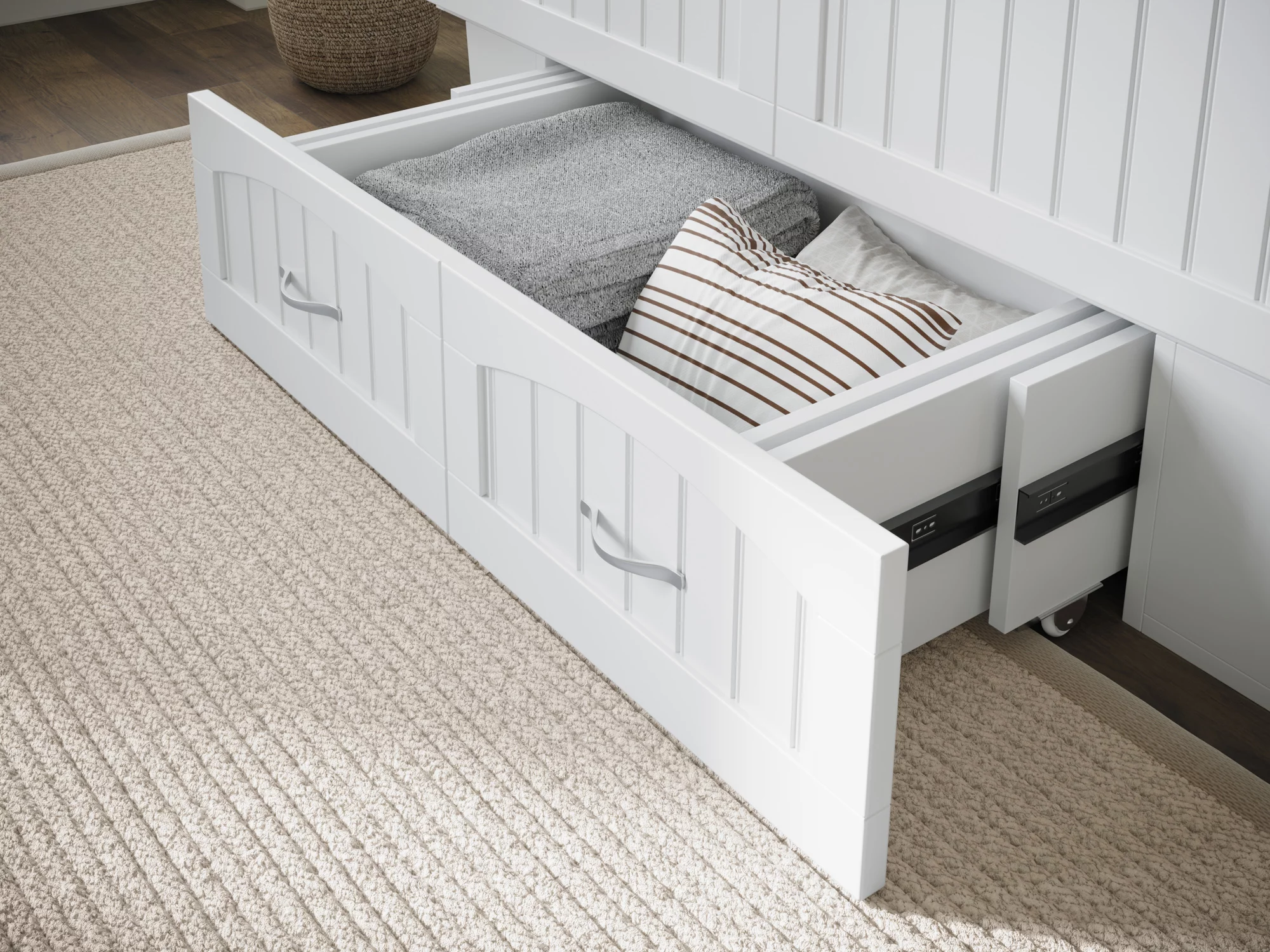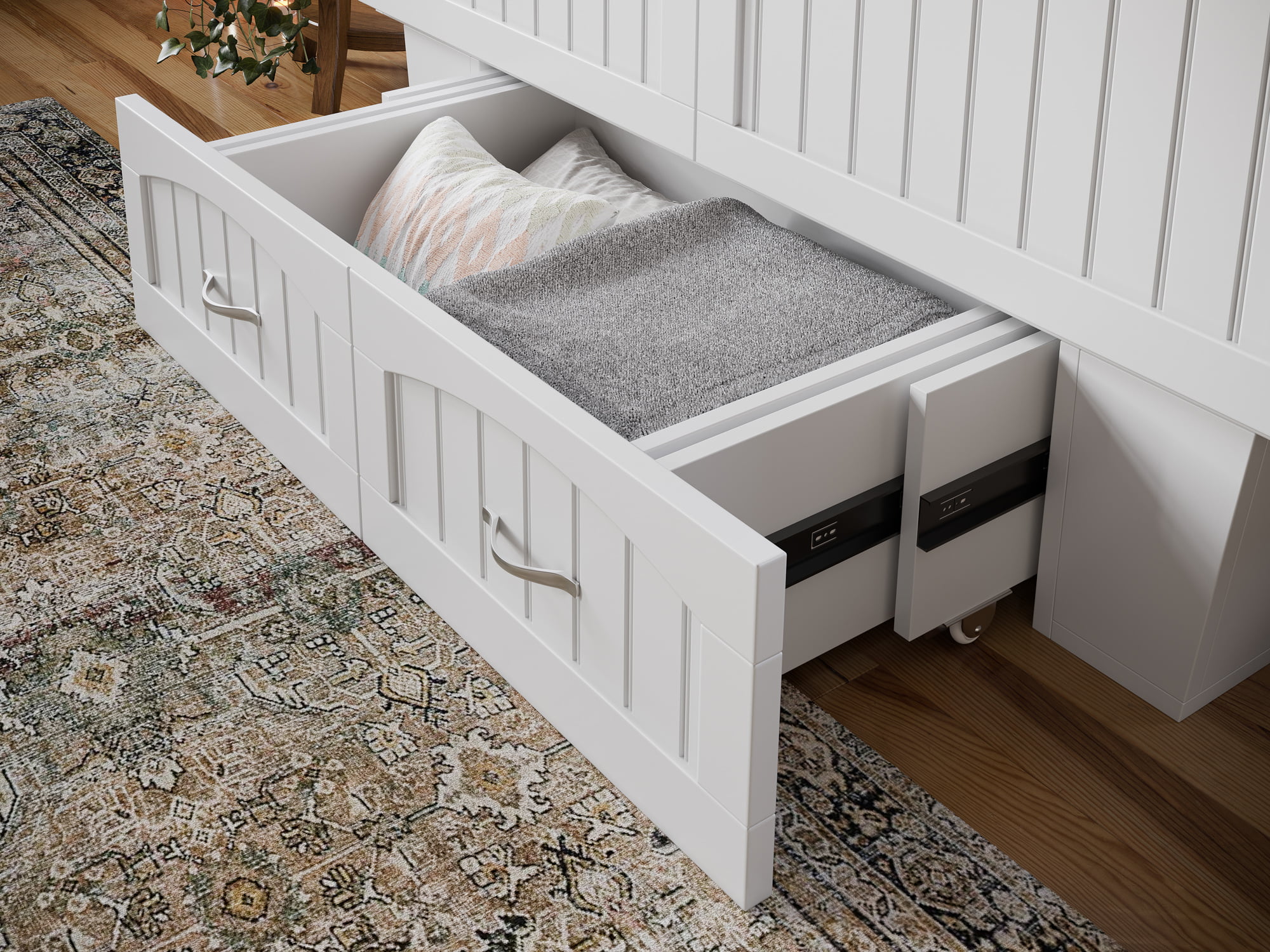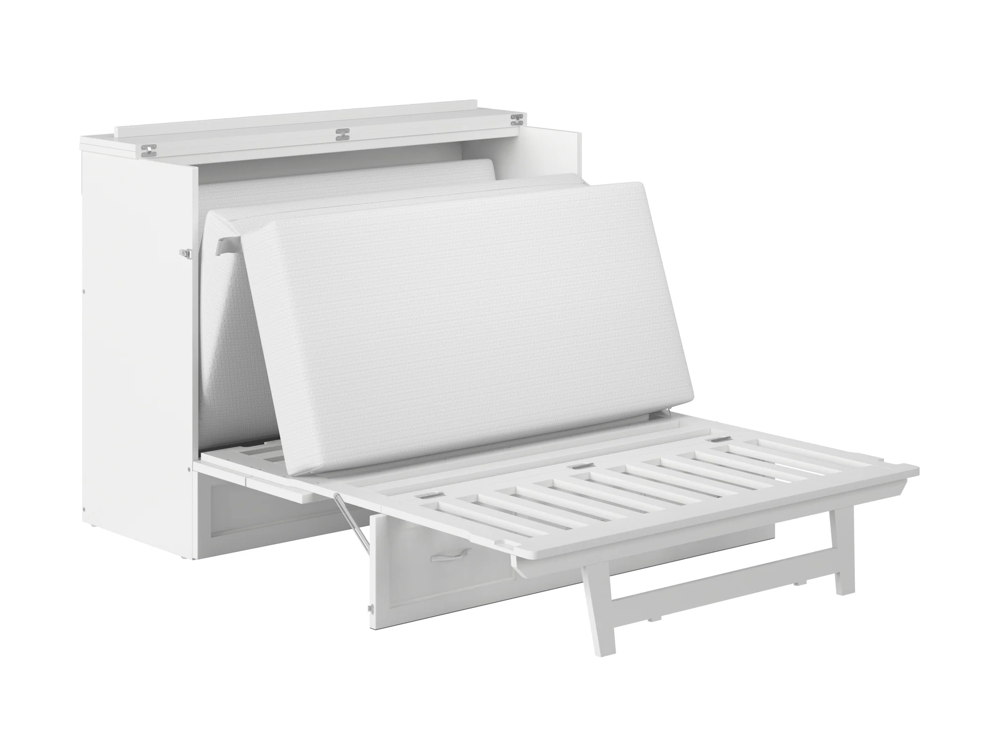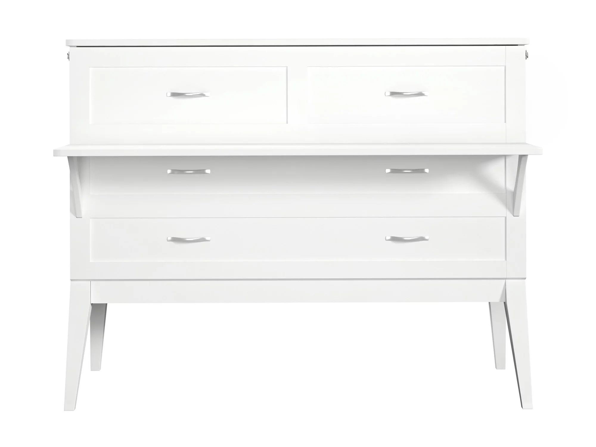 AFI Nantucket Full Solid Wood Murphy Bed Chest with Mattress, Drawer & Charger in White