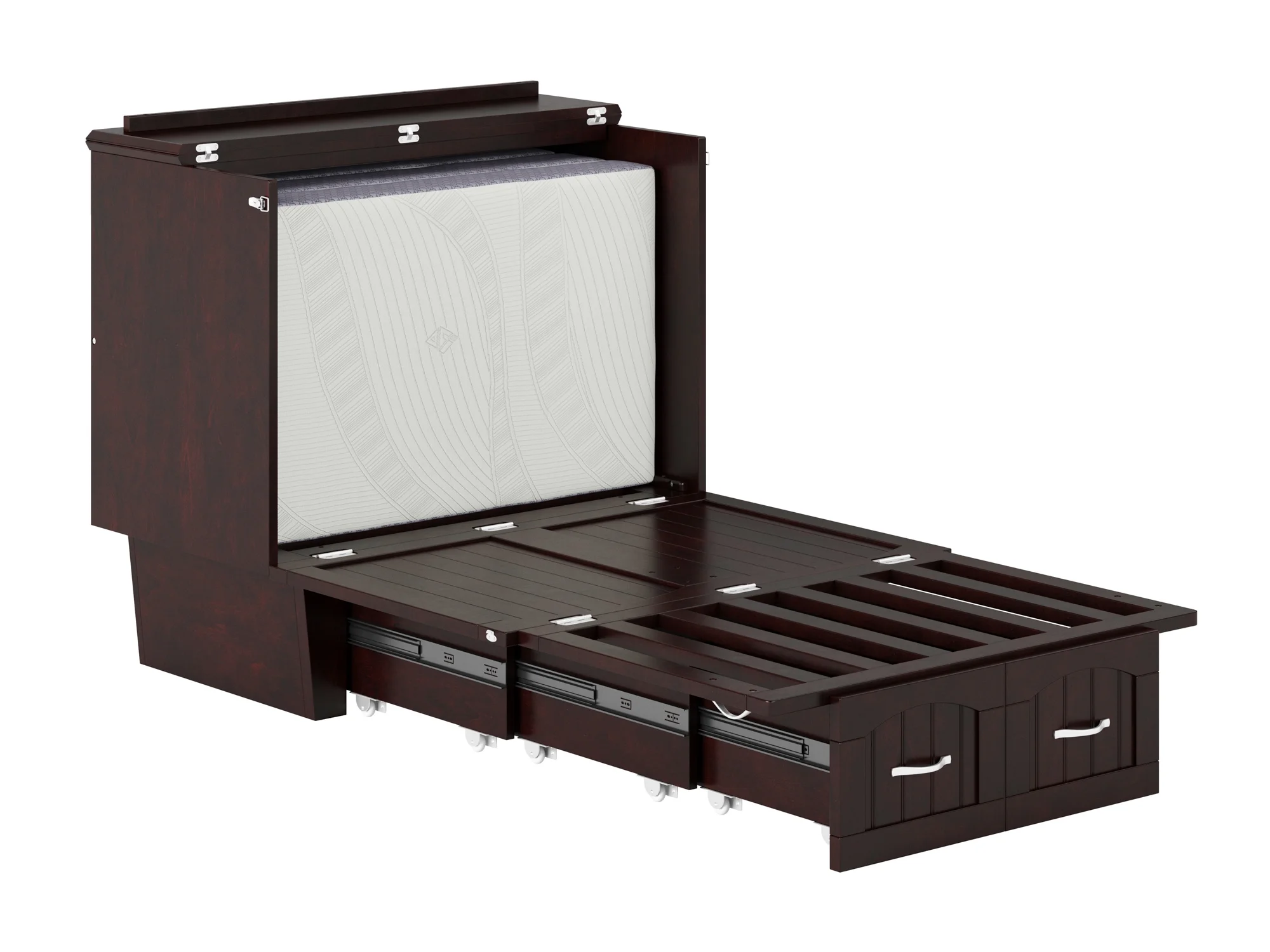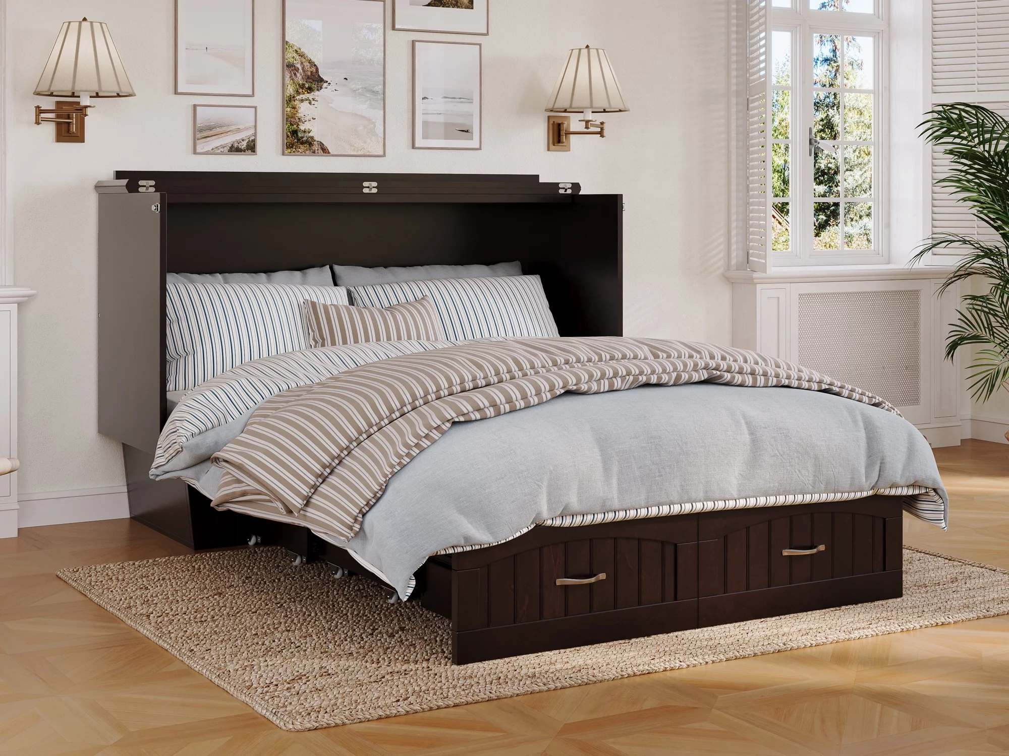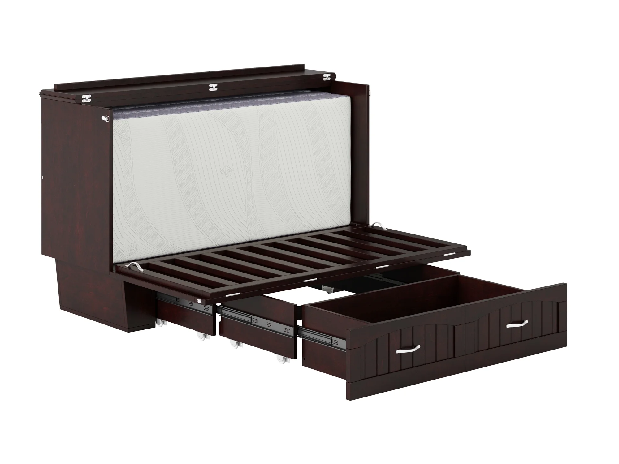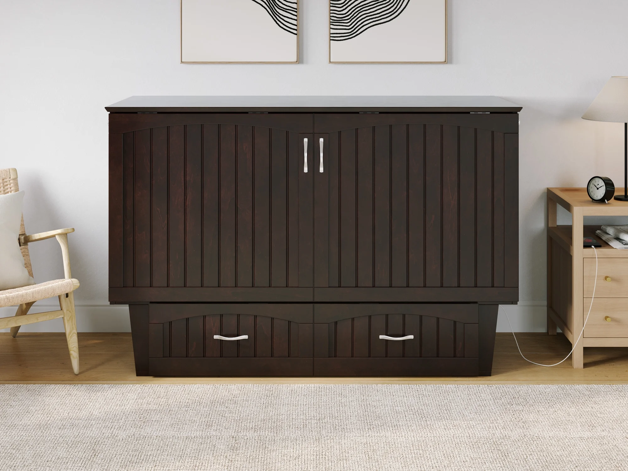 AFI Nantucket Queen Solid Wood Murphy Bed Chest with Mattress, Drawer & Charger in Espresso