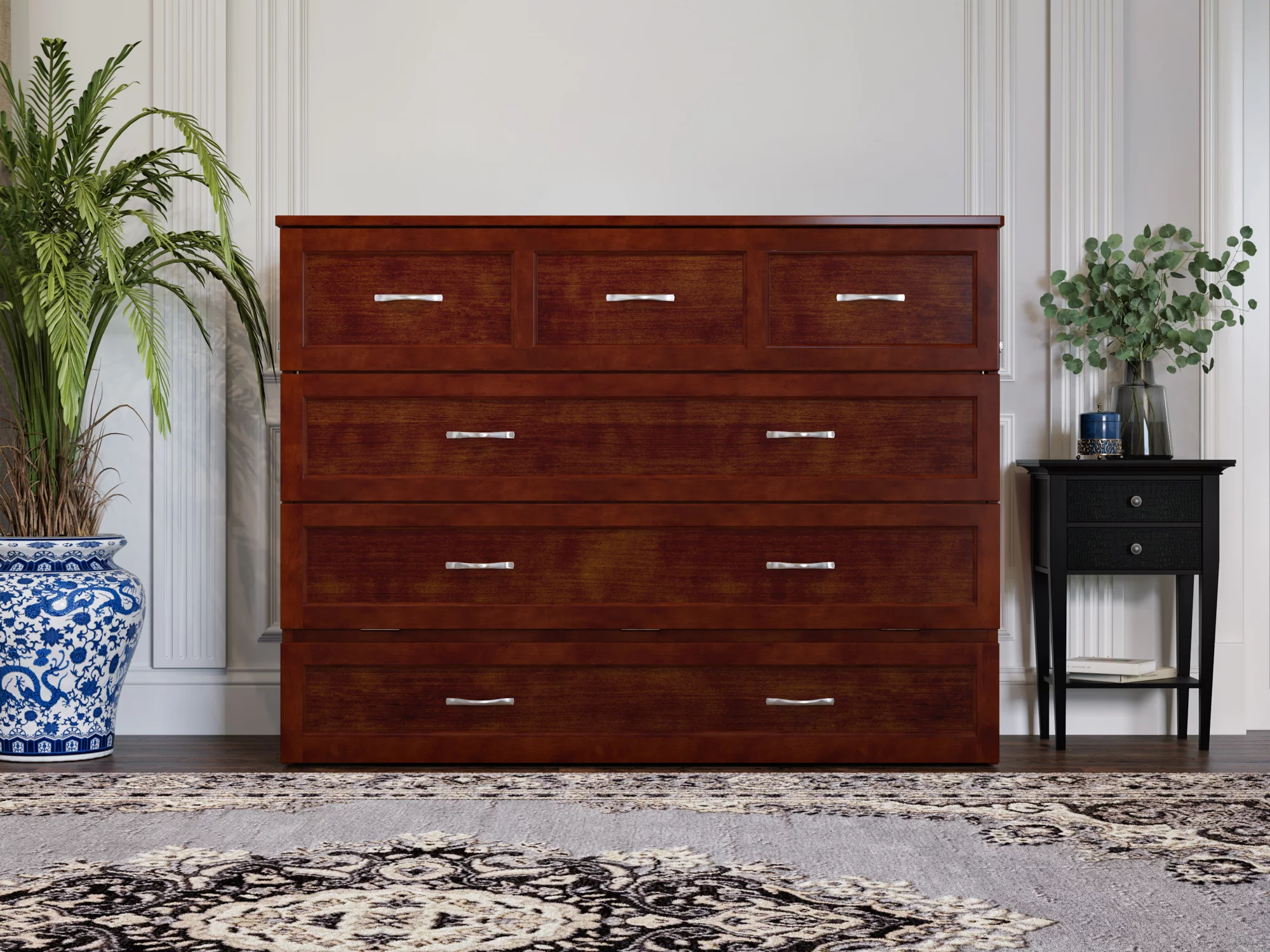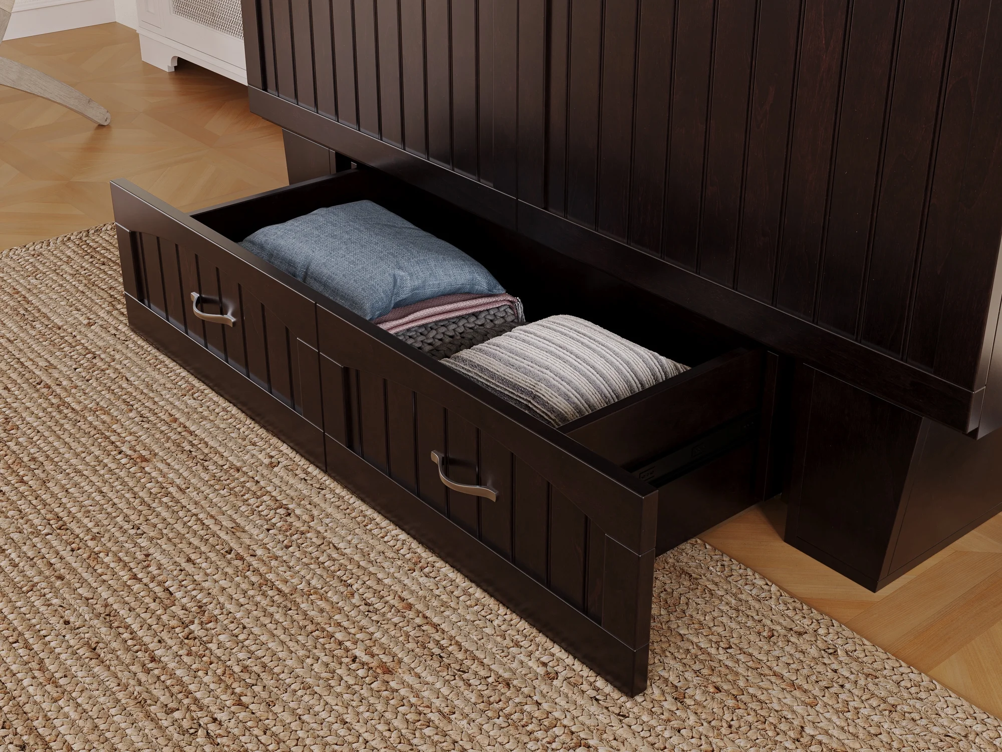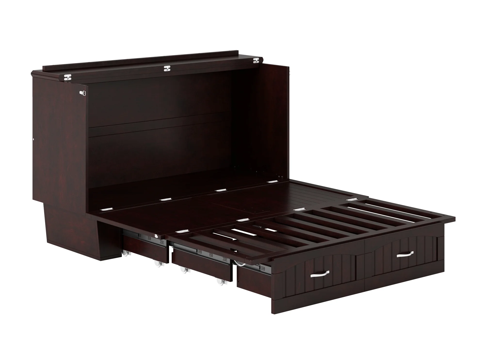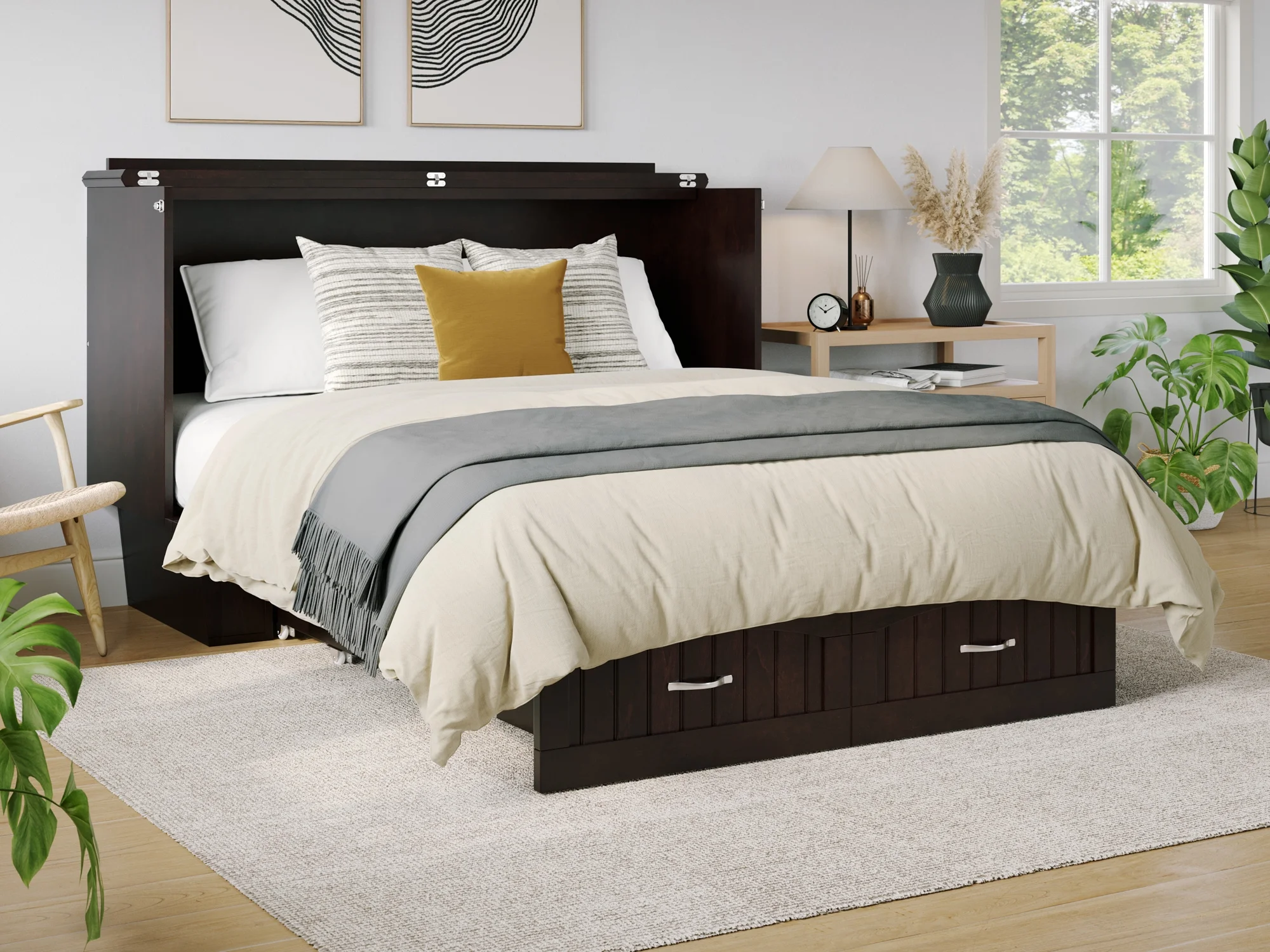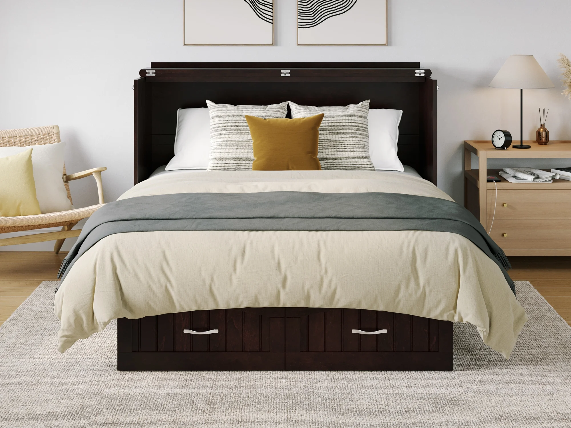 AFI Nantucket Queen Solid Wood Murphy Bed Chest with Mattress, Drawer & Charger in Espresso