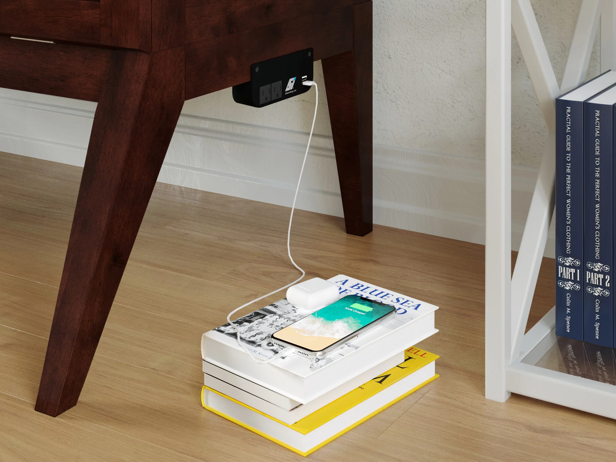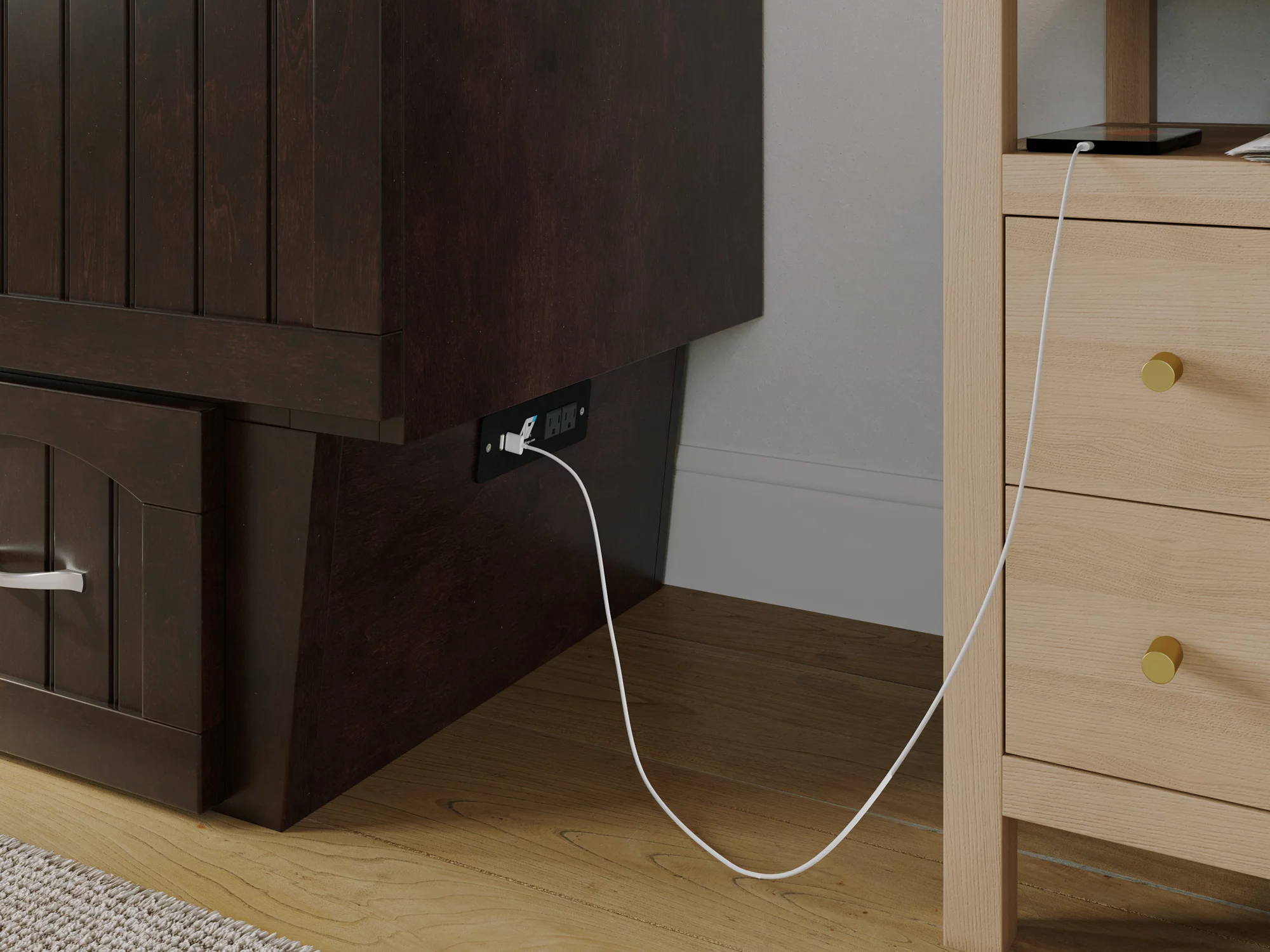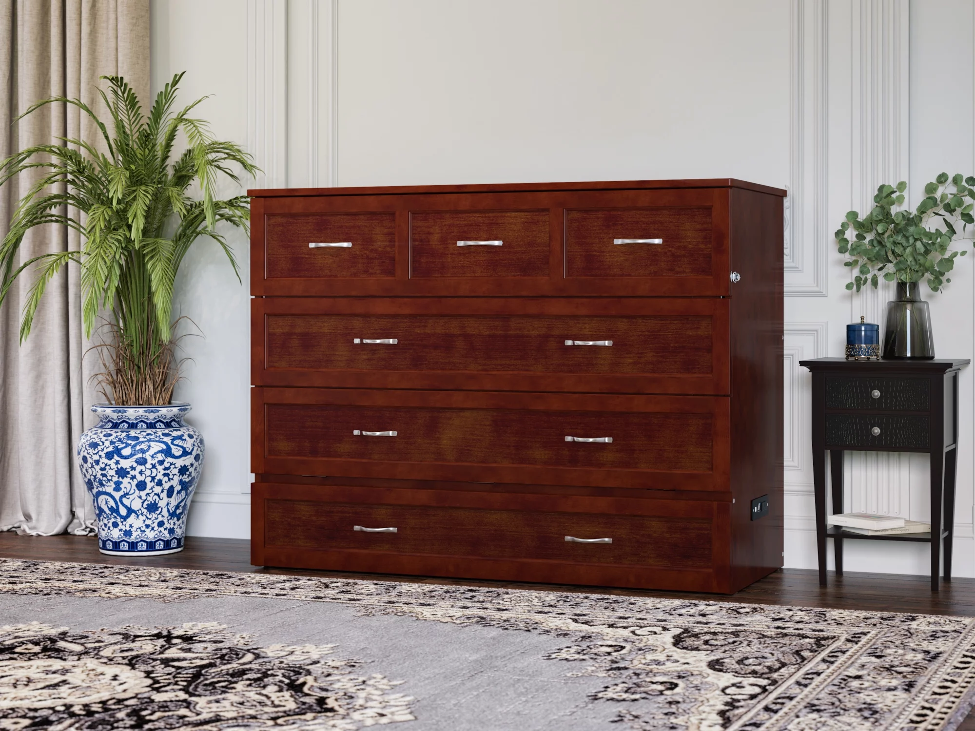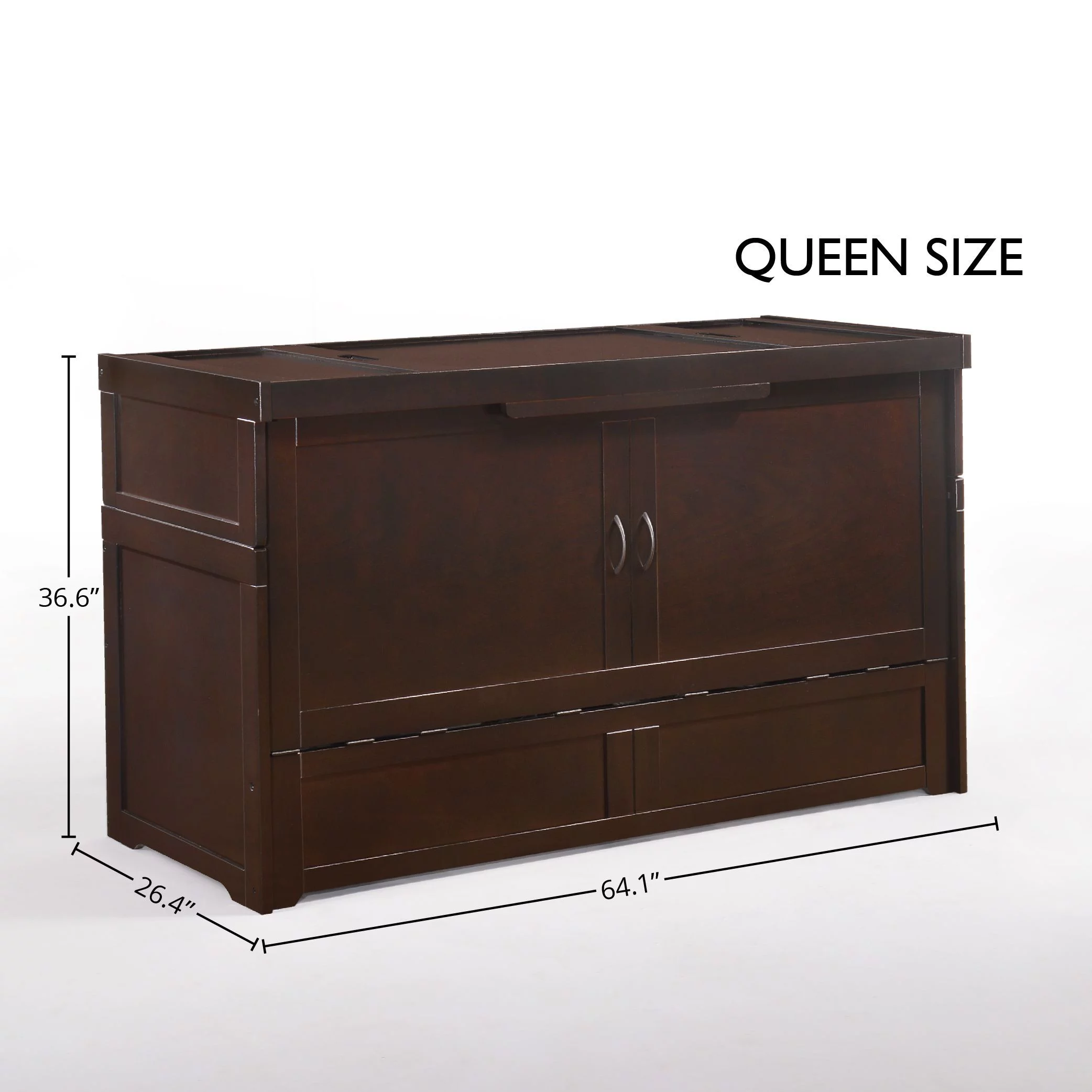 AFI Nantucket Queen Solid Wood Murphy Bed Chest with Mattress, Drawer & Charger in Espresso