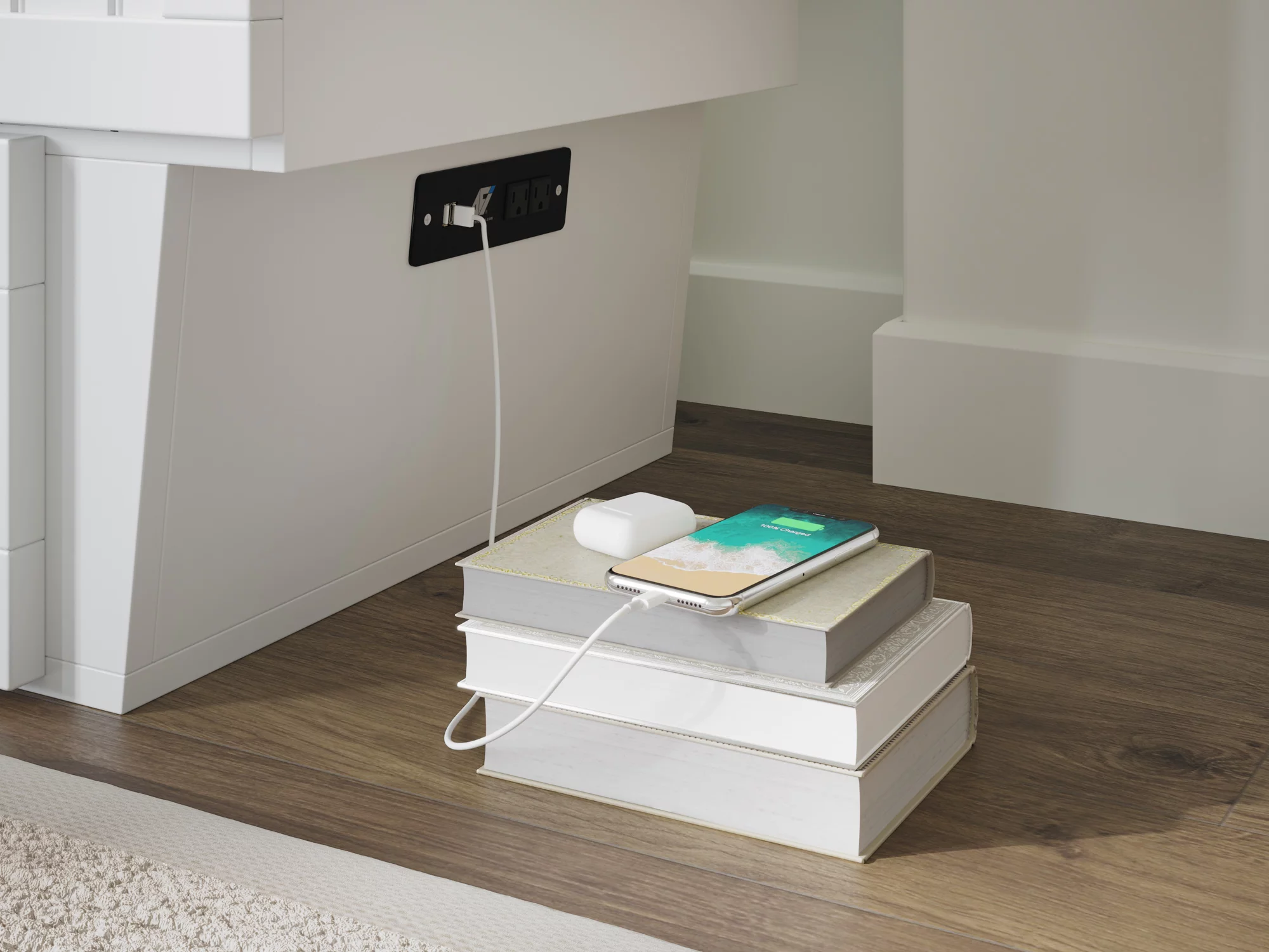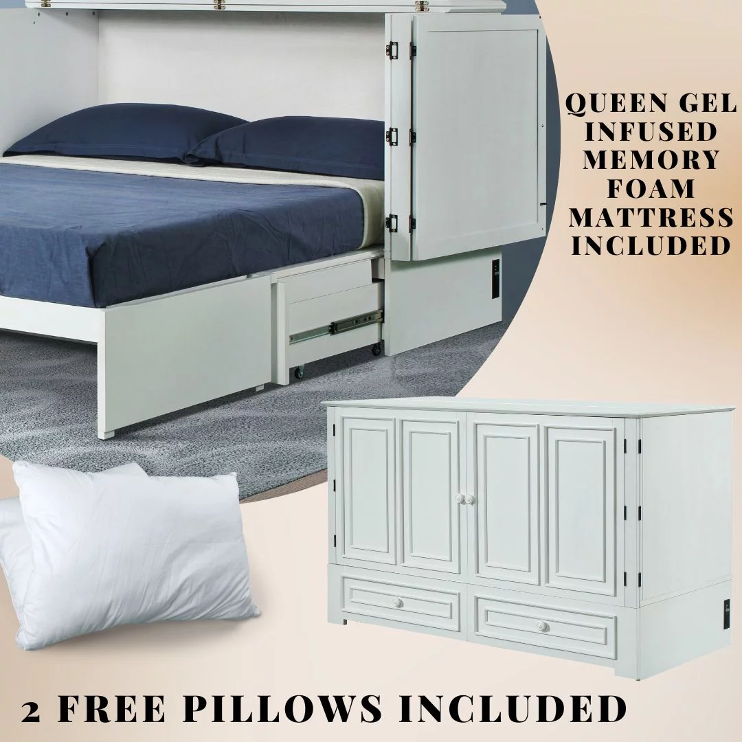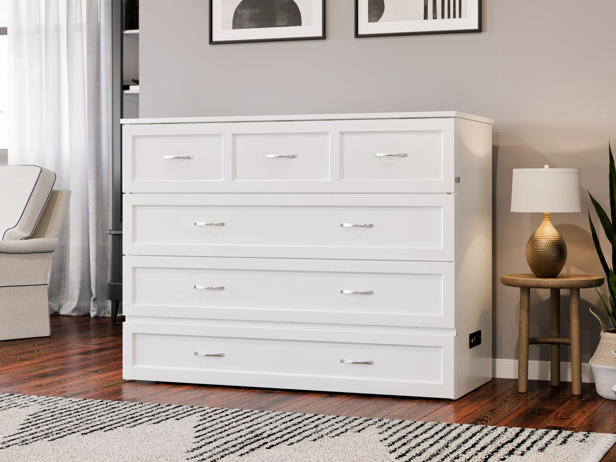 Mega Solutions Paradiseo Murphy Cabinet Chest Bed with Charging Station 8 Inch, Queen (White)