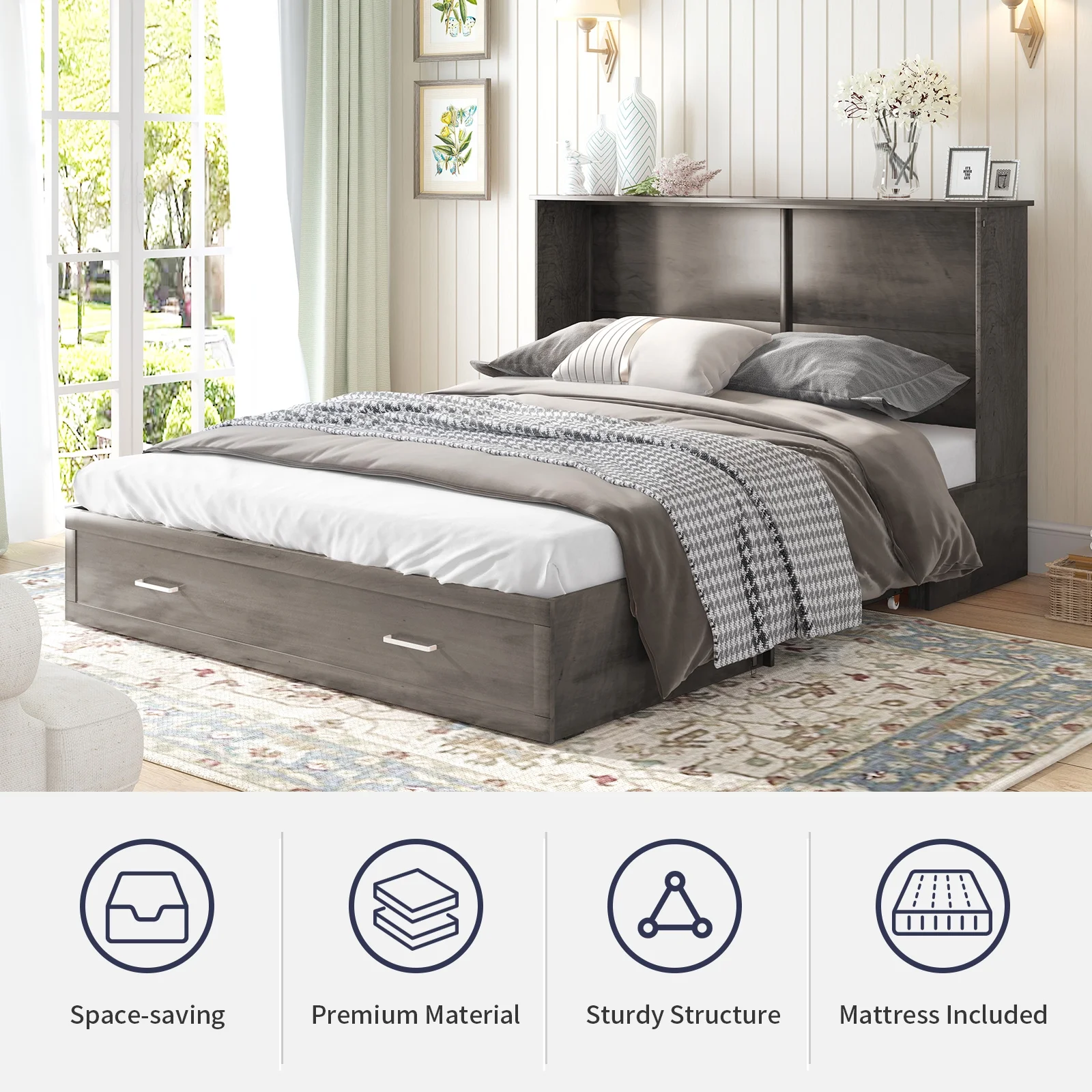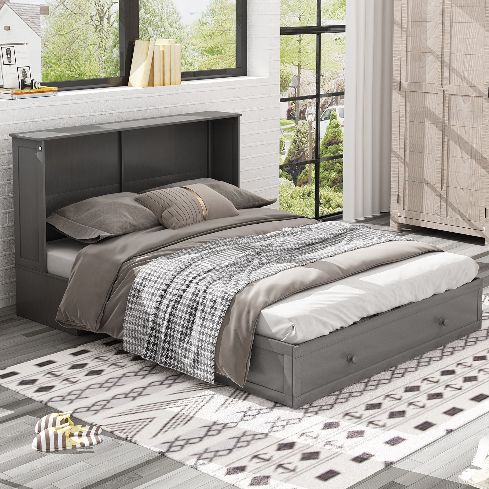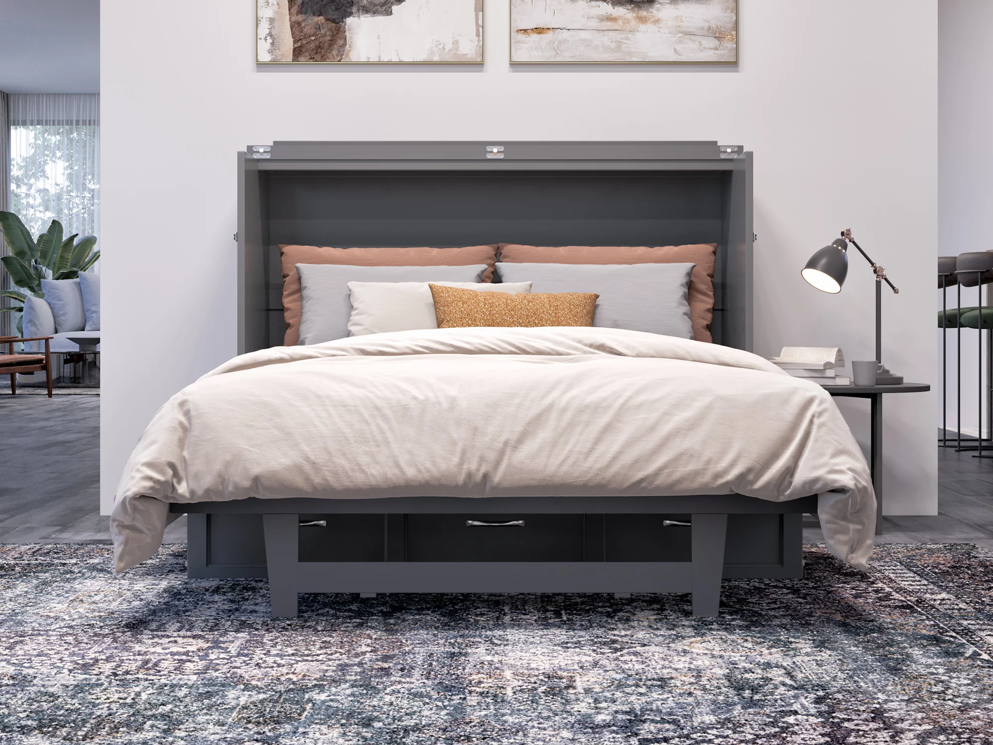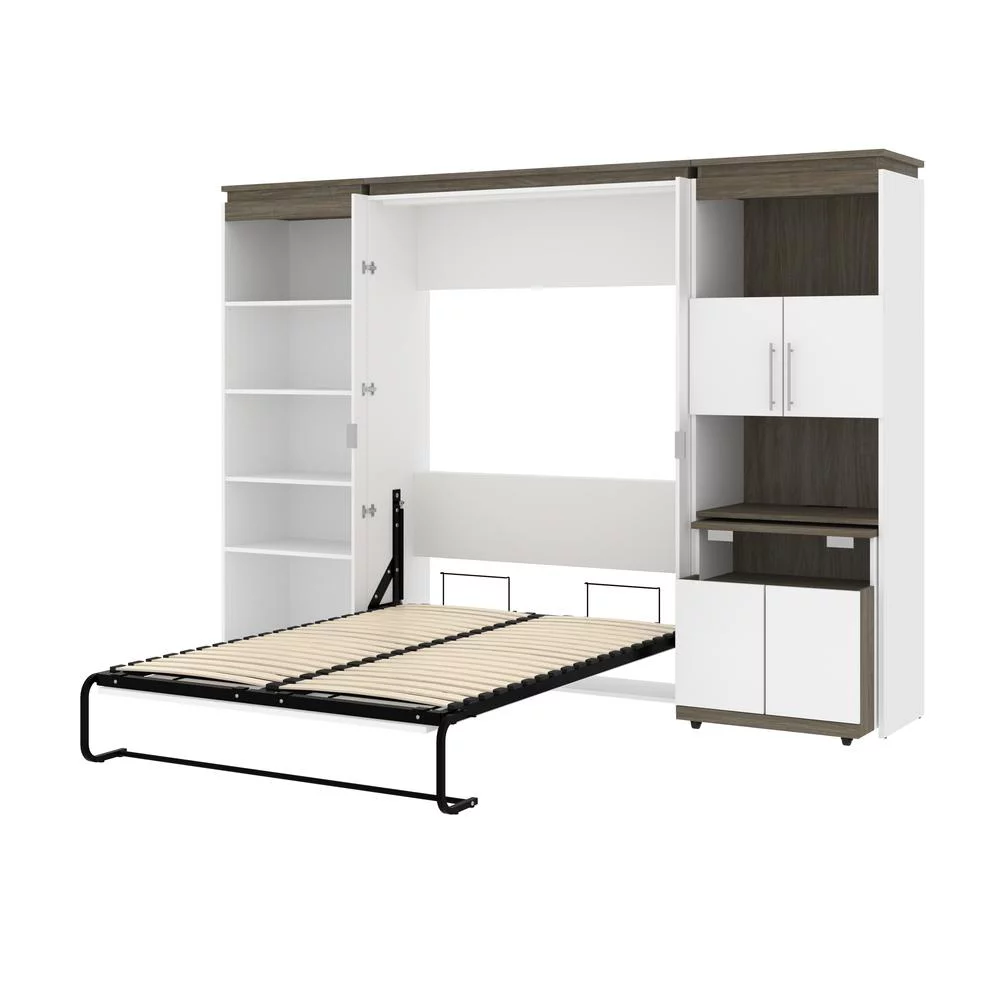 RoomAndLoft Queen Wood Murphy Wall Bed & 2 Shelf Storage Units in Gray