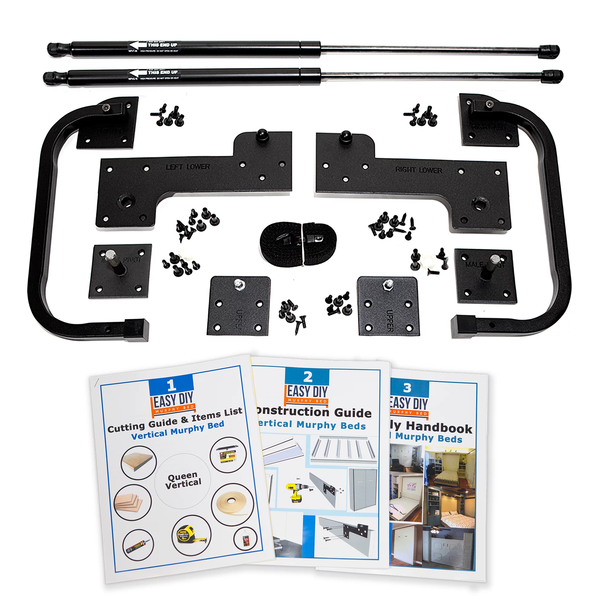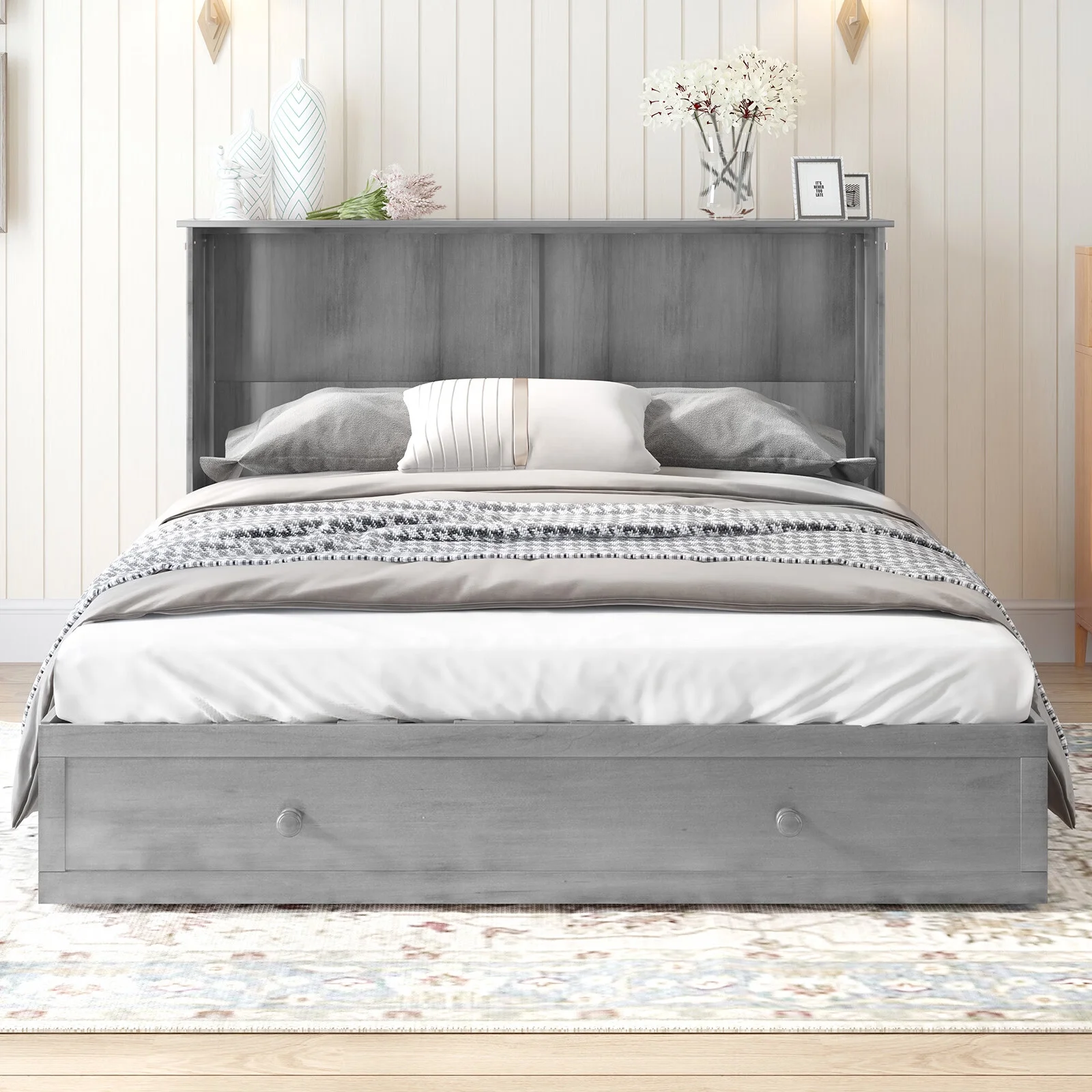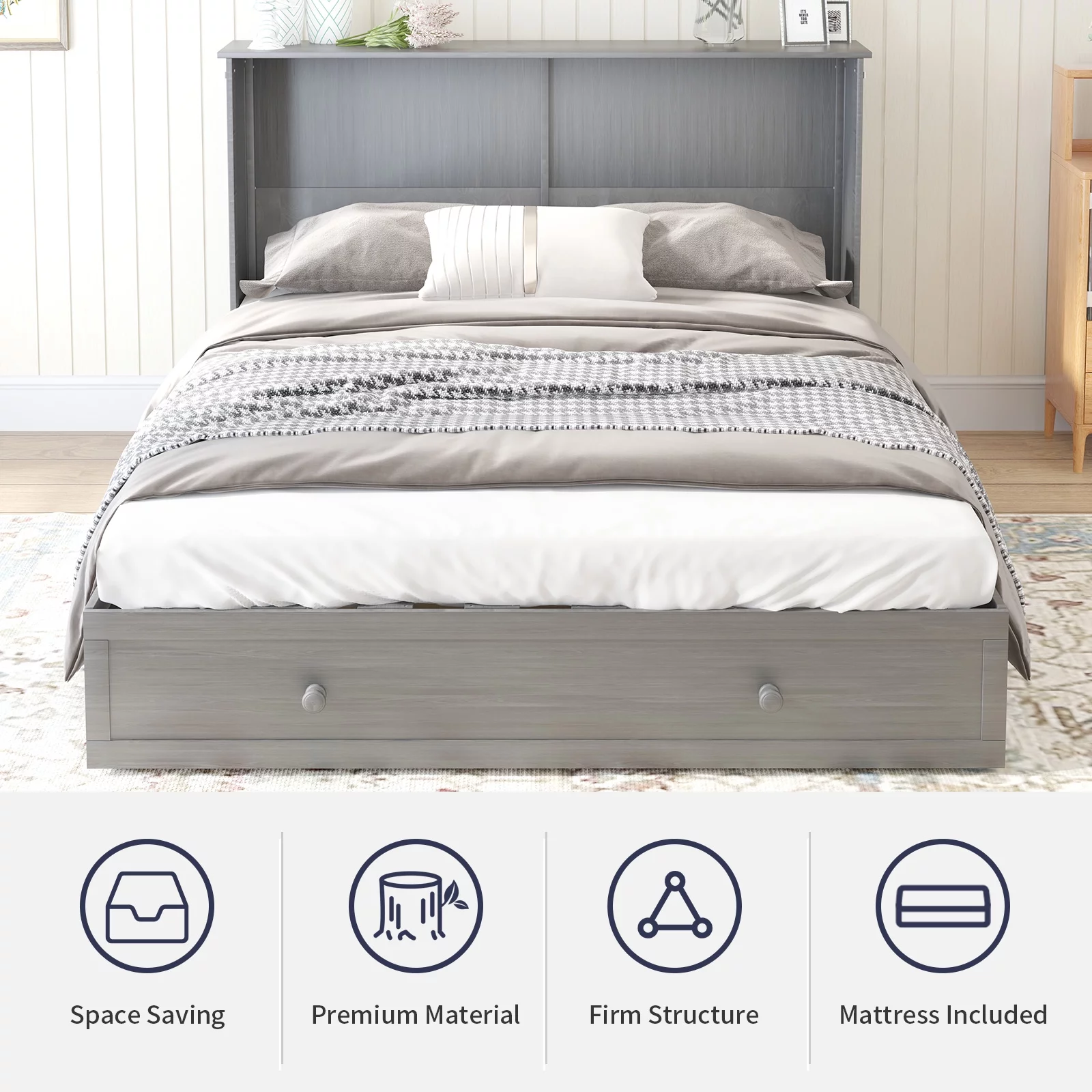 RoomAndLoft Queen Wood Murphy Wall Bed & 2 Shelf Storage Units in Gray