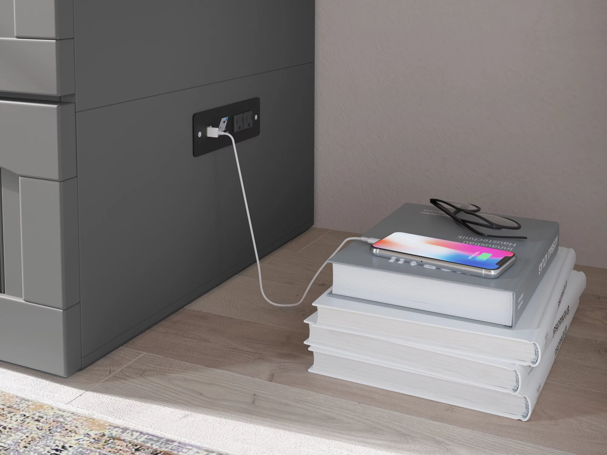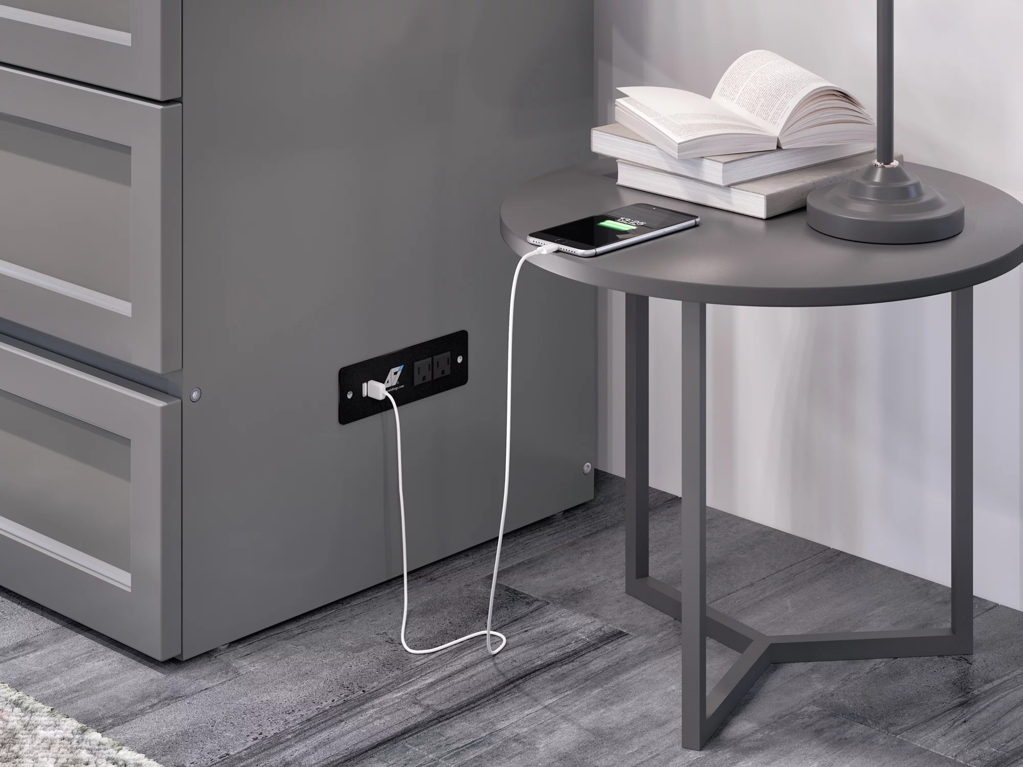 AFI Sydney Twin Murphy Bed Chest with Mattress, Storage & Built-in Charging, Grey