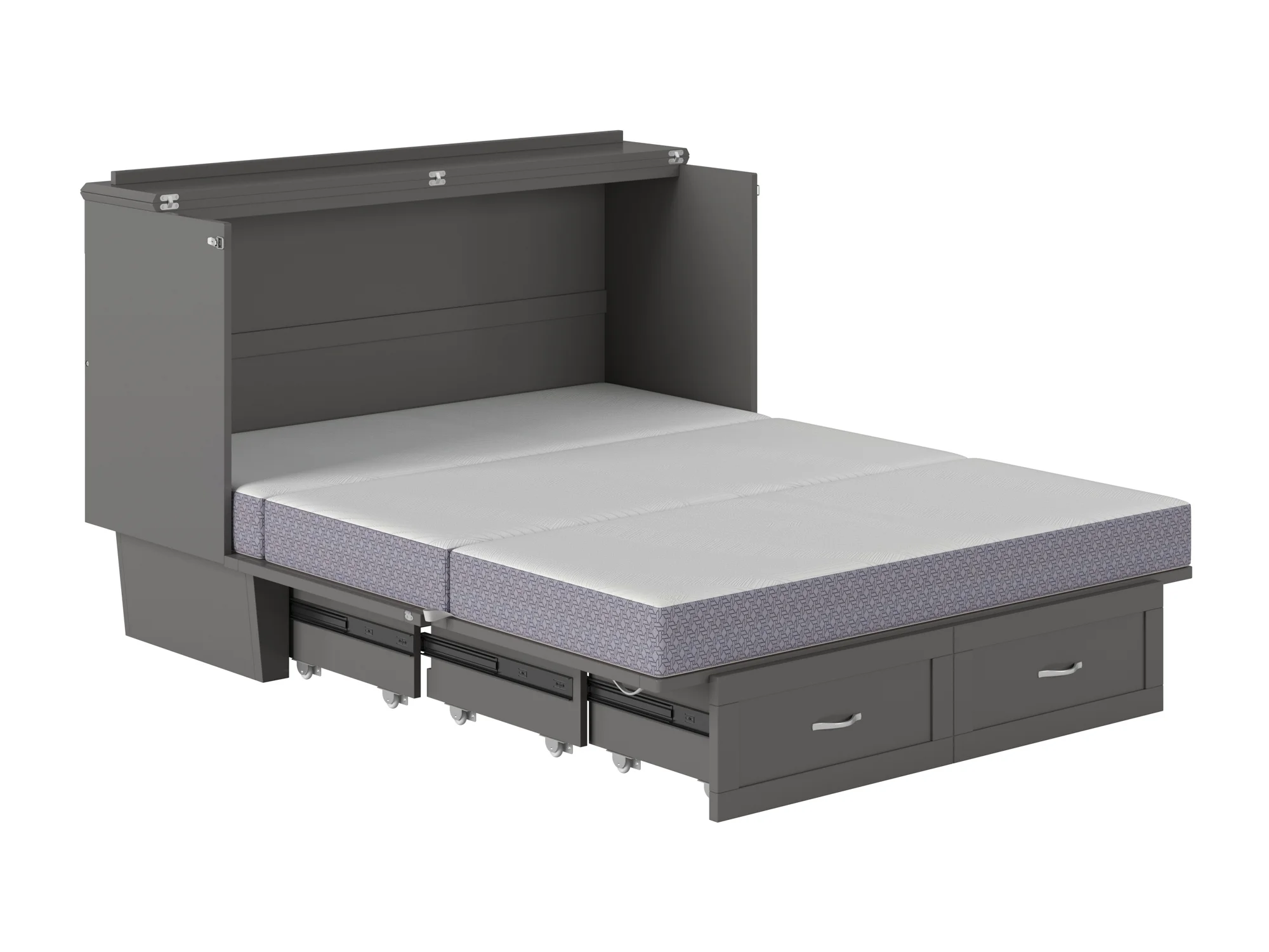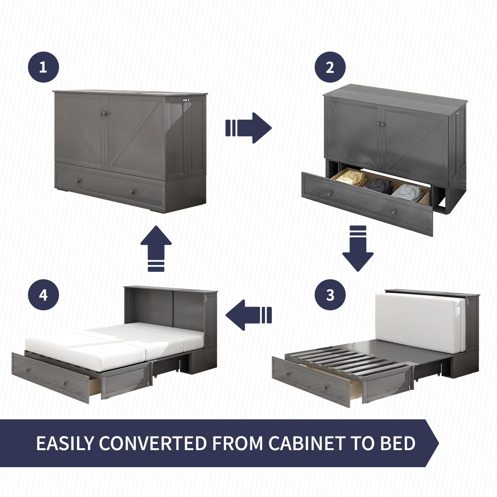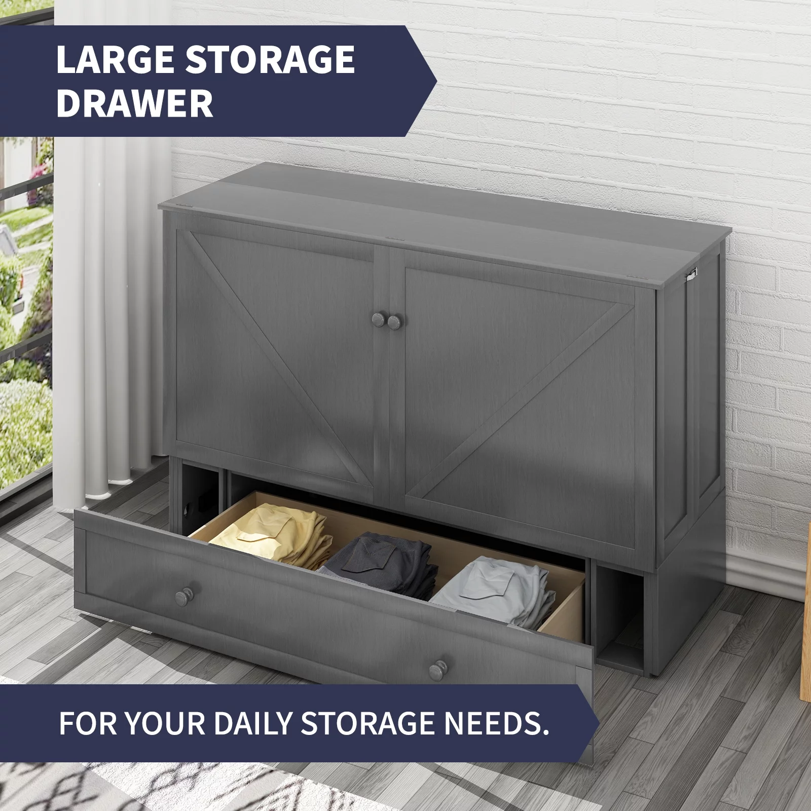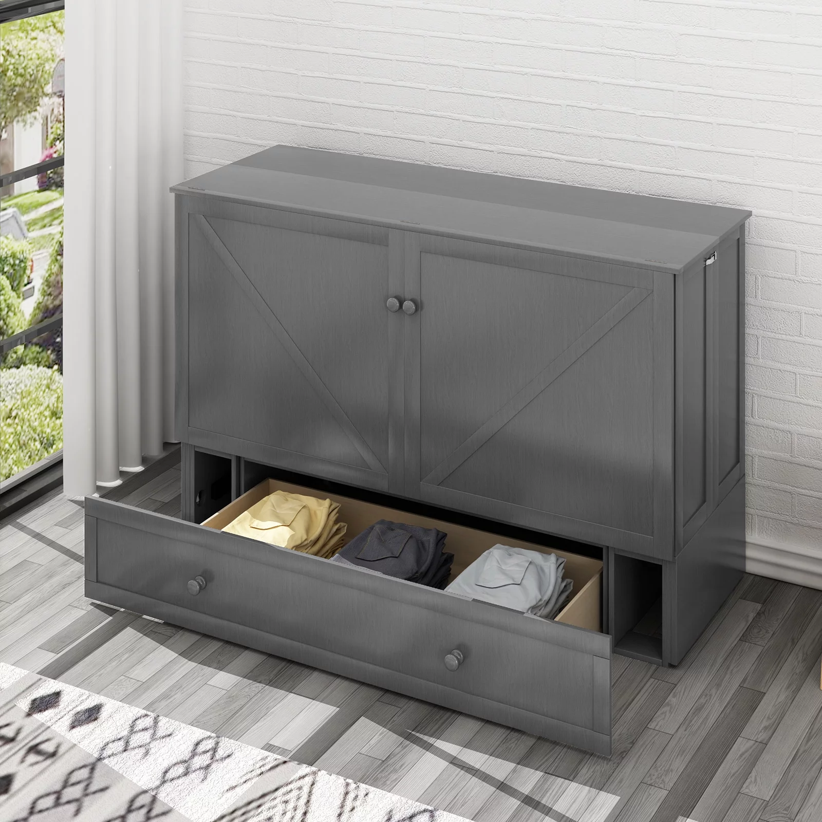 AFI Southampton Full Solid Wood Murphy Bed Chest with Mattress, Drawer & Charger in Gray