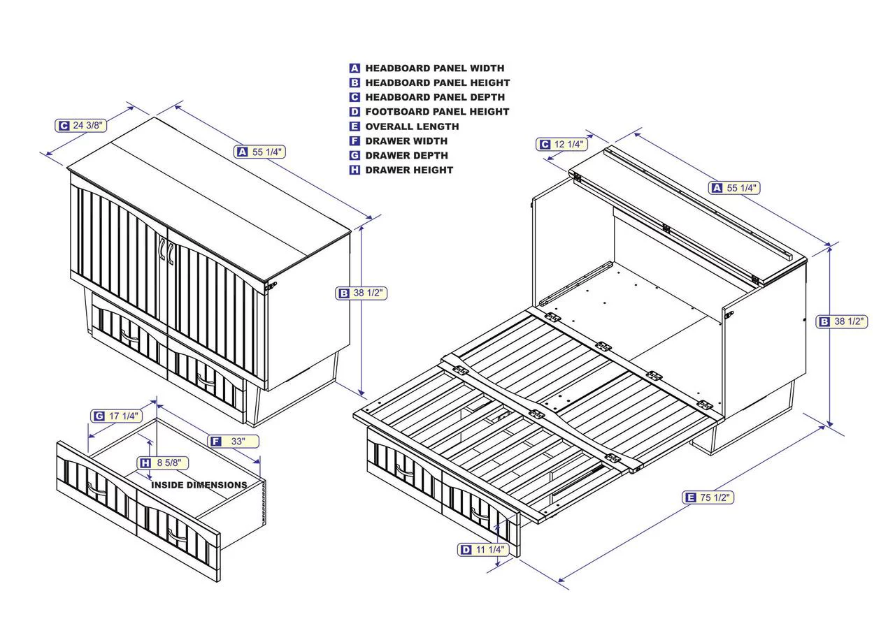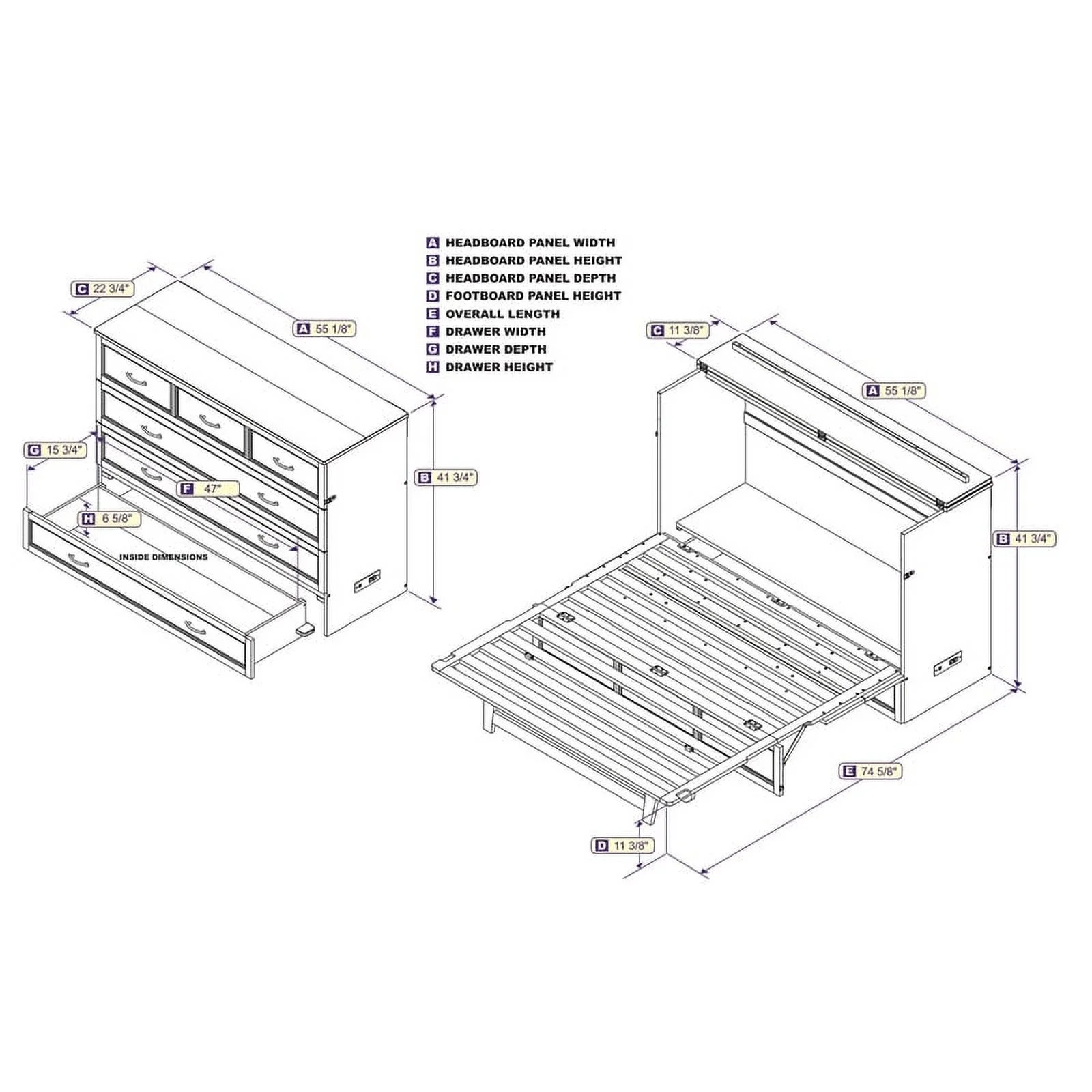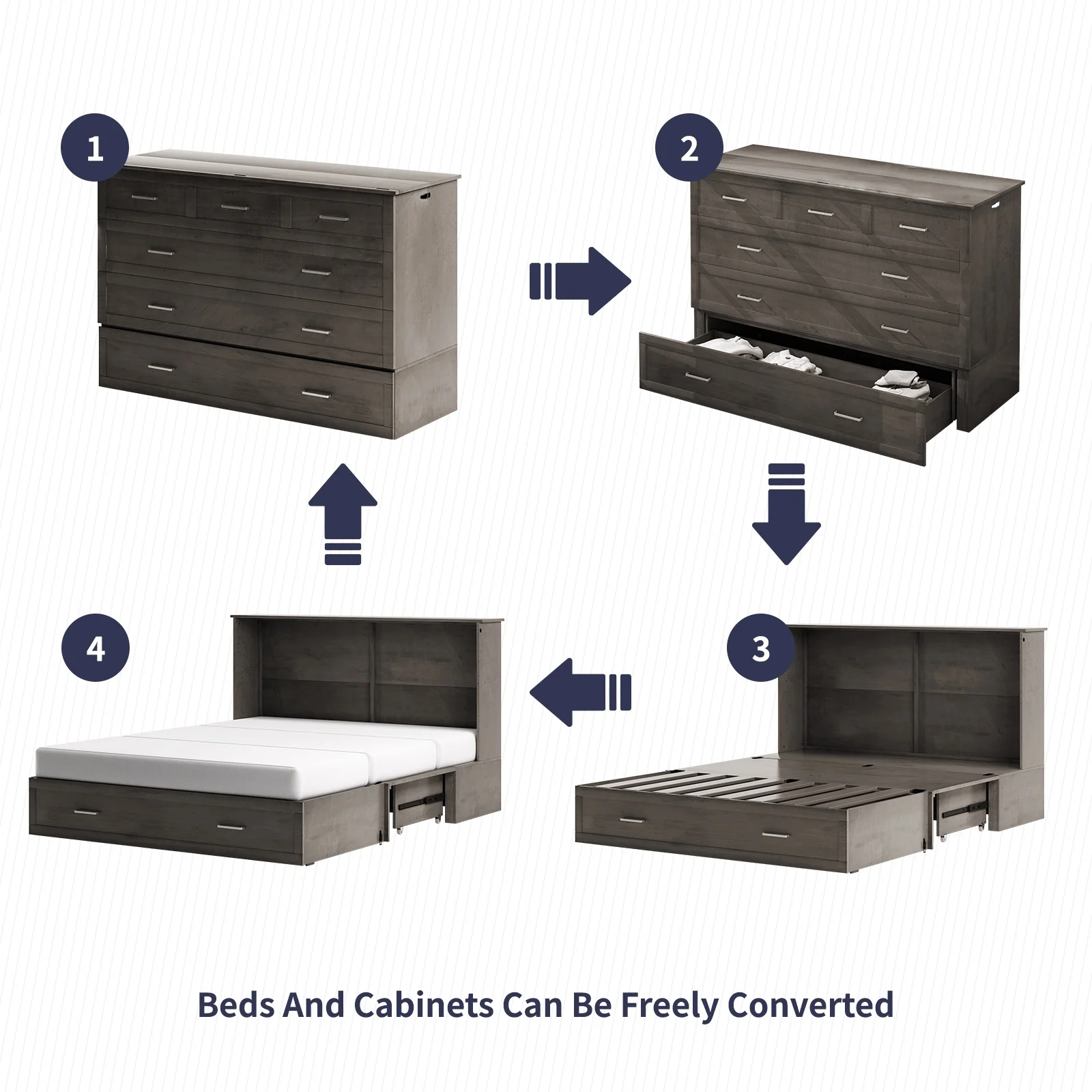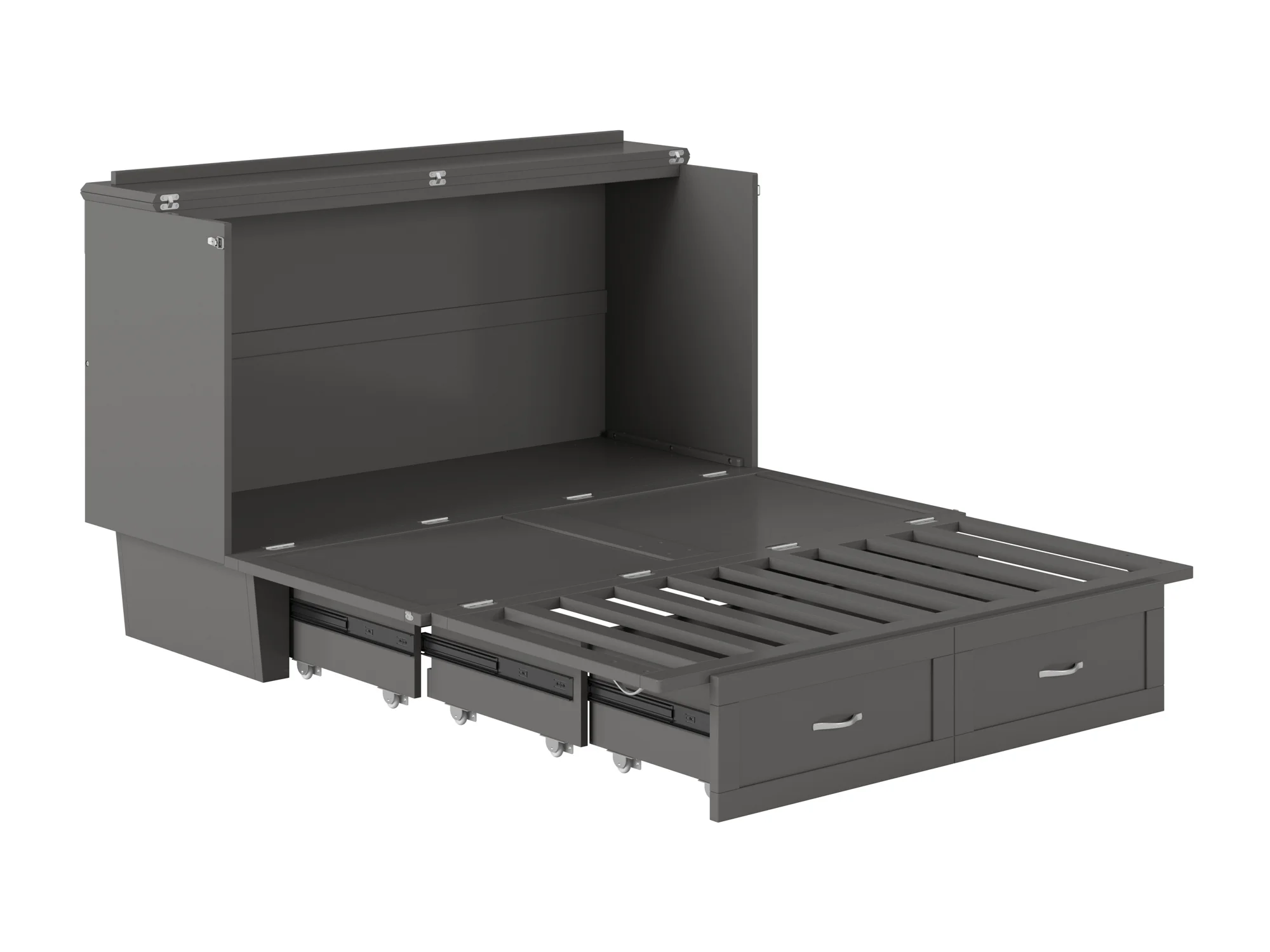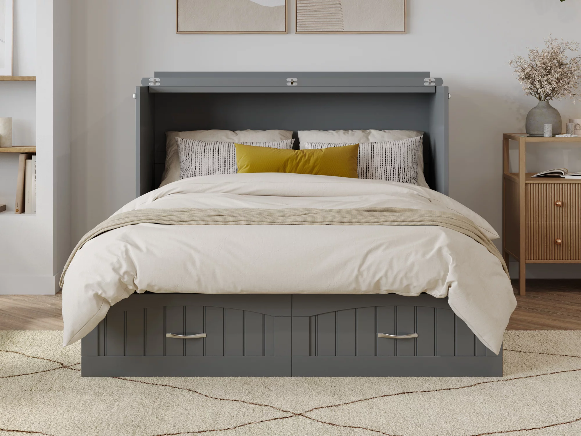 AFI Southampton Full Solid Wood Murphy Bed Chest with Mattress, Drawer & Charger in Gray