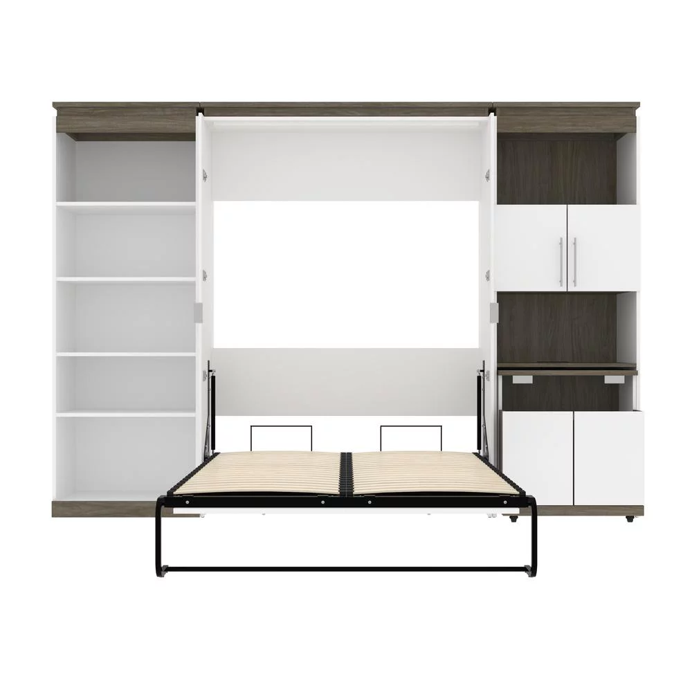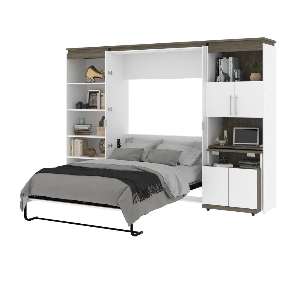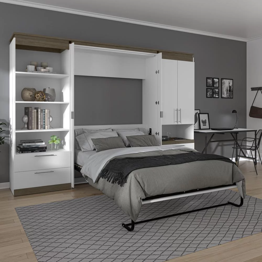 Bestar Full Murphy Bed with Shelves and Storage Cabinet with Fold-Out Desk