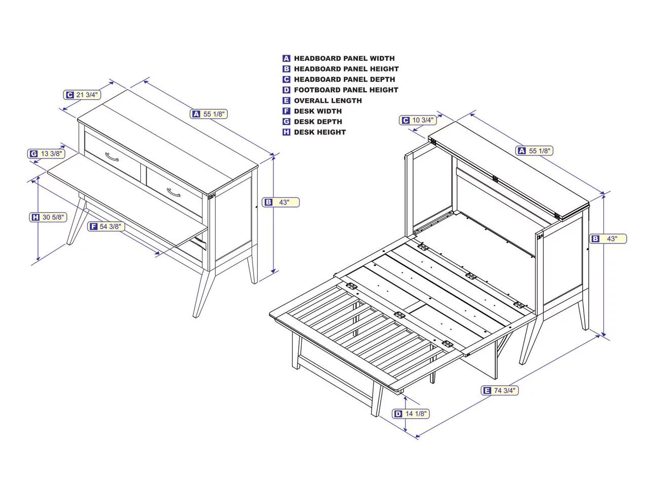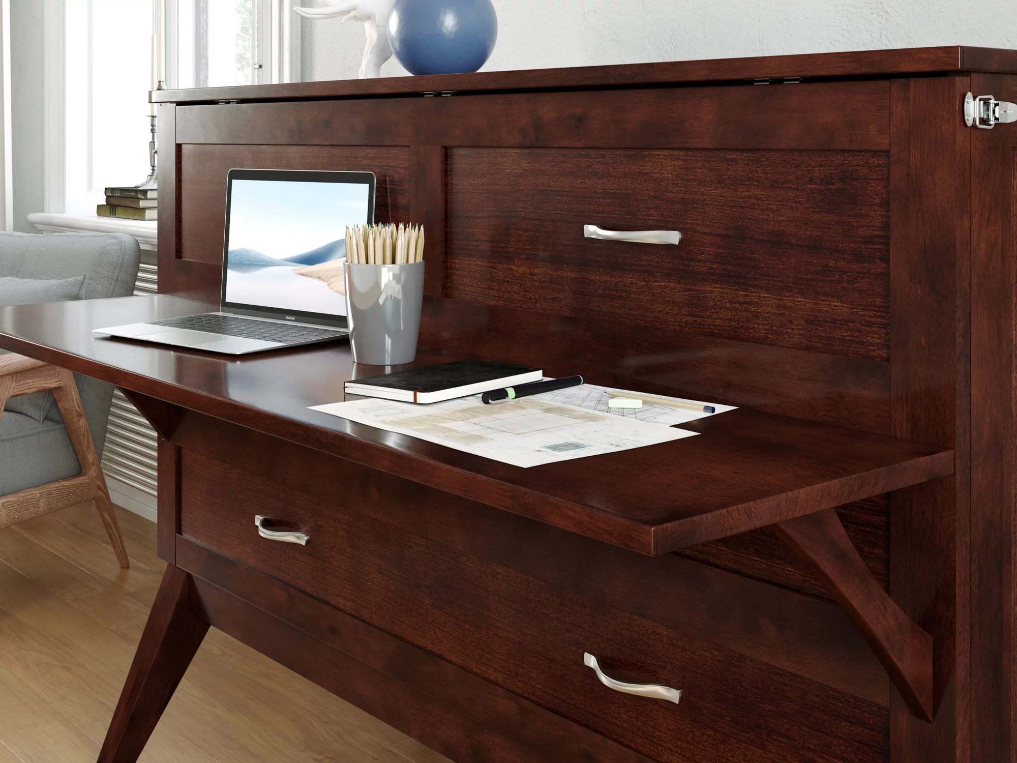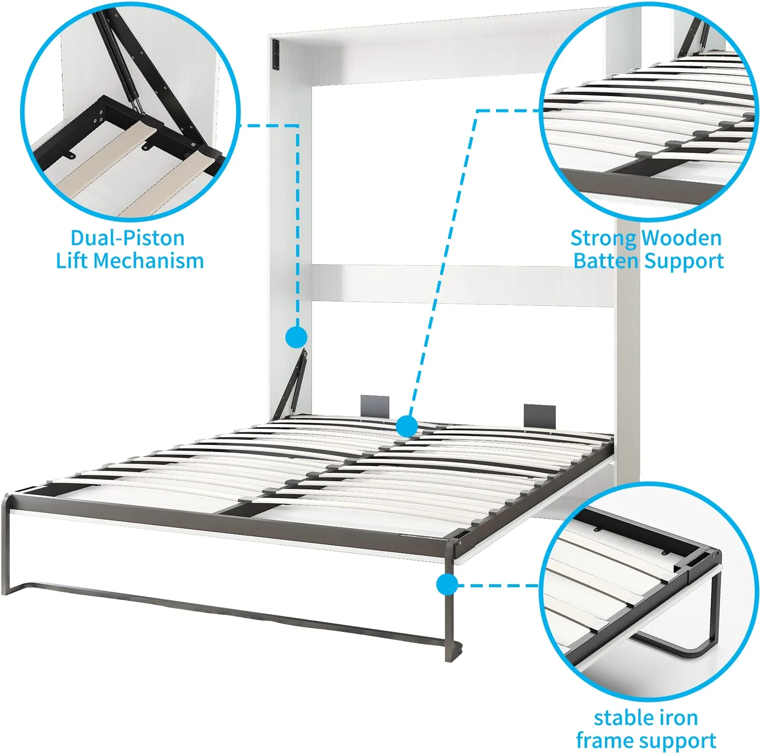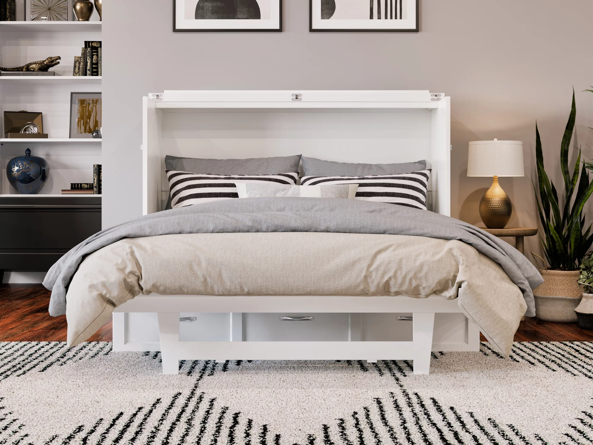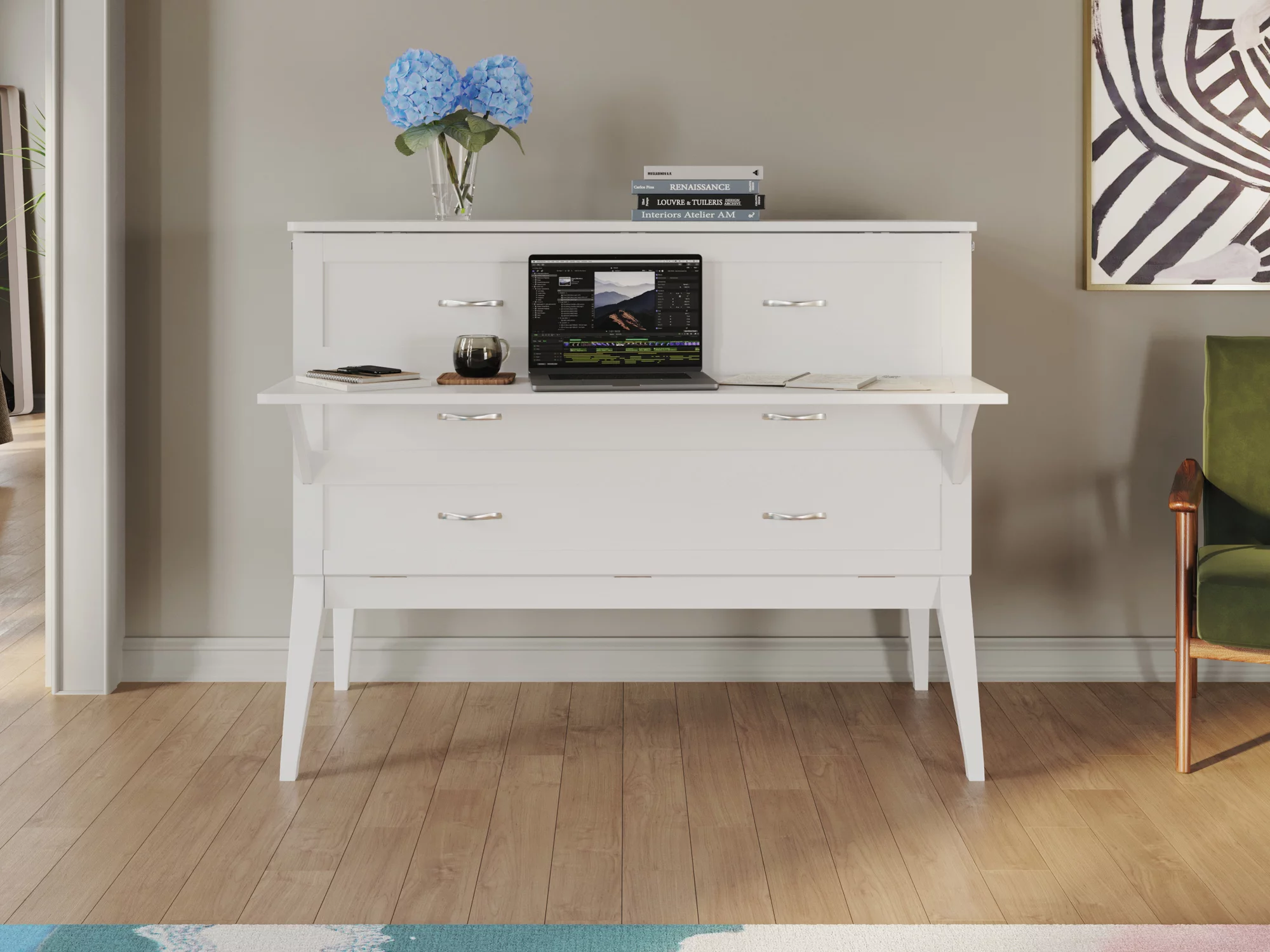 RoomAndLoft Brentwood Lateral Queen Solid Wood Murphy Wall Desk Bed in White
