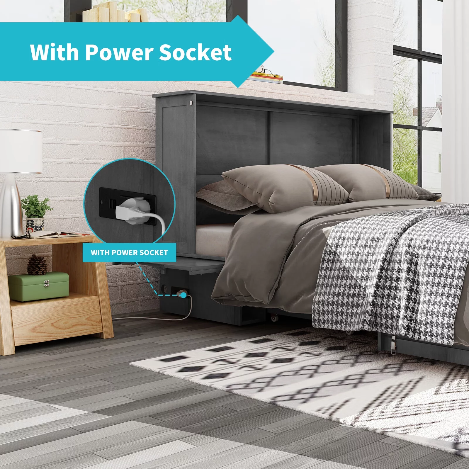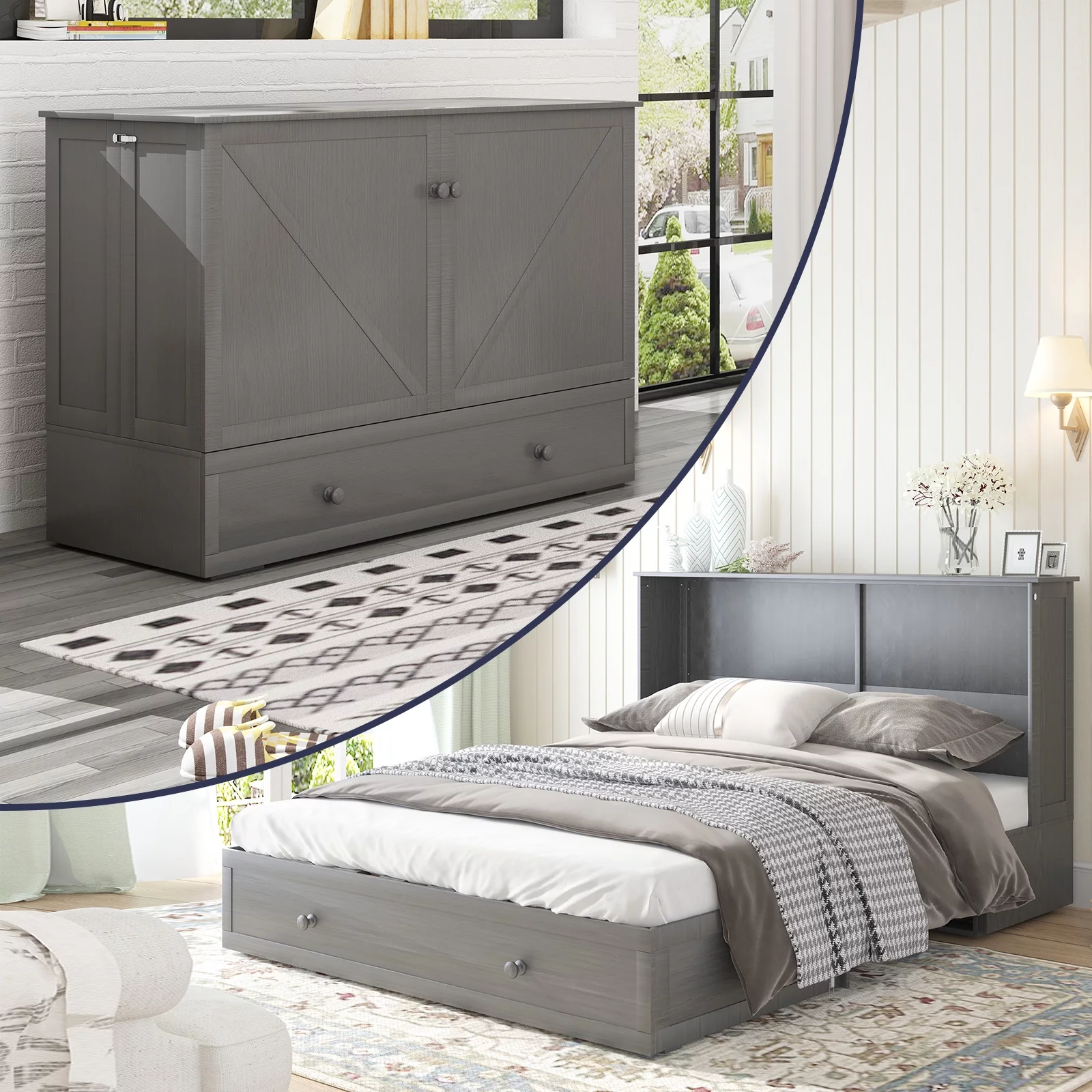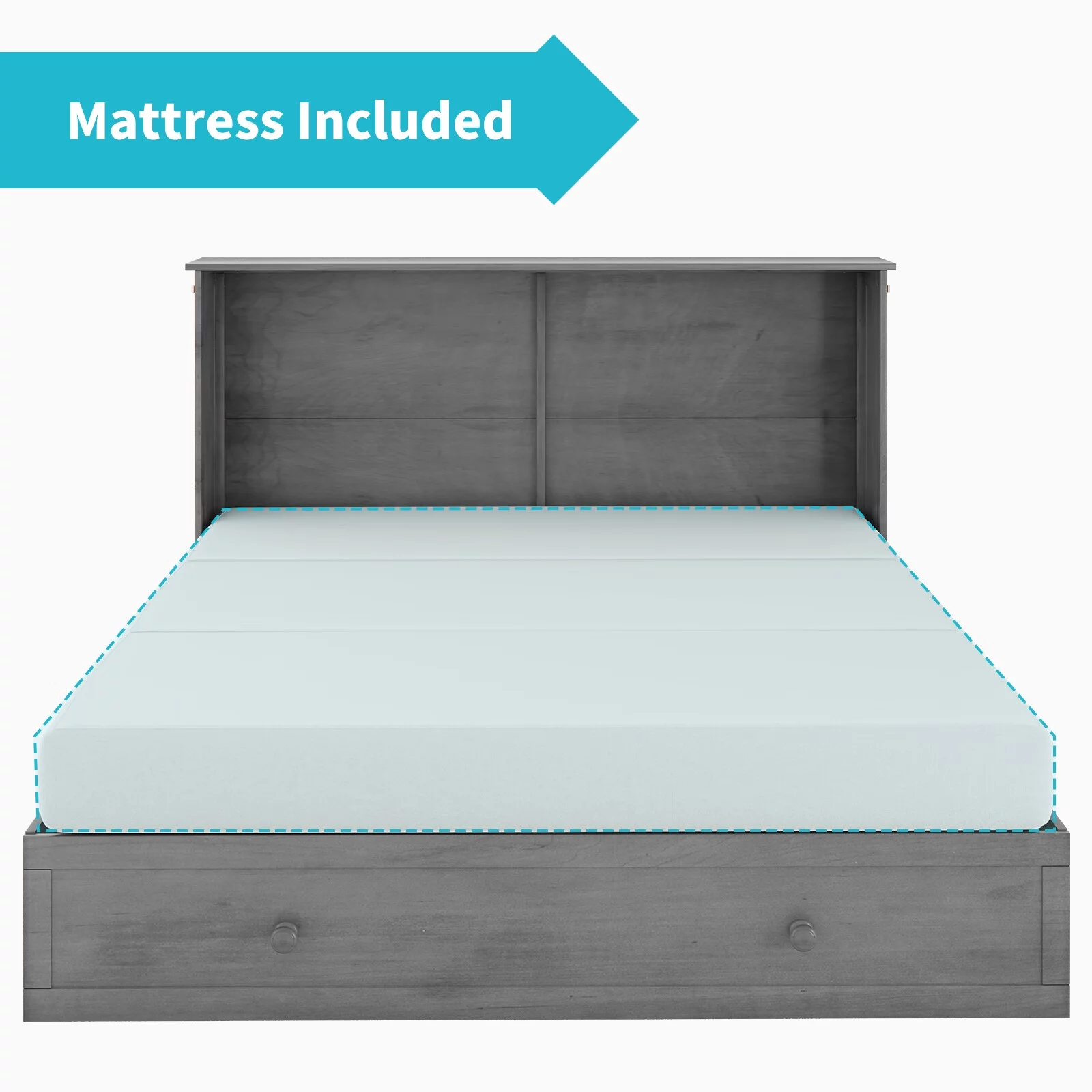 AFI Northfield Full Solid Wood Murphy Bed Chest with Mattress, Drawer & Charger, Grey