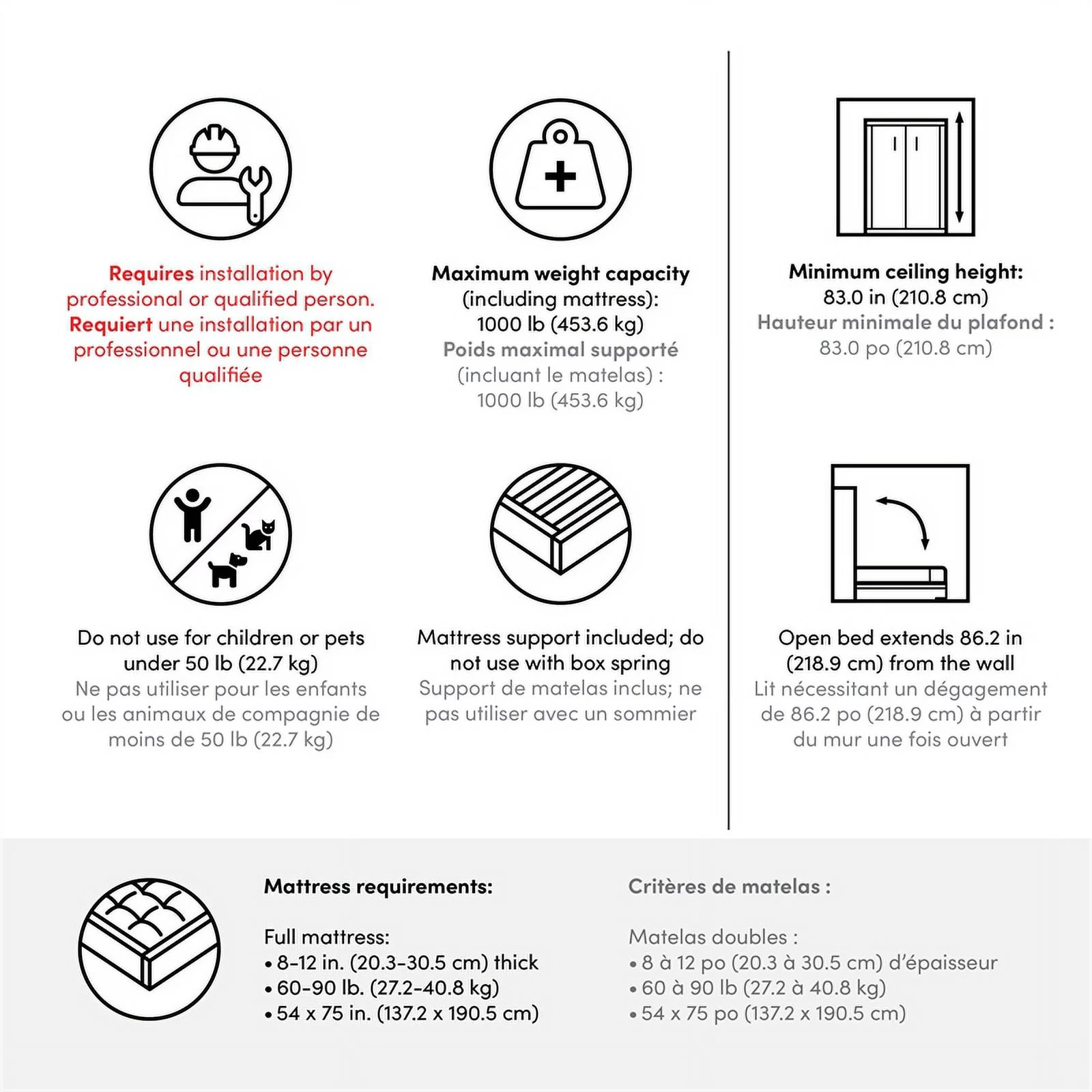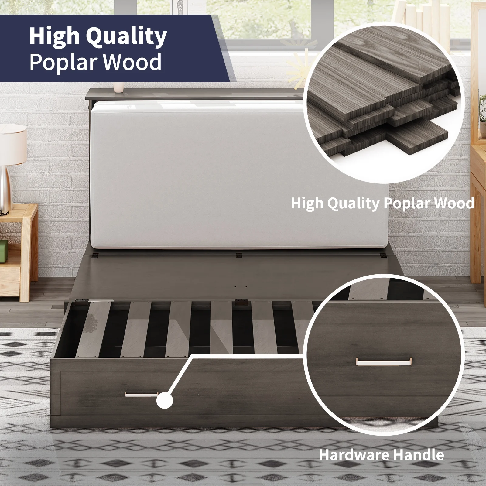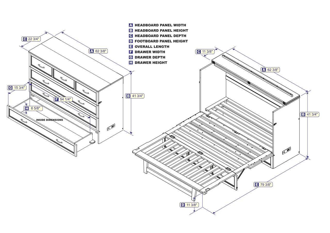 AFI Northfield Full Solid Wood Murphy Bed Chest with Mattress, Drawer & Charger, Grey