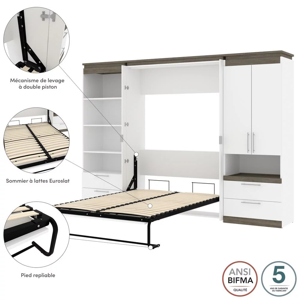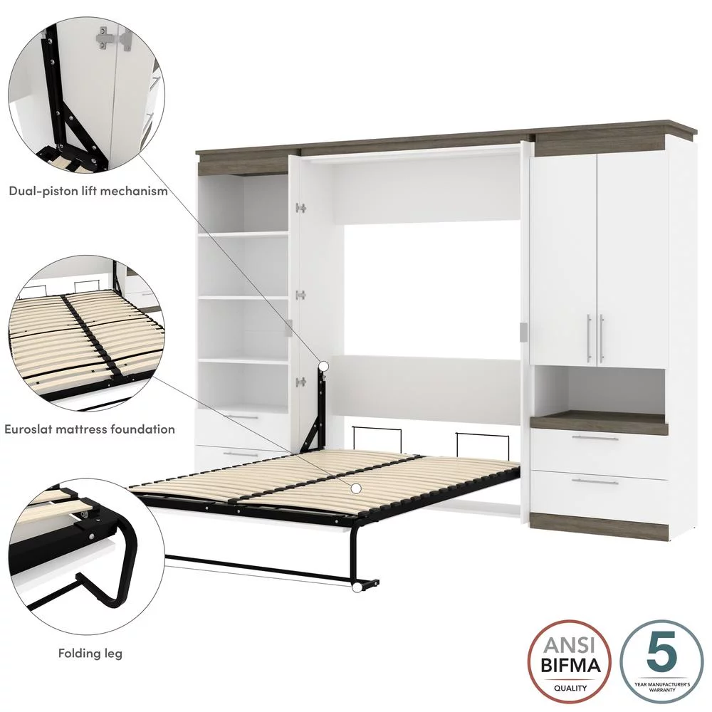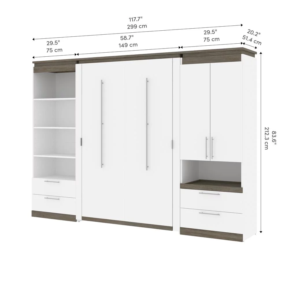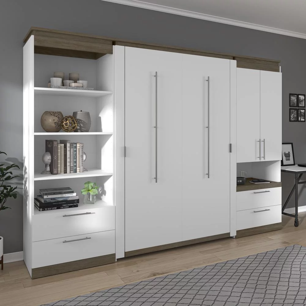 Bestar Orion 118" Full Murphy Bed and Storage with Drawers in White