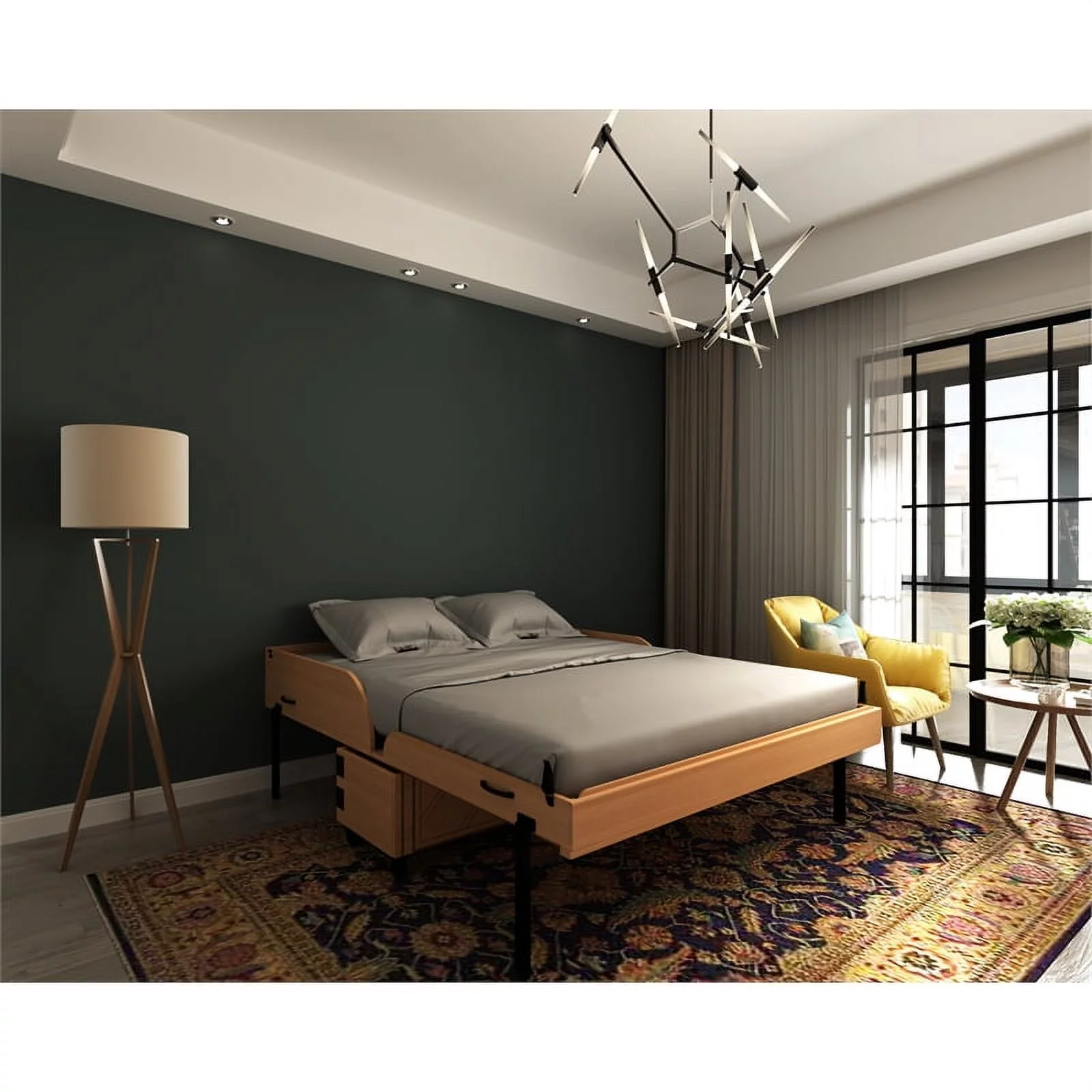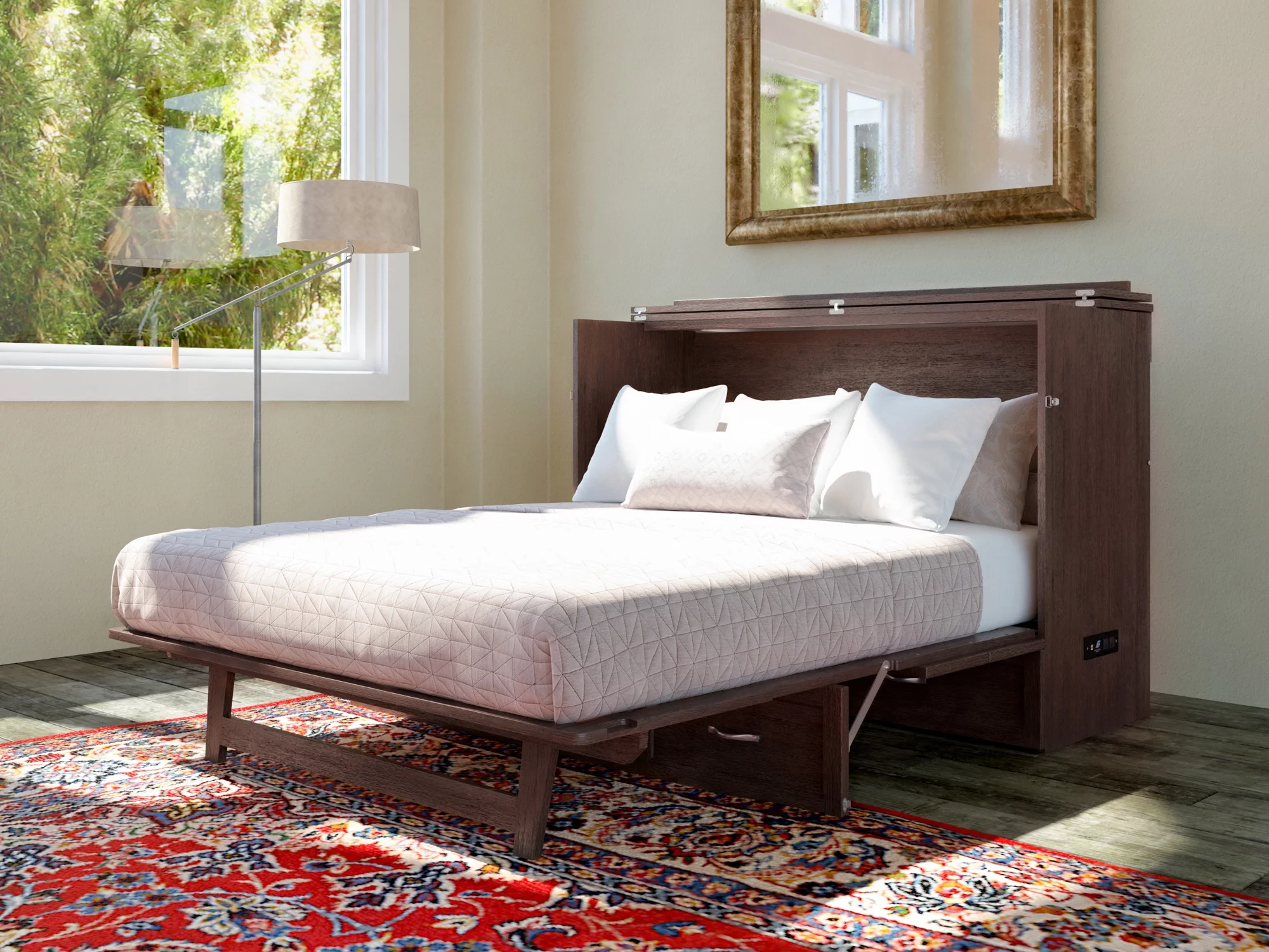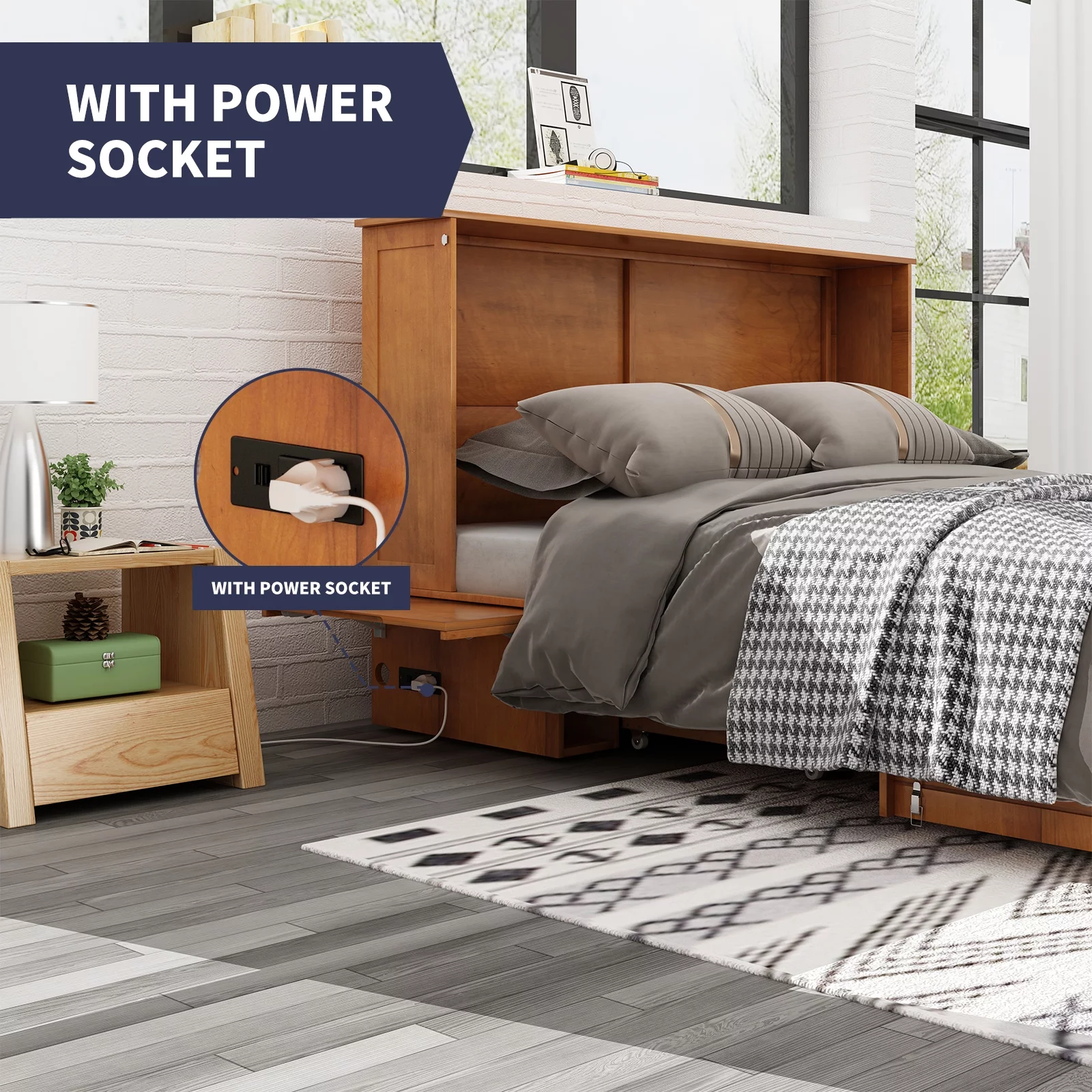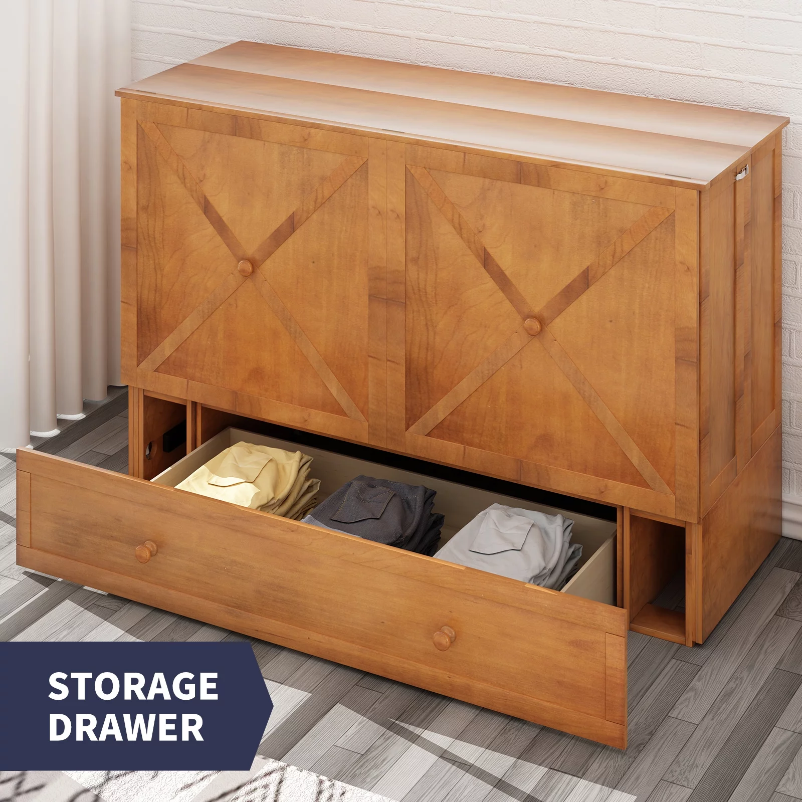 RoomAndLoft Ambrosia Queen Solid Wood Mobile Murphy Cabinet Bed in Natural