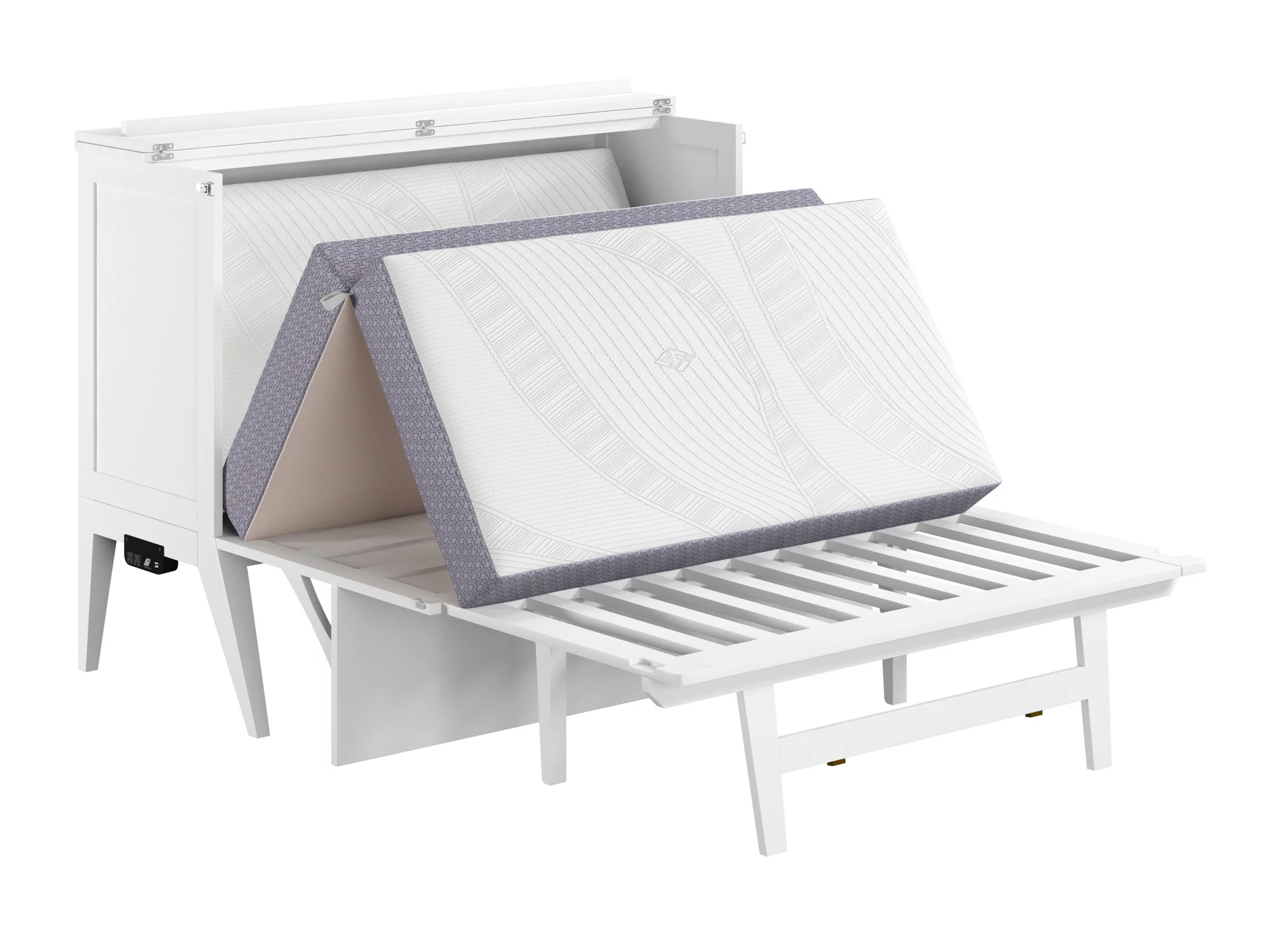 AFI Northfield Full Solid Wood Murphy Bed Chest with Mattress, Drawer & Charger, White
