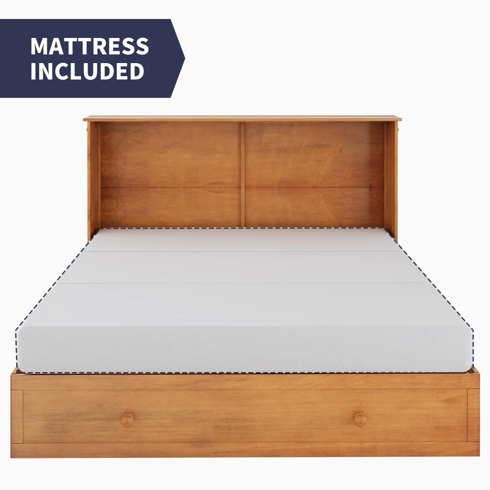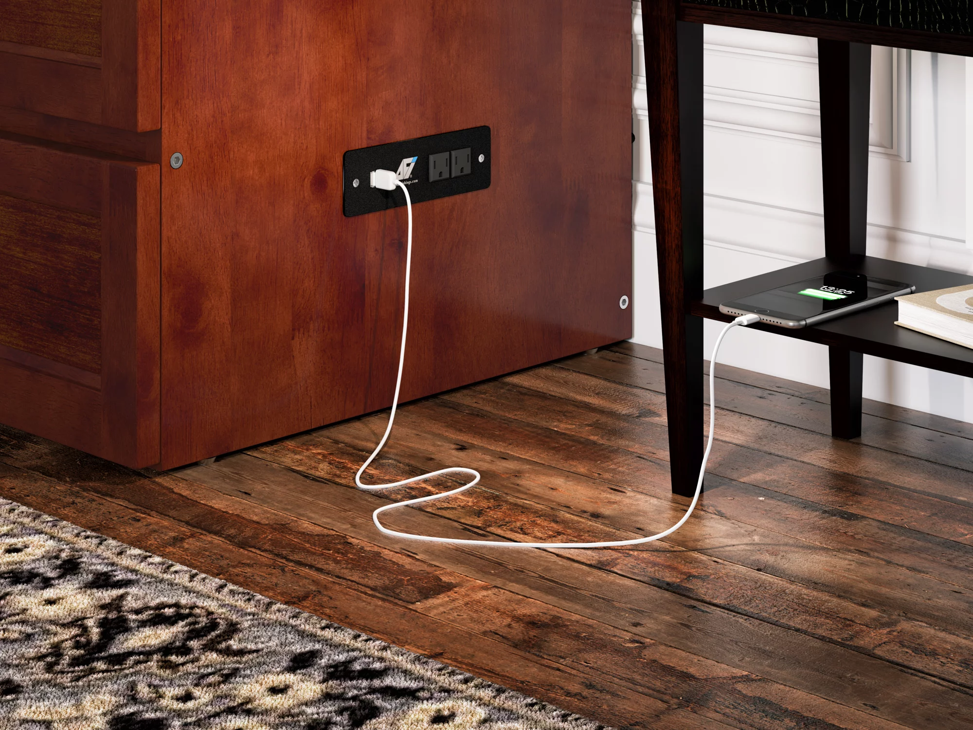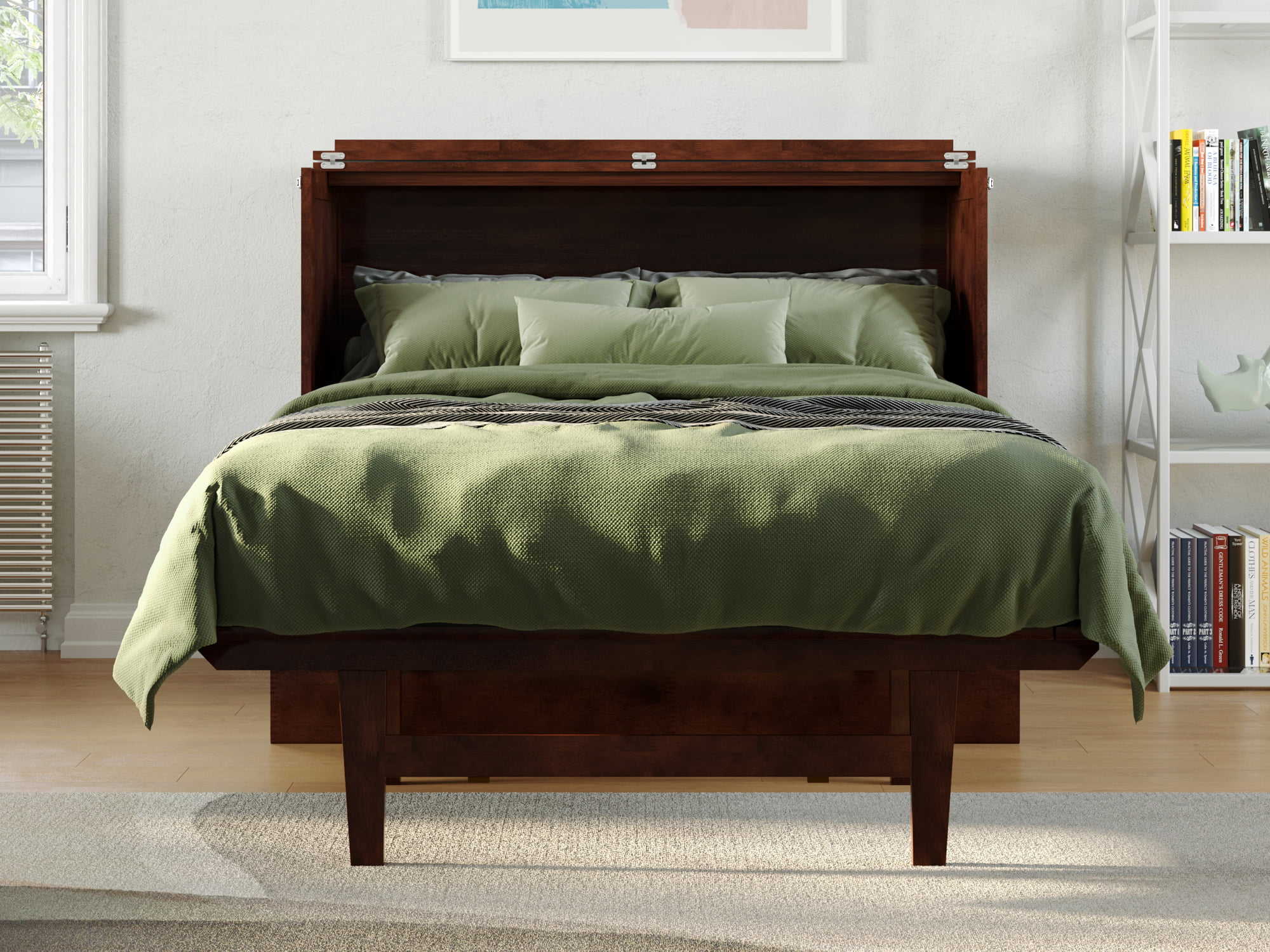 AFI Northfield Full Solid Wood Murphy Bed Chest with Mattress, Drawer & Charger, Walnut