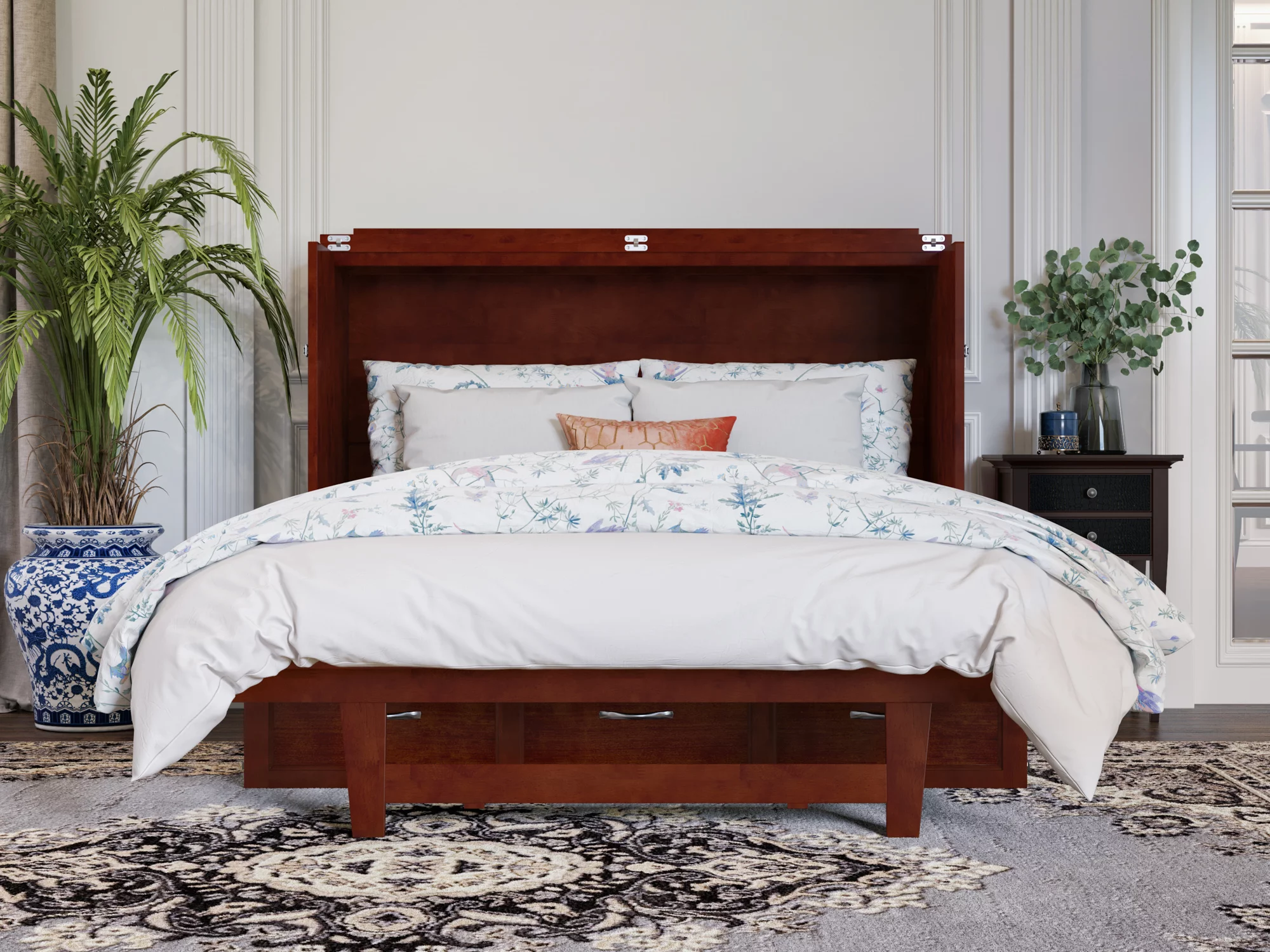 AFI Northfield Queen Wood Murphy Bed Chest with Mattress, Drawer & Charger, Burnt Amber