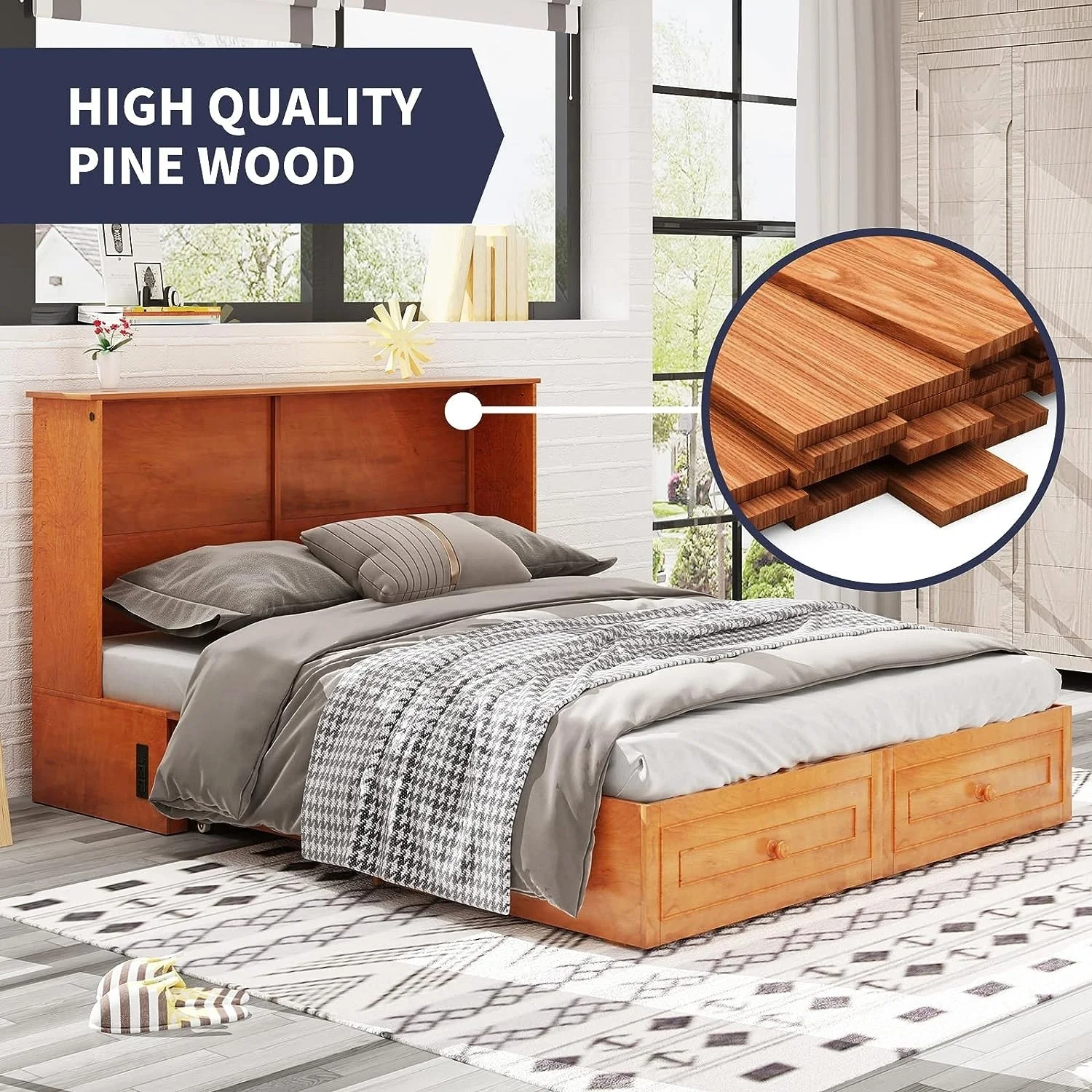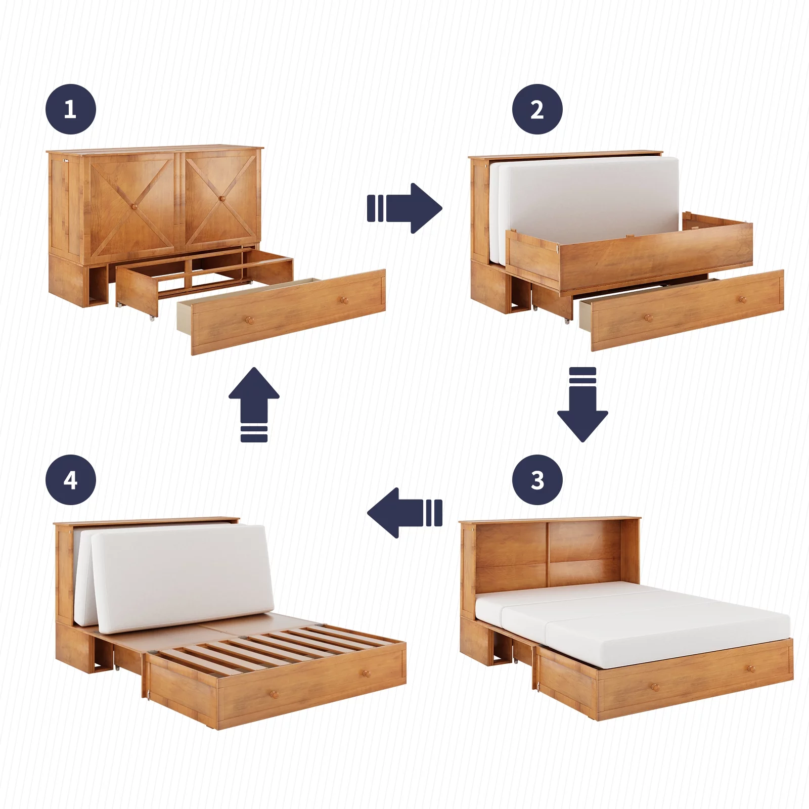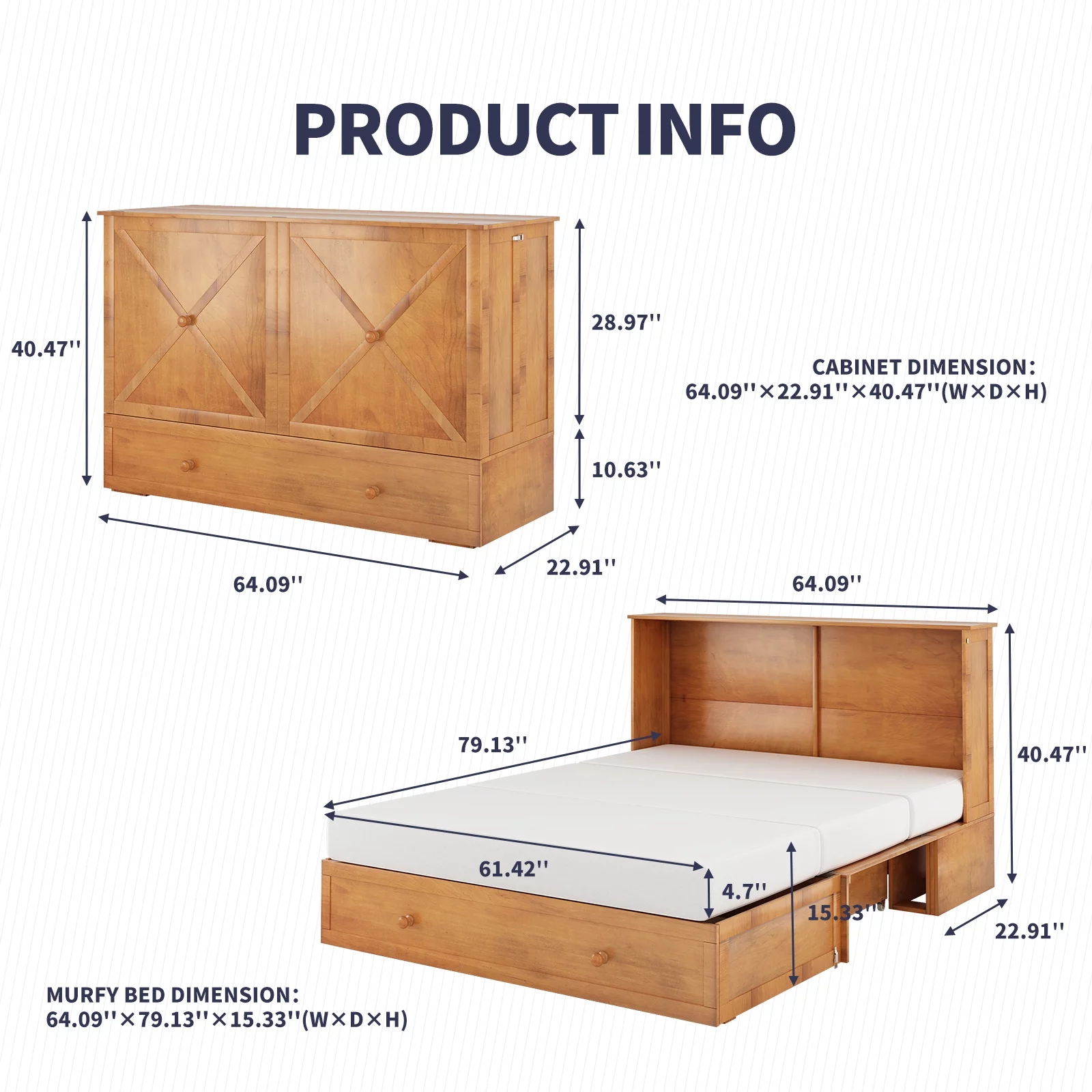 Mixoy Multifunctional Murphy Bed,Cube Cabinet Chest Bed with Mattress Cherry